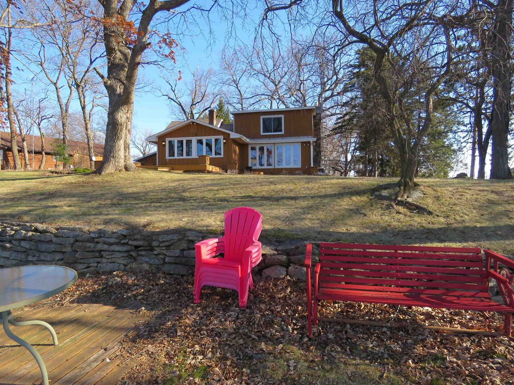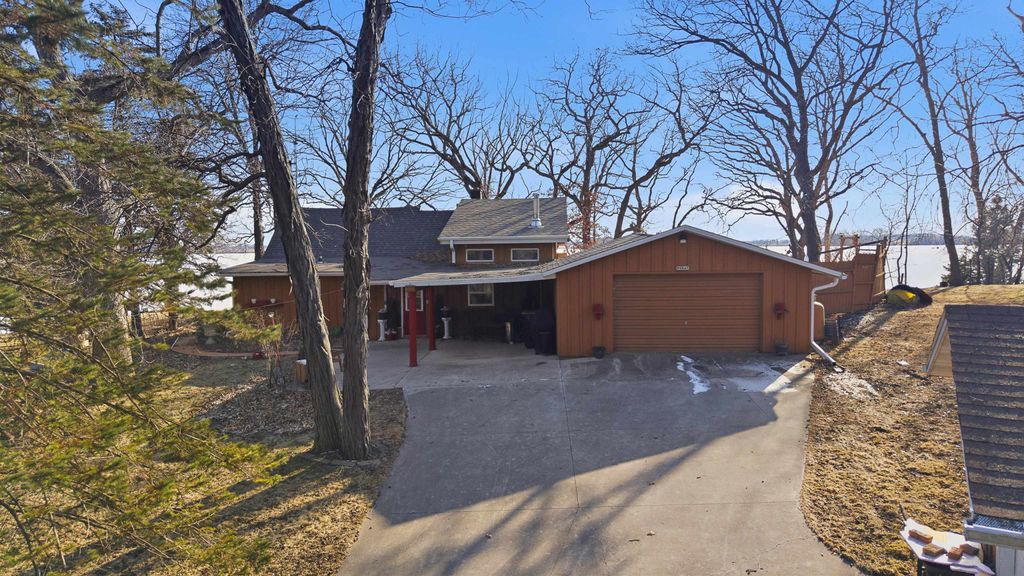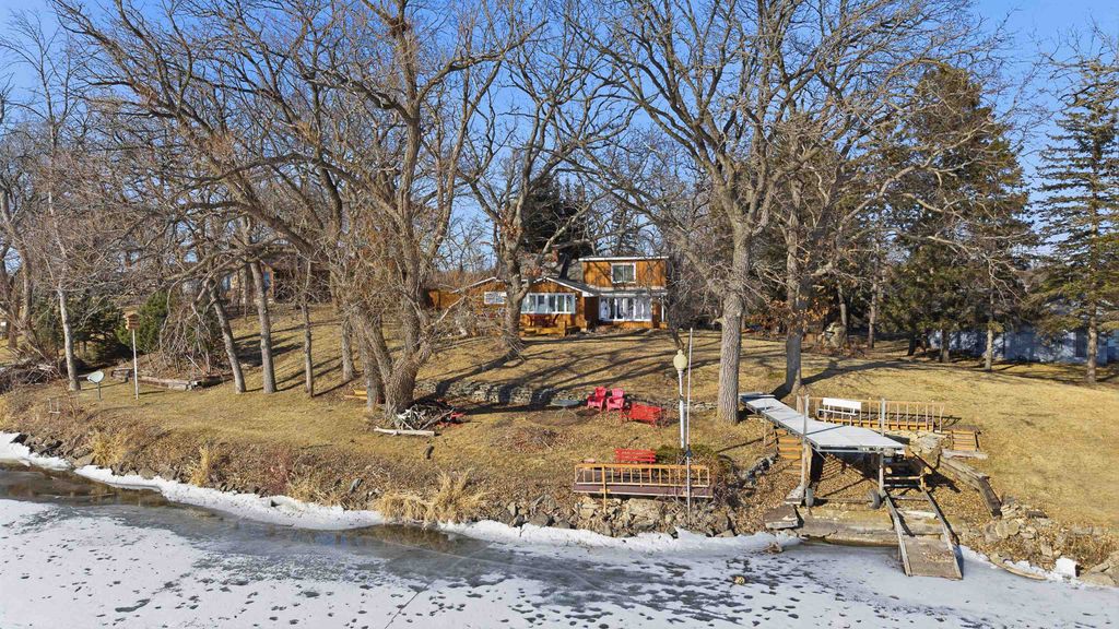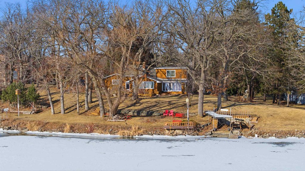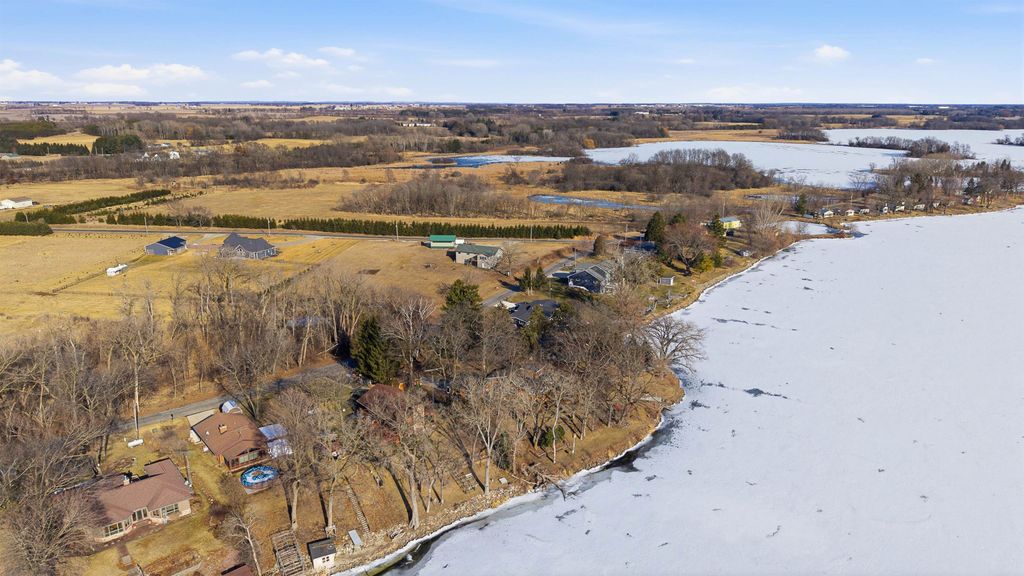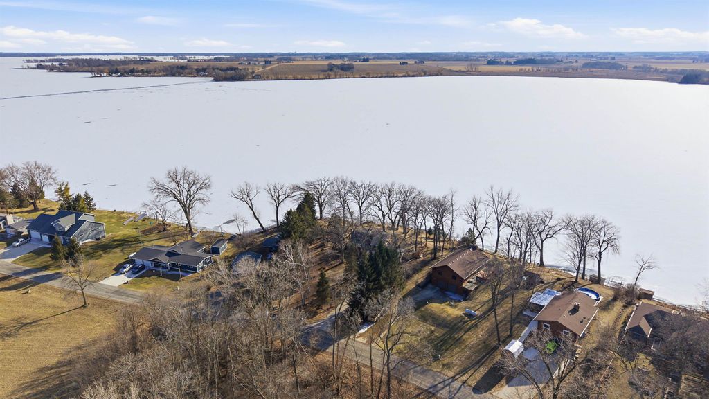 Hilltop views of Beaver Dam Lake with approx. 197' of prime shoreline sit on this .80-acre gem, on a desirable quiet dead end road. This 1 1/2 story home offers a 1st floor bedroom and full bath. Kitchen and bathroom have been updated to include kitchen appliances and bath offers heated flooring with a washer/dryer area. The 2nd floor offers a large open bedroom area and lots of storage. There is nice bright family room with vaulted ceiling, lots of windows for some great sunlight and a nice wood stove to make it cozy. Family room extends outside to a nice large wrap around deck for entertaining. The large living room/dining area is open concept and offers a beautiful gas fireplace. New roof in 2025 and new furnace/air in 2024 are a plus. This home offers an attached garage with a large breezeway/foyer area for your coats and boots. A big plus is the 12x18 shed for all the summer toys.