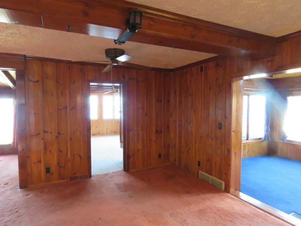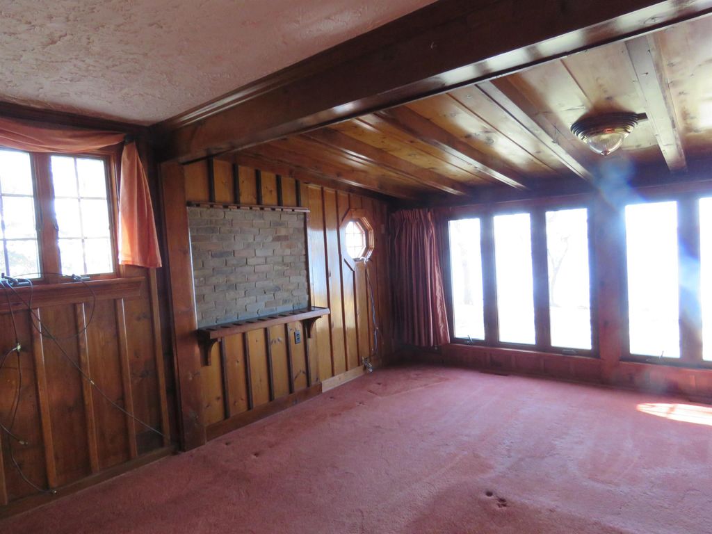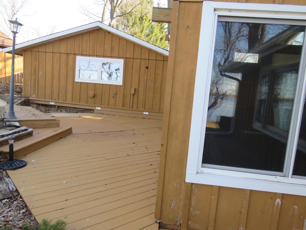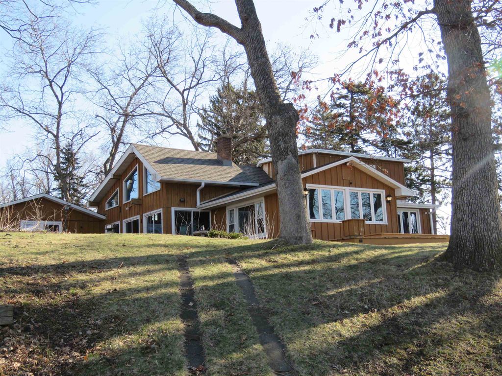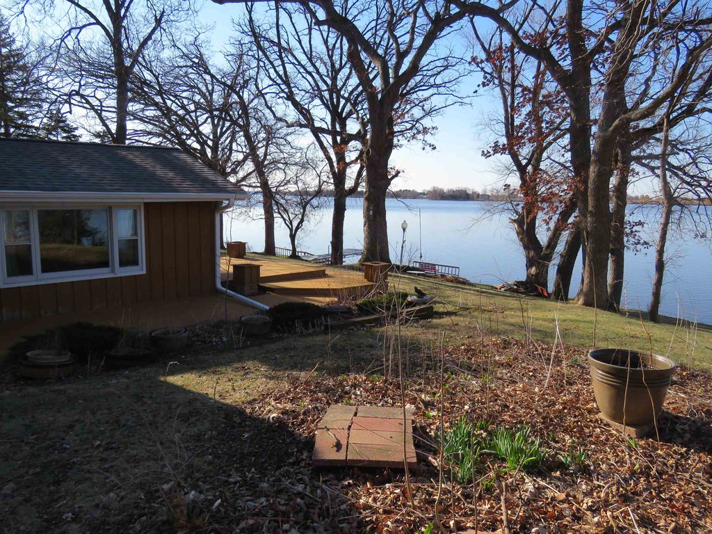 Hilltop views of Beaver Dam Lake with approx. 197' of prime shoreline sit on this .80-acre gem, on a desirable quiet dead end road. This 1 1/2 story home offers a 1st floor bedroom and full bath. Kitchen and bathroom have been updated to include kitchen appliances and bath offers heated flooring with a washer/dryer area. The 2nd floor offers a large open bedroom area and lots of storage. There is nice bright family room with vaulted ceiling, lots of windows for some great sunlight and a nice wood stove to make it cozy. Family room extends outside to a nice large wrap around deck for entertaining. The large living room/dining area is open concept and offers a beautiful gas fireplace. New roof in 2025 and new furnace/air in 2024 are a plus. This home offers an attached garage with a large breezeway/foyer area for your coats and boots. A big plus is the 12x18 shed for all the summer toys.