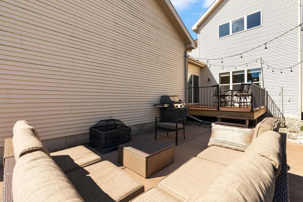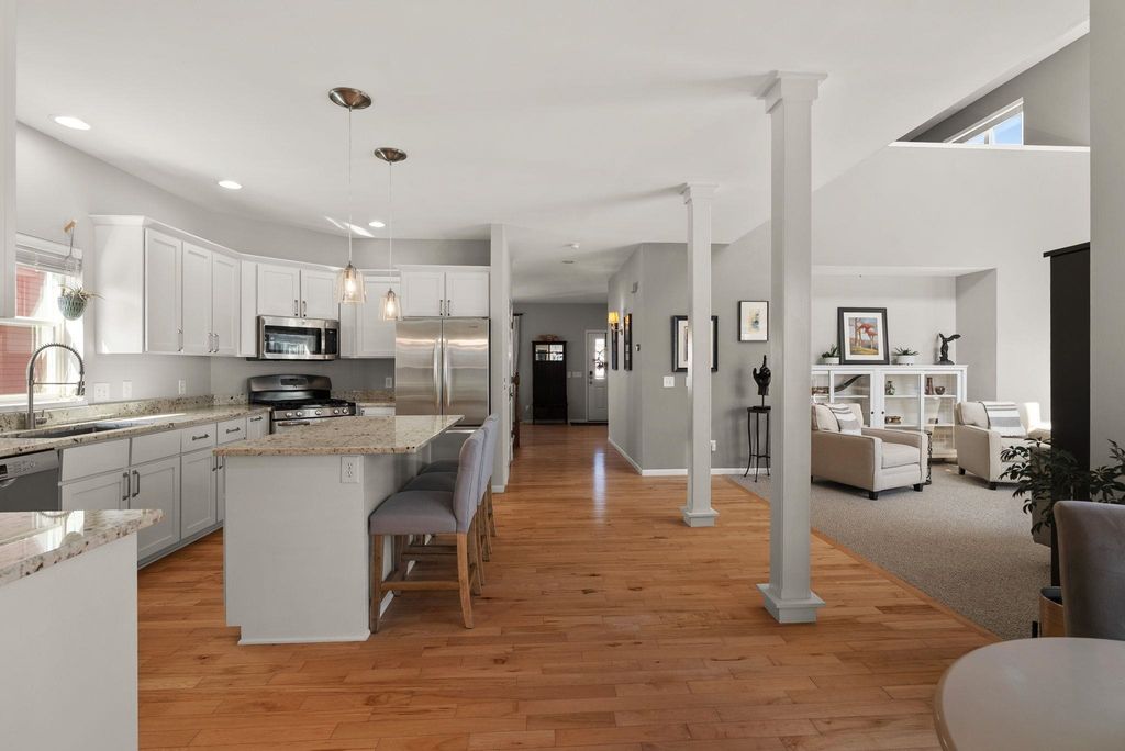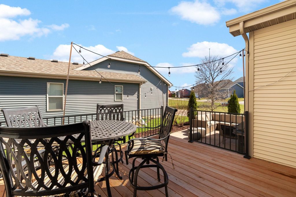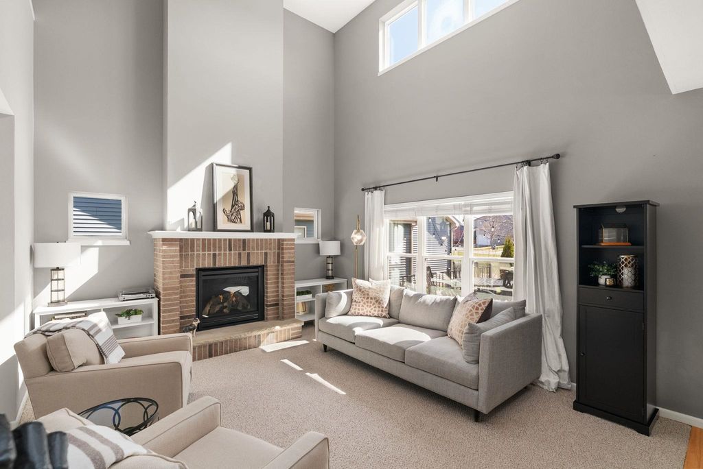Beautifully cared-for westside 3-bedroom, 3.5-bath home ready for its next chapter! Bright, open main level features a stylish kitchen with large island, granite tops, stainless appliances, and light cabinetry, flowing into a welcoming living area with a gas brick surround fireplace and soaring ceilings. Main-floor primary suite offers a refreshed full bath and walk-in closet.Warm maple flooring and clean-lined white trim carry throughout the home. Upstairs includes two spacious bedrooms and a versatile loft overlooking the main living space-ideal for a home office or hangout zone. The finished lower level provides excellent additional living space with multiple gathering areas, a den,and an updated full bath, with egress windows offering the potential for a future fourth bedroom. Step outside to a newly updated back deck and inviting front porch, all backing to open green space for kids to play!Fresh paint in select areas and a prime westside location close to all Madison has to offer