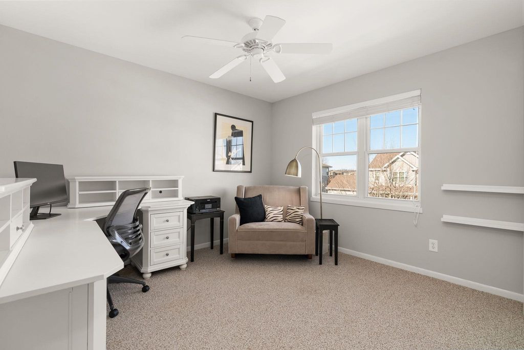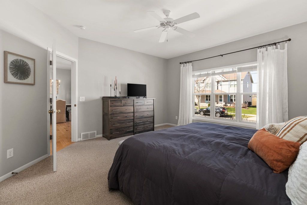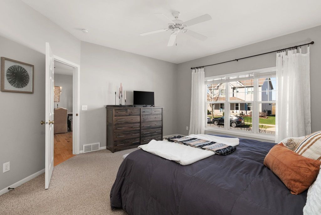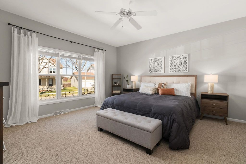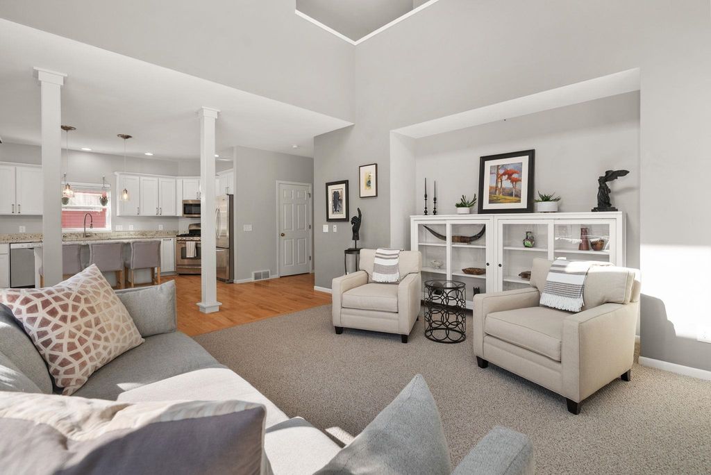 Beautifully cared-for westside 3-bedroom, 3.5-bath home ready for its next chapter! Bright, open main level features a stylish kitchen with large island, granite tops, stainless appliances, and light cabinetry, flowing into a welcoming living area with a gas brick surround fireplace and soaring ceilings. Main-floor primary suite offers a refreshed full bath and walk-in closet.Warm maple flooring and clean-lined white trim carry throughout the home. Upstairs includes two spacious bedrooms and a versatile loft overlooking the main living space-ideal for a home office or hangout zone. The finished lower level provides excellent additional living space with multiple gathering areas, a den,and an updated full bath, with egress windows offering the potential for a future fourth bedroom. Step outside to a newly updated back deck and inviting front porch, all backing to open green space for kids to play!Fresh paint in select areas and a prime westside location close to all Madison has to offer