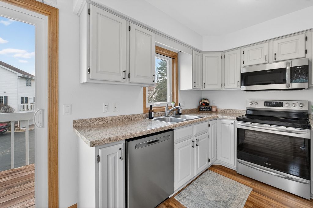 On Madison's sought-after west side, this bright end-unit condo delivers the perfect blend of comfort and low-maintenance living. A private entry welcomes you into an open, light-filled living space with laminate flooring, flowing into an inviting living room including a cozy gas fireplace. The updated kitchen shines with stainless steel appliances and freshly painted cabinets, with direct access to a private balcony; ideal for morning coffee. Complete with a two-car attached garage offering rare convenience with direct basement access. The lower level impresses with abundant storage, keeping everything organized and protected year-round. Added peace of mind: a brand-new furnace installed in 2025. Steps from shopping, dining, Hy-Vee, Target, and nearby bike paths "” this is west side Madison living at its finest.
