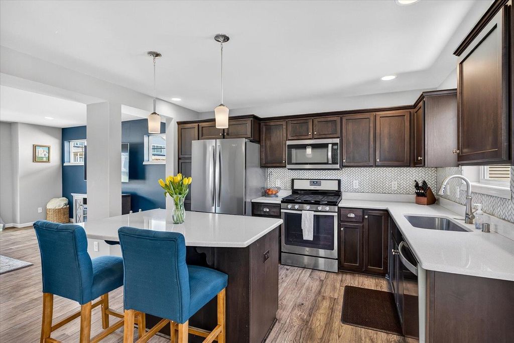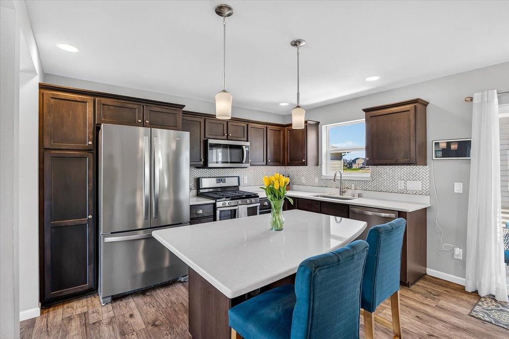 Welcome home to this beautifully upgraded two-story in the sought-after Grandview Commons neighborhood. The main level offers an open, inviting layout filled with natural light, featuring a spacious living area, dedicated dining space, and a stylish kitchen with quartz countertops, tile backsplash, and stainless steel appliances. A convenient mudroom and main-level laundry"”tucked next to the half bath"”make everyday living easy. Upstairs, you'll find a primary bedroom with an ensuite, along with two additional bedrooms and a second full bath. Step outside to a private patio and side yard"”perfect for relaxing or entertaining. The unfinished lower level offers great storage and potential for future expansion. Located close to parks, shopping, dining, and just minutes from downtown Madison and Sun Prairie, this home offers a strong sense of community along with everyday conveniences. Green Built and Quality 360 Certified, it's designed for efficiency and long-term value.