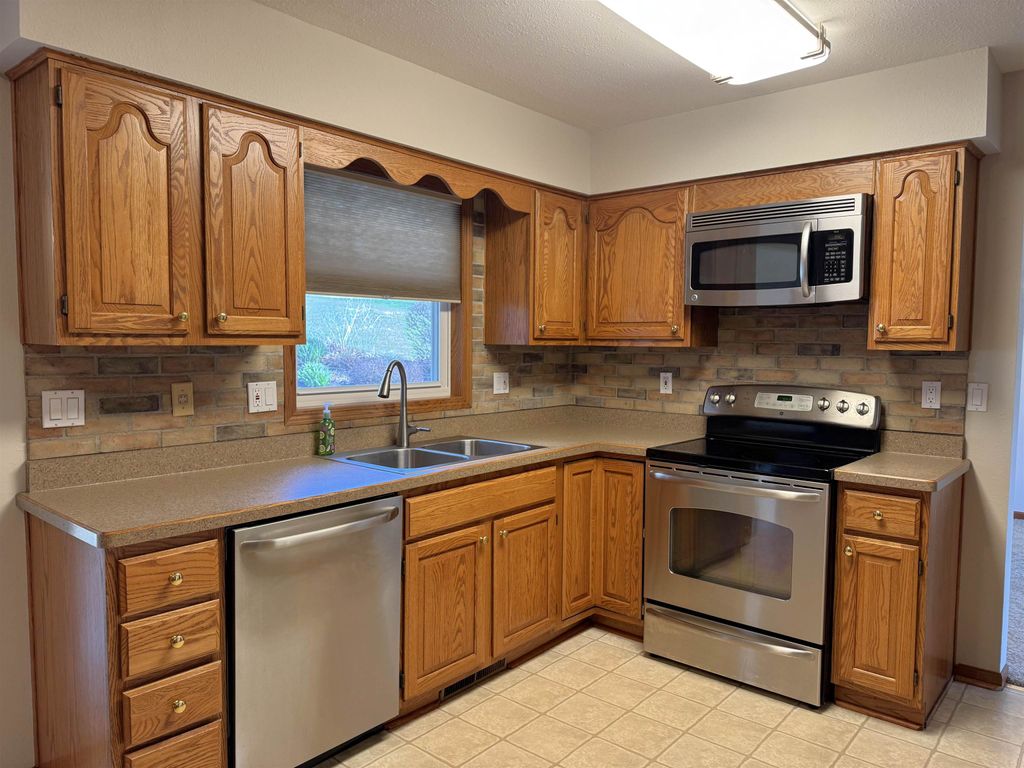 Welcome home to comfort and versatility of this three-bedroom, three-bathroom home. The main level features a spacious living room seamlessly connected to the dining area. Generous cabinet and counter space in the kitchen, along with two pantries and an island that offers a convenient spot for morning coffee. The gas fireplace in the family room provides a tranquil place to relax and unwind. Patio doors lead outdoors to an amazing stone patio with built-in firepit - the ideal place for summer cookouts. A walk-in closet and en-suite bathroom enhance the private primary suite. The finished basement offers expanded options for an office, extra living space, and a versatile flex room well-suited for entertainment, exercise, or to carry out your hobbies. The two-car garage completes this highly functional and appealing property.