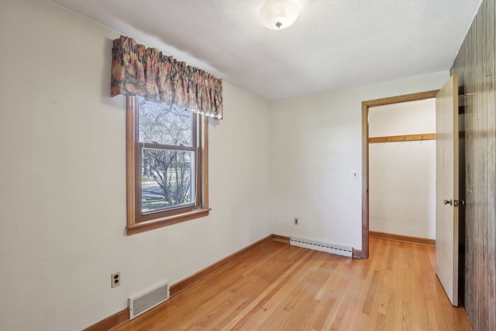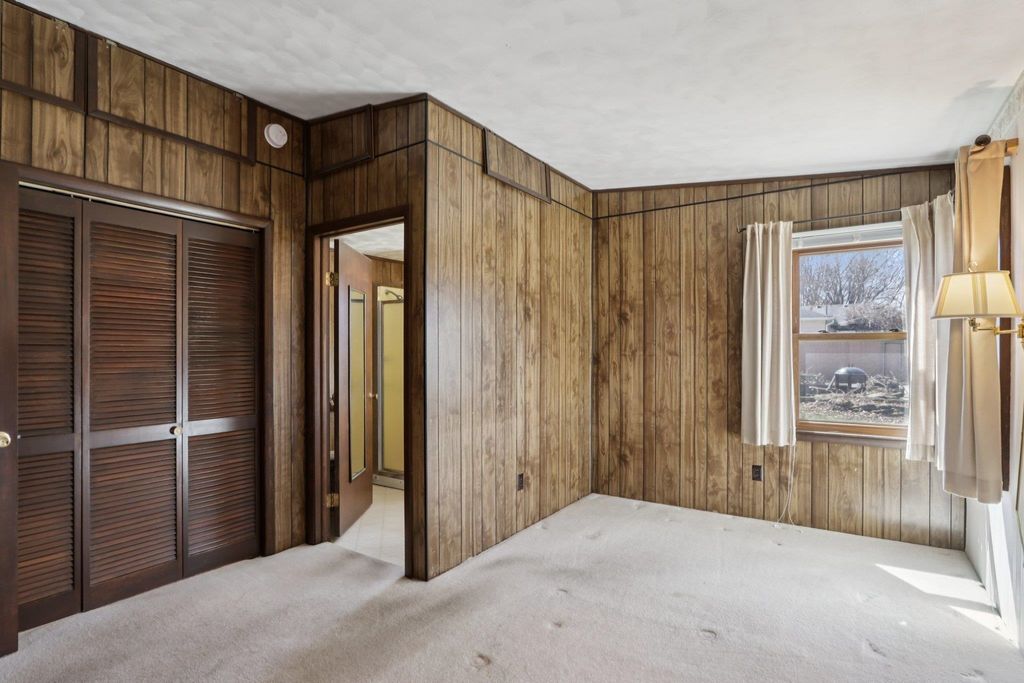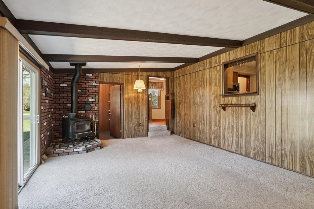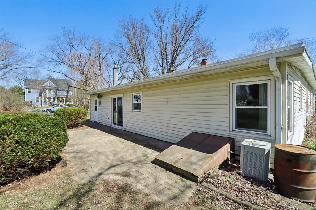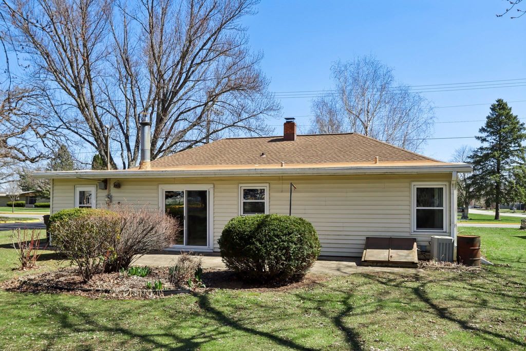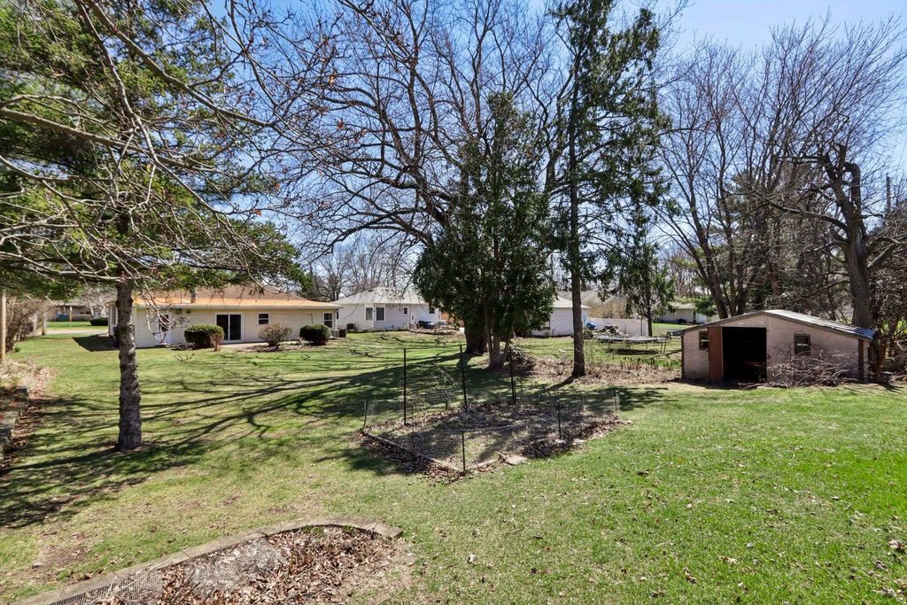 Showings start on 4/10. Nestled in the heart of Verona, just steps away from Badger Ridge Middle School, sits this charming 2,086 sq ft, 4 bdrm, 2 bath, ranch on .30 acre lot! Inviting covered fron porch welcomes you into a spacious living rm with hardwood floors, galley kitchen & dining area. Large family room with wood stove & walk-out to patio is flanked by primary bdrm featuring private bath with stand-alone shower and mud room with access to back yard. Bdrms 2, 3 & 4 have hardwood floors. Bdrm 4 was currently used as a walk-thru office with doors removed. Partly finished lower level rec rm with bar nook. Huge storage area with Bilko doors to exterior, perfect for a workshop. Updated windows. Huge back yard to relax, play, garden, etc. includes shed (as is). Affordably priced with cosmetic updates in mind.