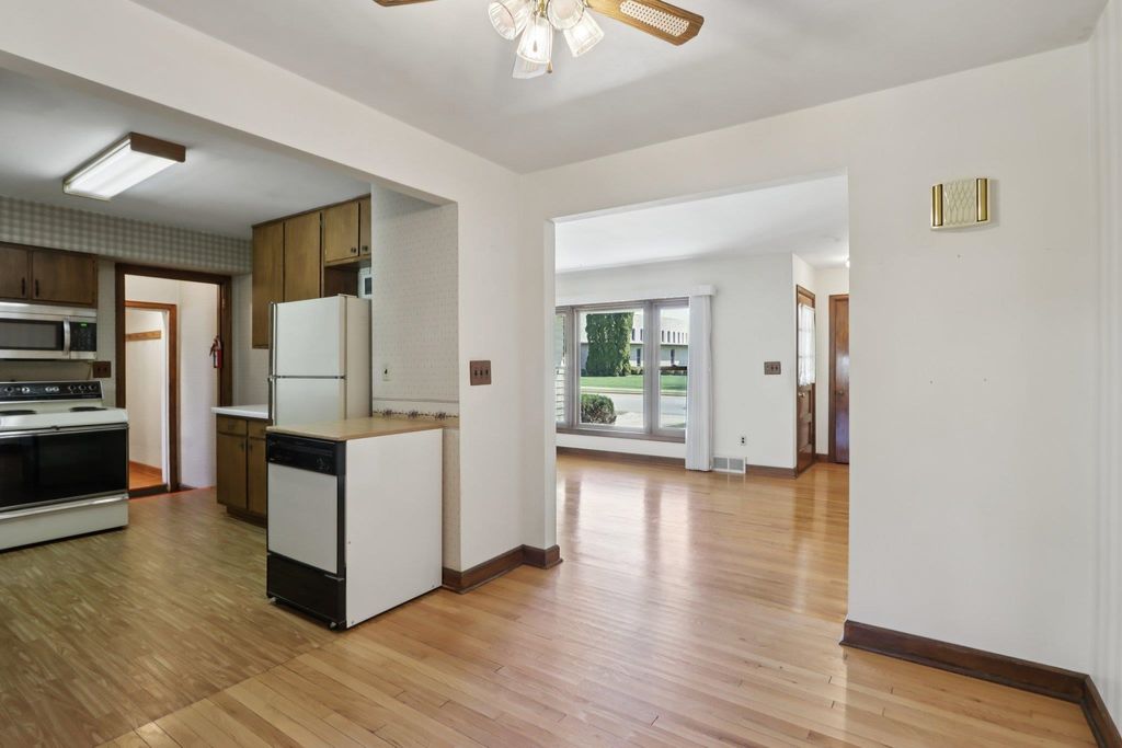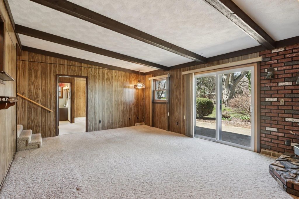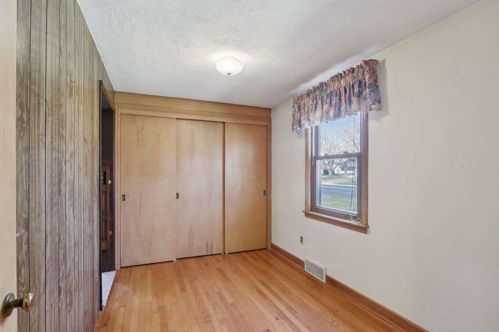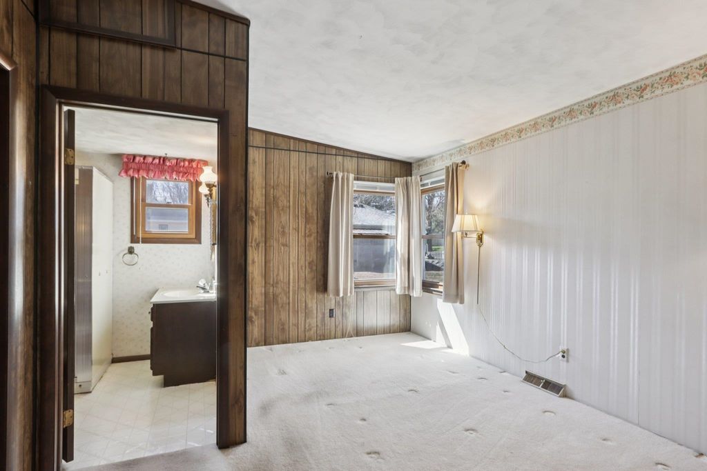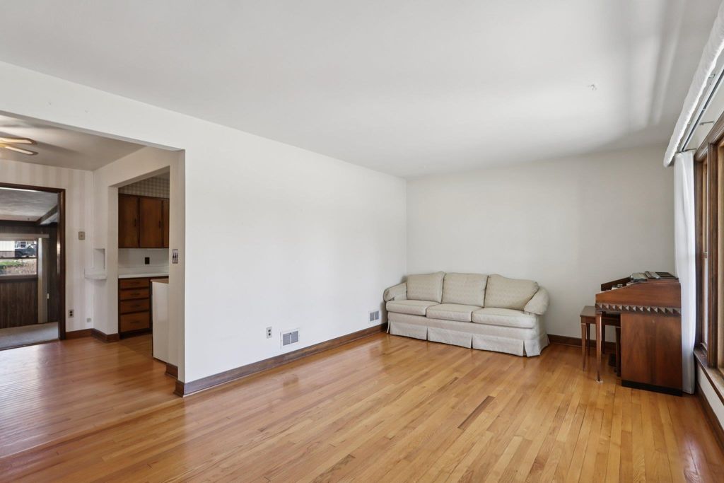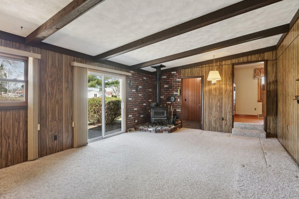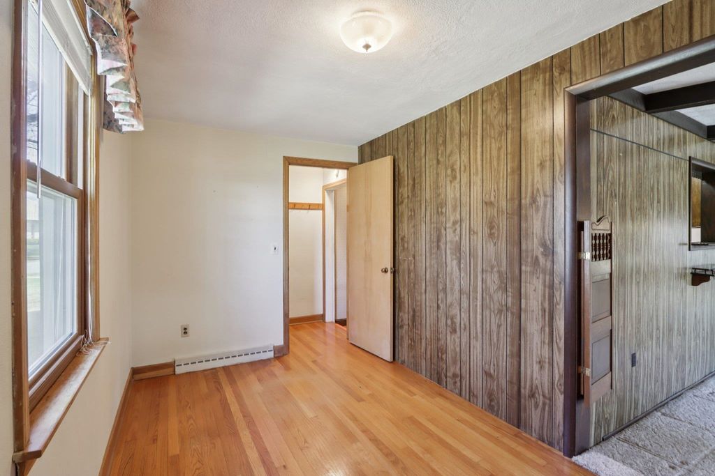 Showings start on 4/10. Nestled in the heart of Verona, just steps away from Badger Ridge Middle School, sits this charming 2,086 sq ft, 4 bdrm, 2 bath, ranch on .30 acre lot! Inviting covered fron porch welcomes you into a spacious living rm with hardwood floors, galley kitchen & dining area. Large family room with wood stove & walk-out to patio is flanked by primary bdrm featuring private bath with stand-alone shower and mud room with access to back yard. Bdrms 2, 3 & 4 have hardwood floors. Bdrm 4 was currently used as a walk-thru office with doors removed. Partly finished lower level rec rm with bar nook. Huge storage area with Bilko doors to exterior, perfect for a workshop. Updated windows. Huge back yard to relax, play, garden, etc. includes shed (as is). Affordably priced with cosmetic updates in mind.