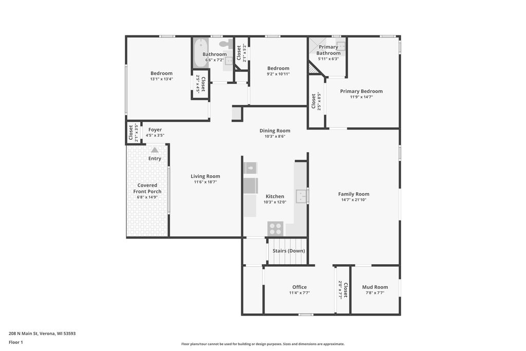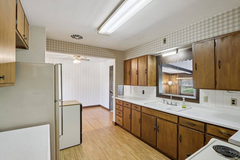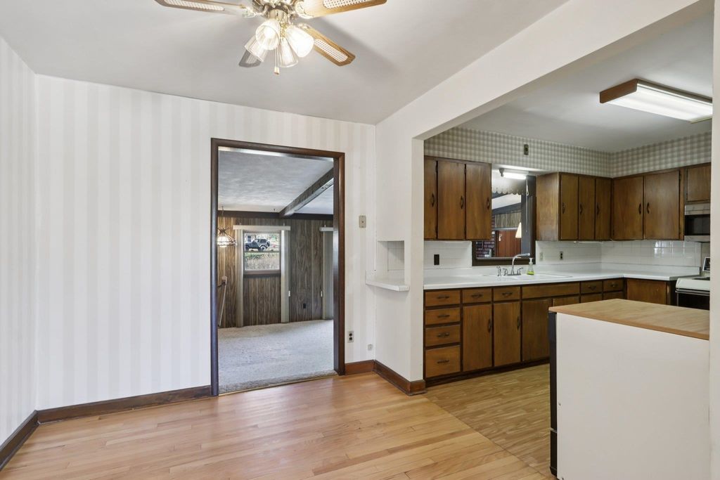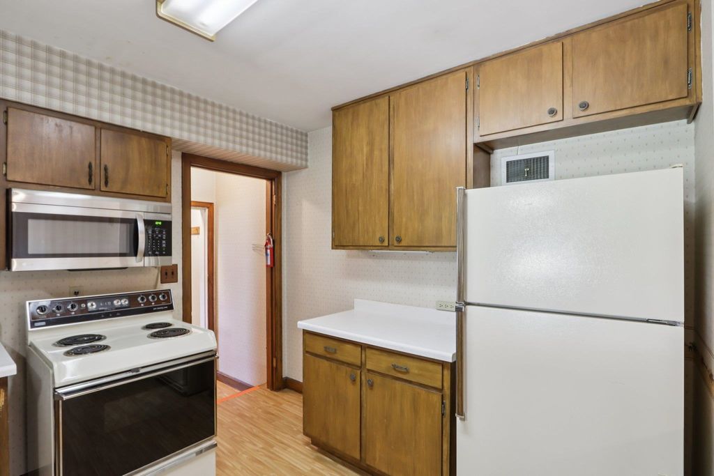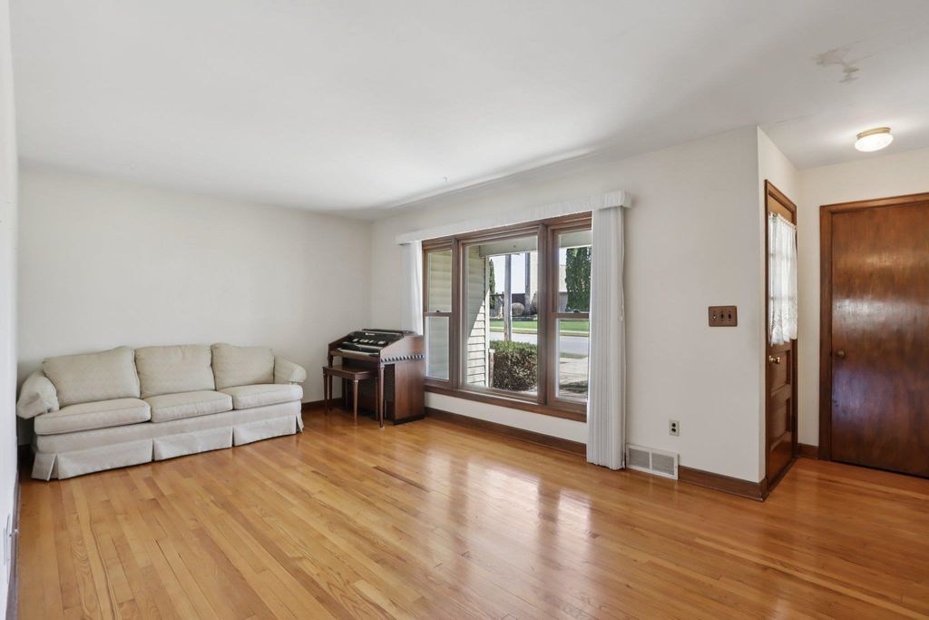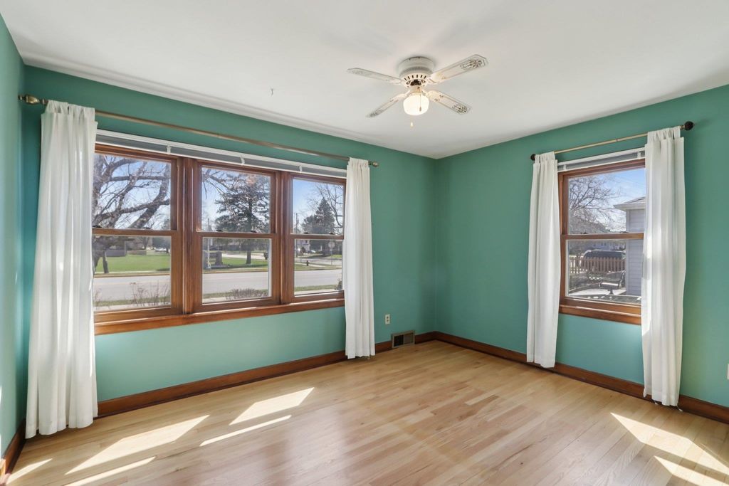 Showings start on 4/10. Nestled in the heart of Verona, just steps away from Badger Ridge Middle School, sits this charming 2,086 sq ft, 4 bdrm, 2 bath, ranch on .30 acre lot! Inviting covered fron porch welcomes you into a spacious living rm with hardwood floors, galley kitchen & dining area. Large family room with wood stove & walk-out to patio is flanked by primary bdrm featuring private bath with stand-alone shower and mud room with access to back yard. Bdrms 2, 3 & 4 have hardwood floors. Bdrm 4 was currently used as a walk-thru office with doors removed. Partly finished lower level rec rm with bar nook. Huge storage area with Bilko doors to exterior, perfect for a workshop. Updated windows. Huge back yard to relax, play, garden, etc. includes shed (as is). Affordably priced with cosmetic updates in mind.