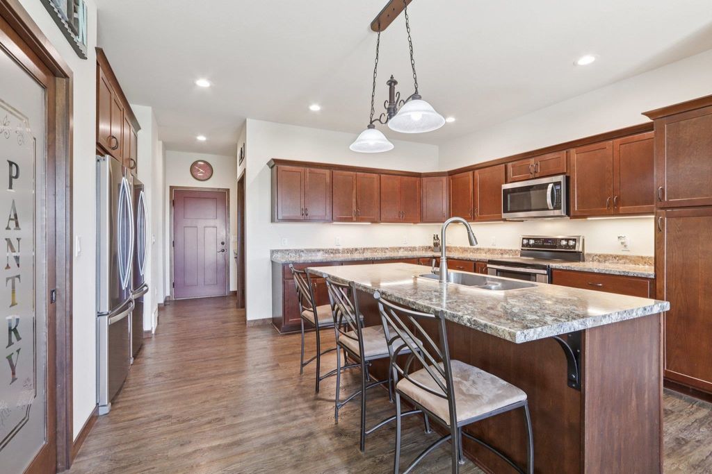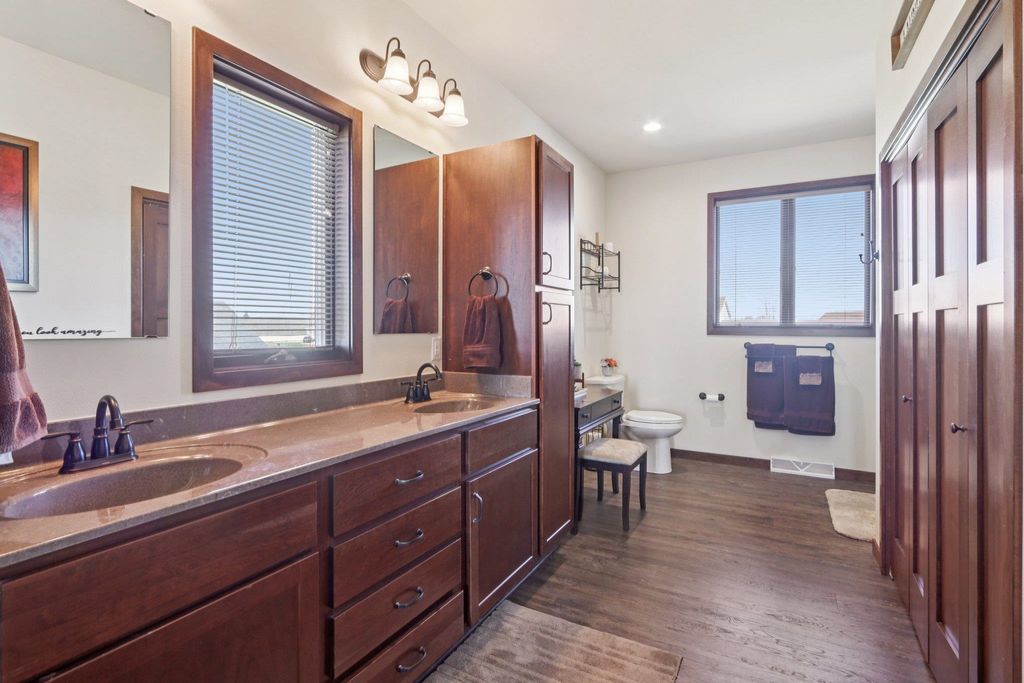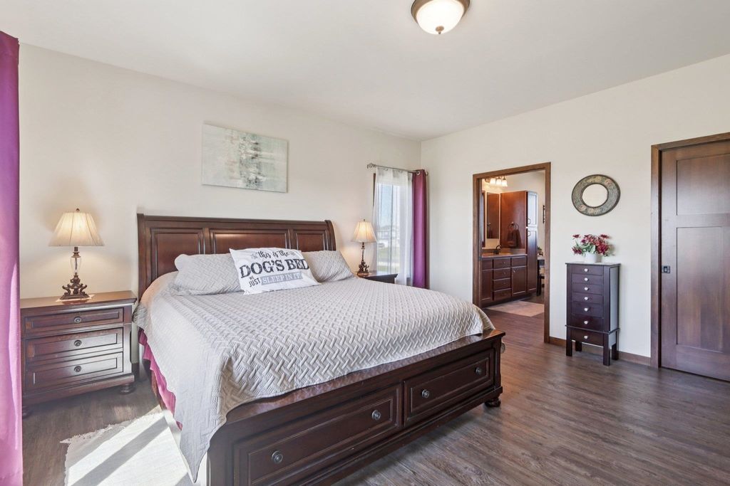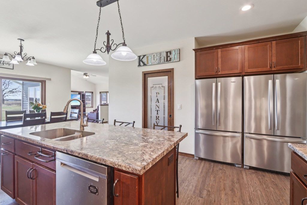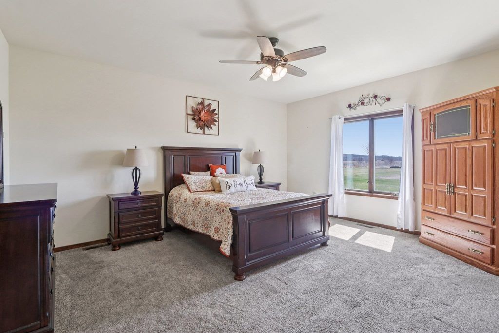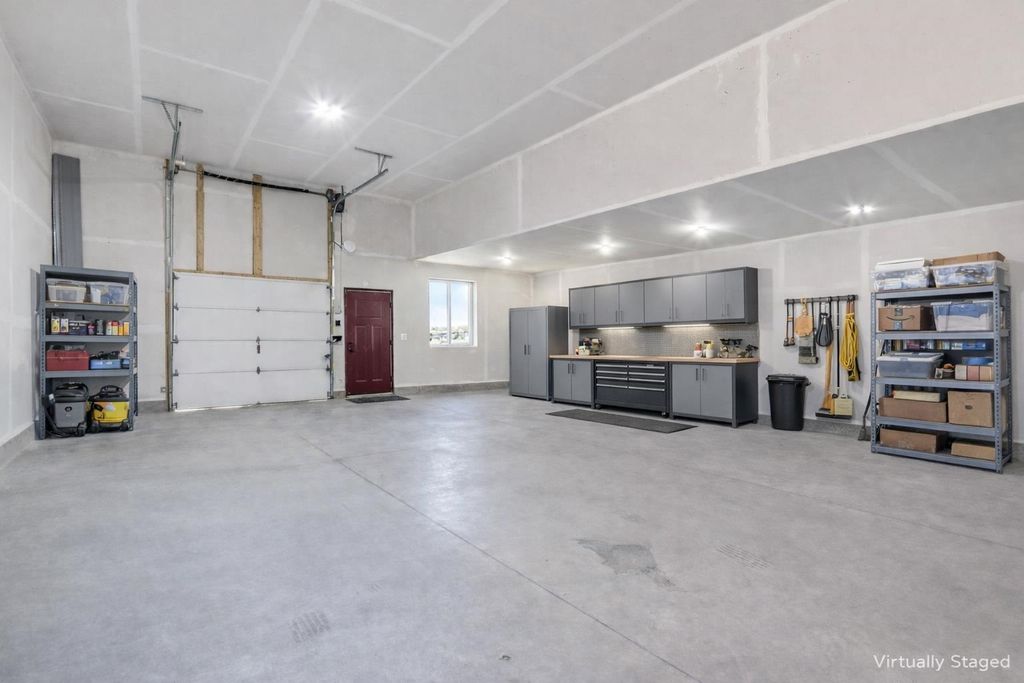Located in a quiet country neighborhood just south of Belleville. This custom built home features an amazing attached garage with in floor radiant heat, room for lots of cars/toys or tons of storage. Perfect for the hobbyist, collector or shop. Designed for an active household with 3 primary suites (two on main level and one upper), two offices, multiple living areas and lots of closet space. Spacious kitchen with two refrigerators, large island and walk in pantry. Main level laundry and additional laundry hook ups on the 2nd floor. Unfinished lower level provides extra storage space or room to expand. Fenced yard. Left garage bay is 66' X 29'. Garage has hot/cold water, floor drains, dog wash station and access to basement. UHP Elite Home Warranty included.