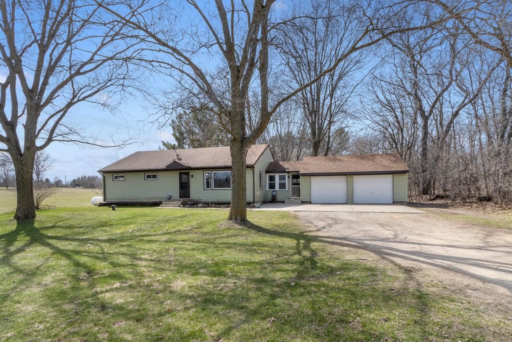 Sellers got a job transfer and have to relocate out of state -- don't miss this one!! Well maintained, 4 bedroom 2 full bath ranch home on a one acre lot! Conveniently located just outside of Rio on Highway 16 you have an easy commute to Madison, Portage, Poynette, Columbus, etc. Recently finished lower level, complete with egress window - adding a large primary bedroom with a walk in closet and rustic barn door, full bathroom and a rec room! The ceiling is painted, but not covered, to allow for a more open feel. The main level of this home offers 3 bedrooms and a full bath, large windows that let the sunshine flood in. Attached two car garage with a breezeway between house and garage. Convenient mud room area in the entry way. The lower level also has a workshop area in it for all those projects you want to get done. The wooded lot offers room to roam, a chicken coop, and plenty of space for a nice garden. Bring the dogs! All appliances are included! LP tank is rented.