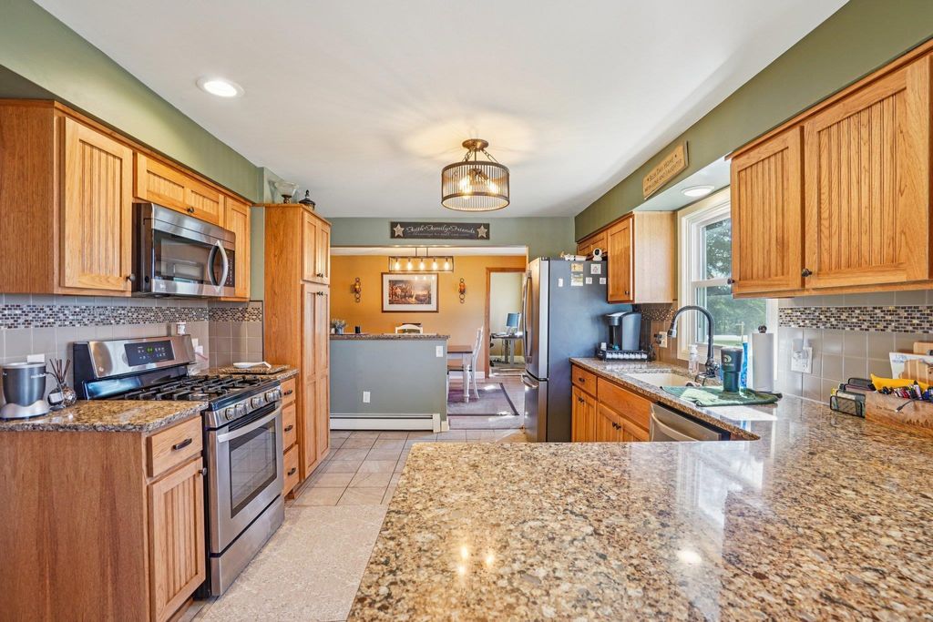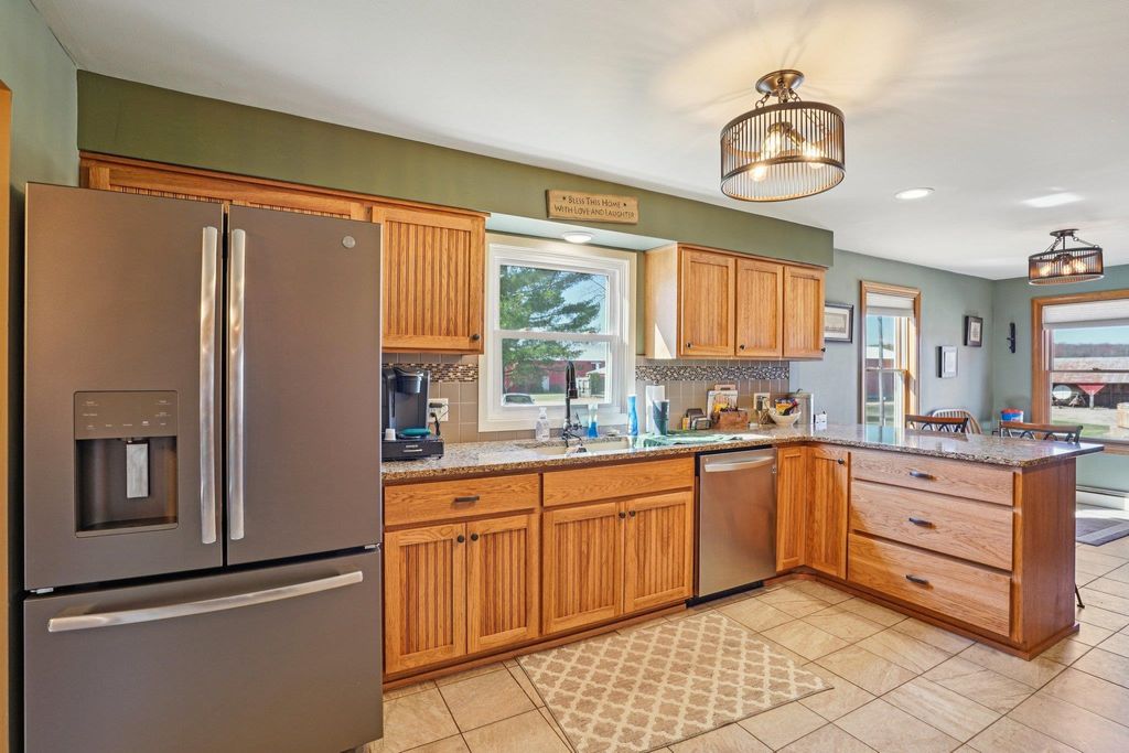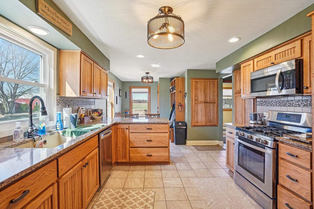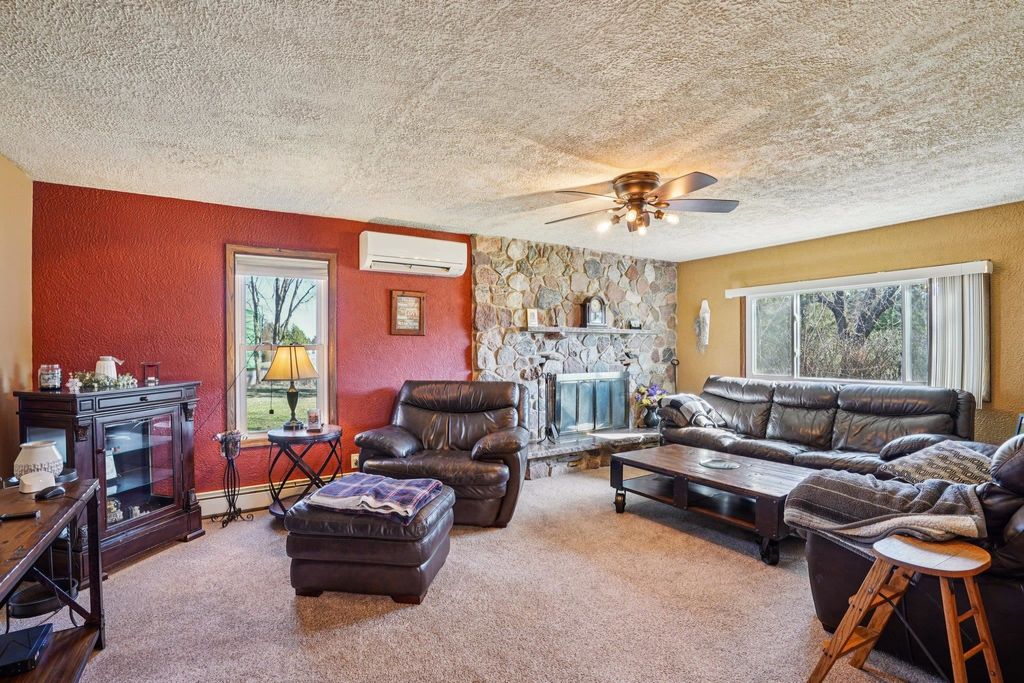 Set on 57+ acres, this 3-bedroom, 2-bath property blends country living, recreation, and modern updates. The home features a spacious living room with a stone wood-burning fireplace, formal dining room, and a fully remodeled kitchen with solid surface countertops and updated baths throughout. A main-level office and full basement add functionality, while the primary suite offers a walk-in closet and generous space. Enjoy outdoor living on the side deck and rear patio, plus a unique, professionally designed dirt bike track for personal use. Multiple farm outbuildings provide ample storage and hobby space. Metal roof and Spectrum fiber internet available. Conveniently located under 10 minutes to Mauston, I-90, Castle Rock Lake, and the Wisconsin River. Seller requires lender pre-approval prior to confirming showings.