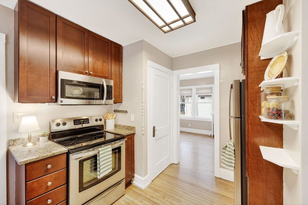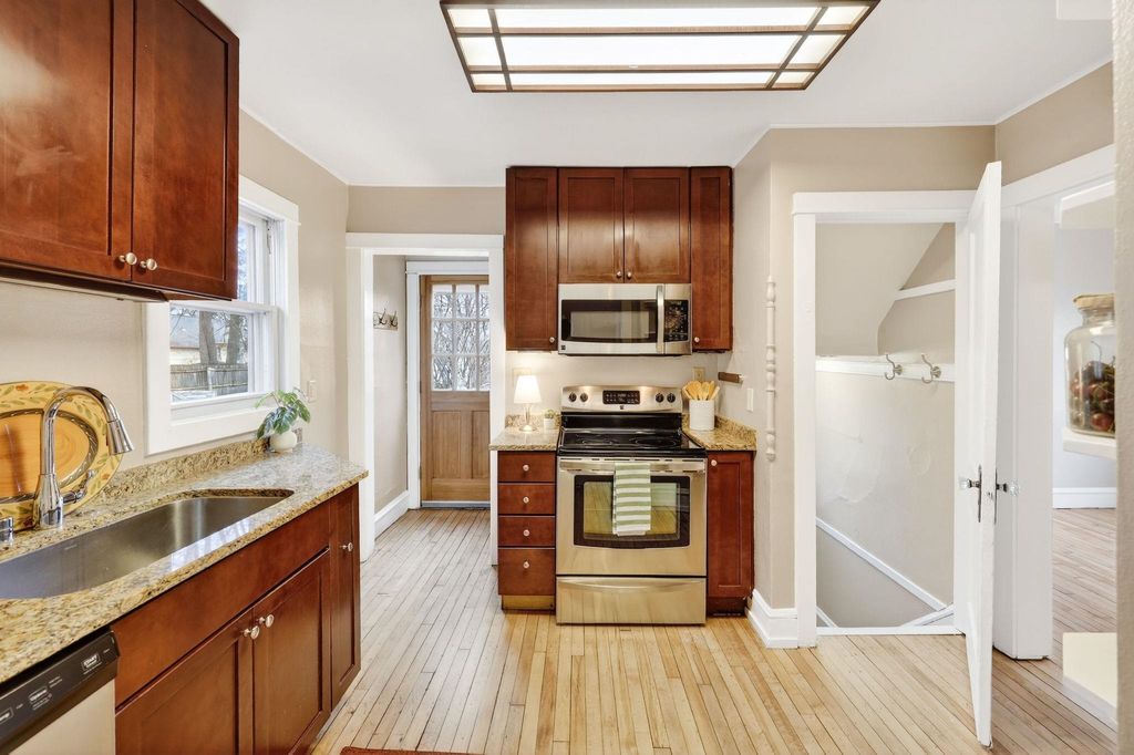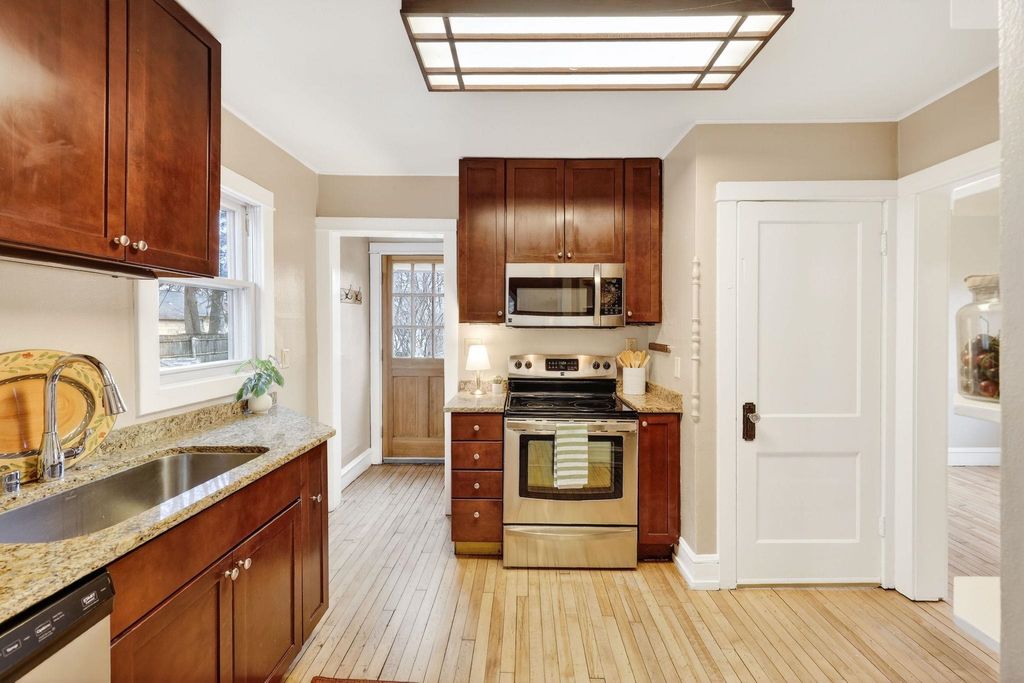 Nestled in the heart of Madison's eclectic East side, the Purple Bungalow is where charm meets modern convenience. This beautifully updated home boasts newly refinished hardwood floors, new interior paint, spacious & flexible living spaces filled with light, a three season porch/mudroom w/built in storage. 3 cozy bedrooms upstairs and a gorgeous remodelled bath w/clawfoot tub. The kitchen is a dream with sleek granite countertops, stainless steel appliances, and ample storage. Relax on the deck overlooking a very spacious yard, fully fenced! Located near the Starkweather and Capitol City Bike Path, Library and Bus Line. Easy access to downtown Madison. Adorable and affordable. Make this gem your new home!