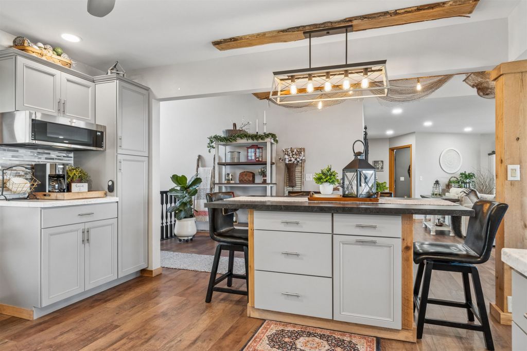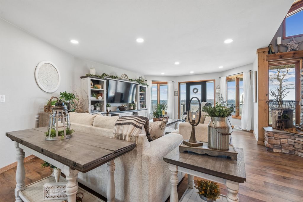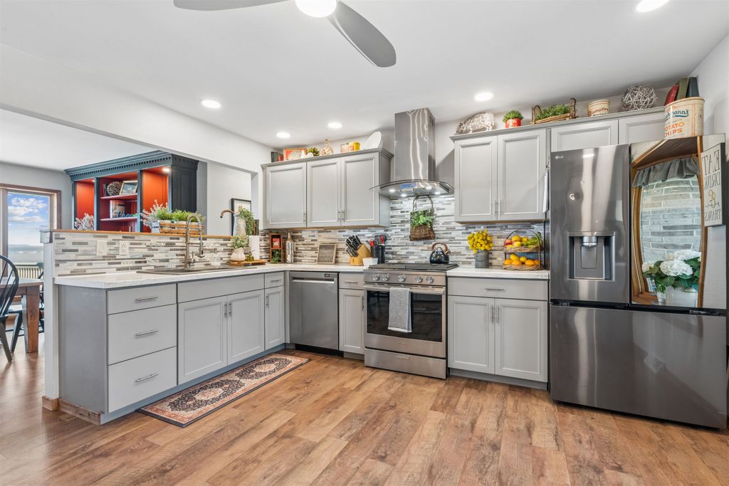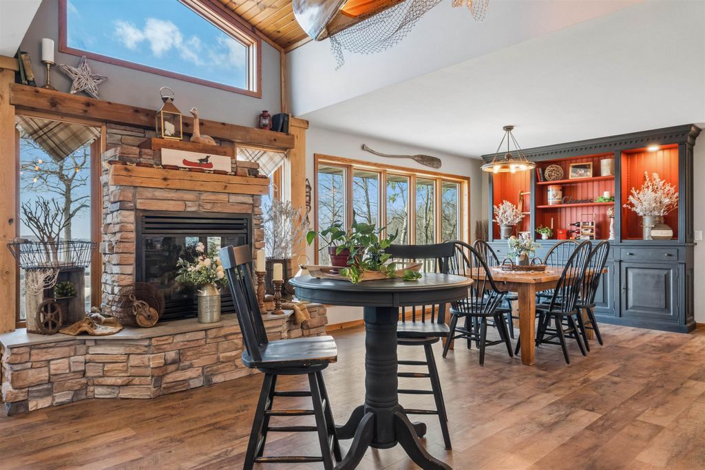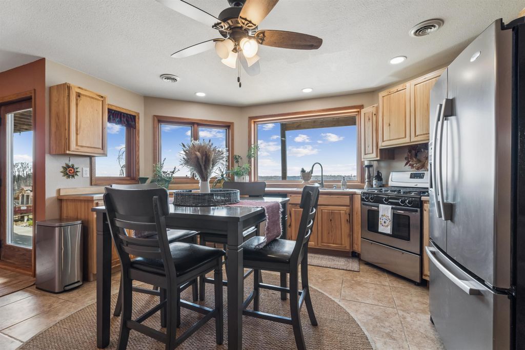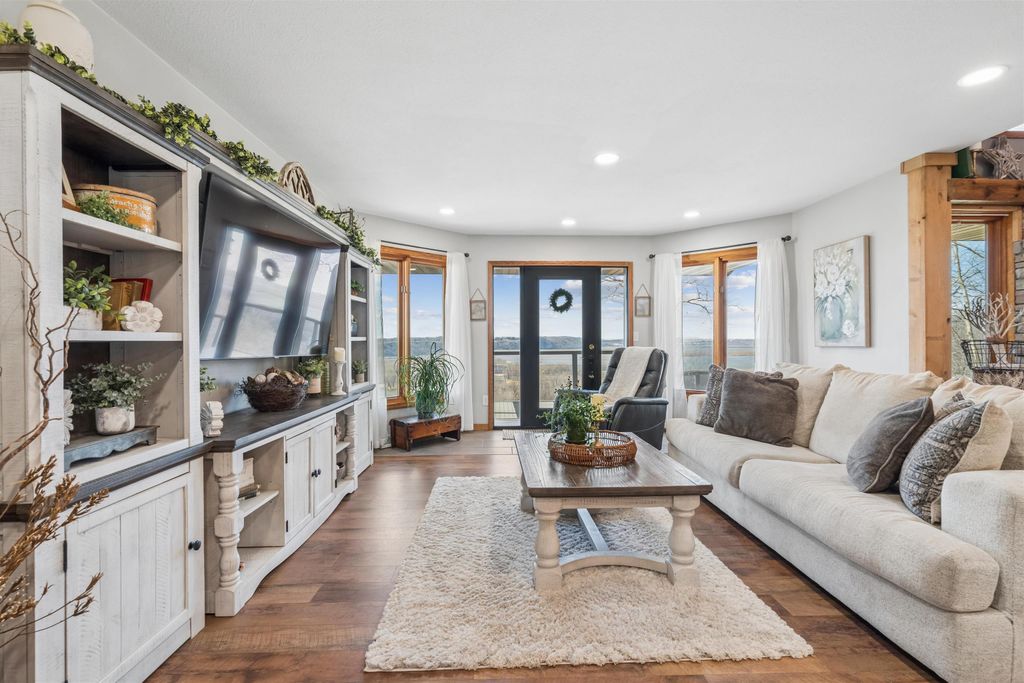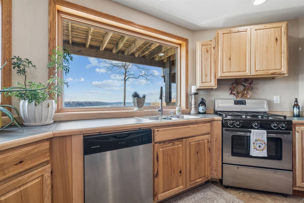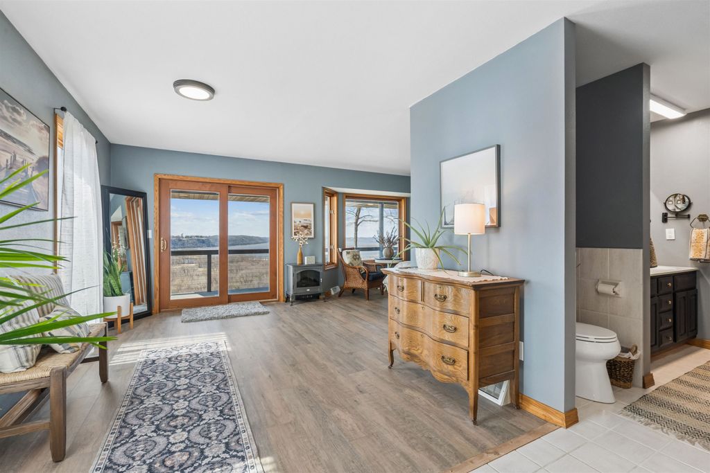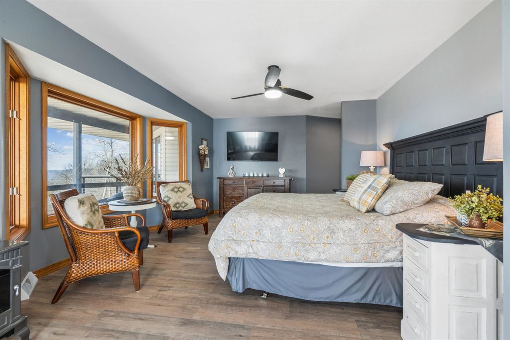 Perched above the Mississippi River in Hazel Green WI, this exceptional residence captures panoramic views from nearly every room, offering a truly elevated living experience just minutes from Dubuque. The main level features an open-concept design with expansive windows, three bedrooms, and two baths, seamlessly connecting to a private deck overlooking the river where the views continue to impress. The lower level is equally impressive, complete with a full second kitchen, additional bedroom, bath, and generous living space, ideal for guests or multi-generational living. A 3-car attached garage and detached heated shop provide both convenience and versatility. Blending refined comfort with breathtaking natural beauty, this is a rare opportunity to own one of the area's most captivating view properties.