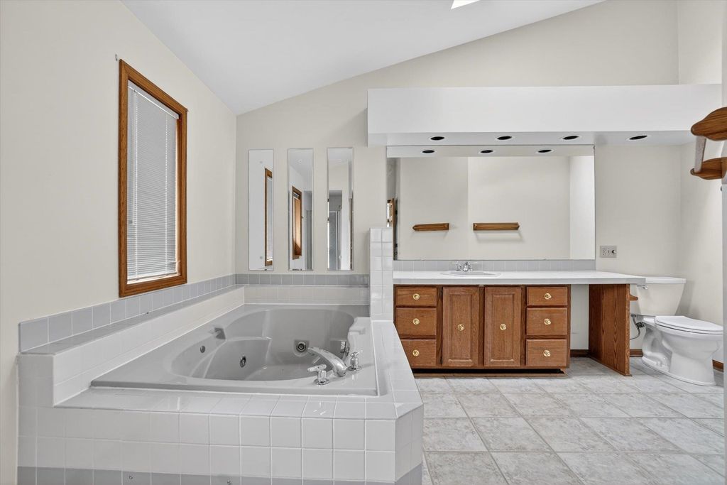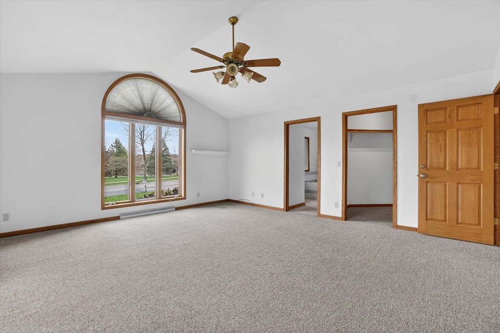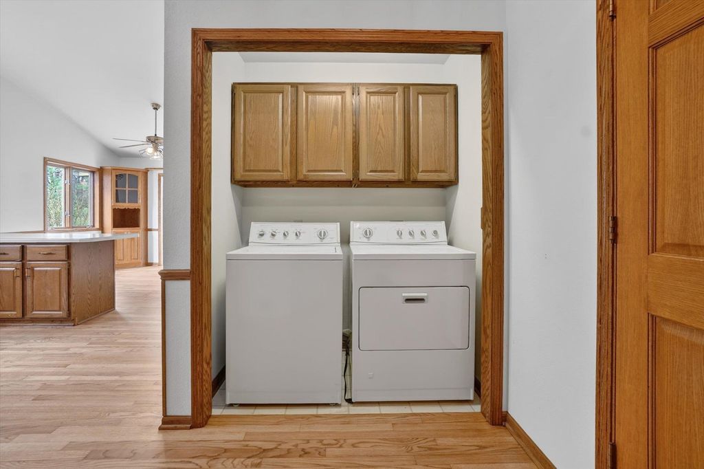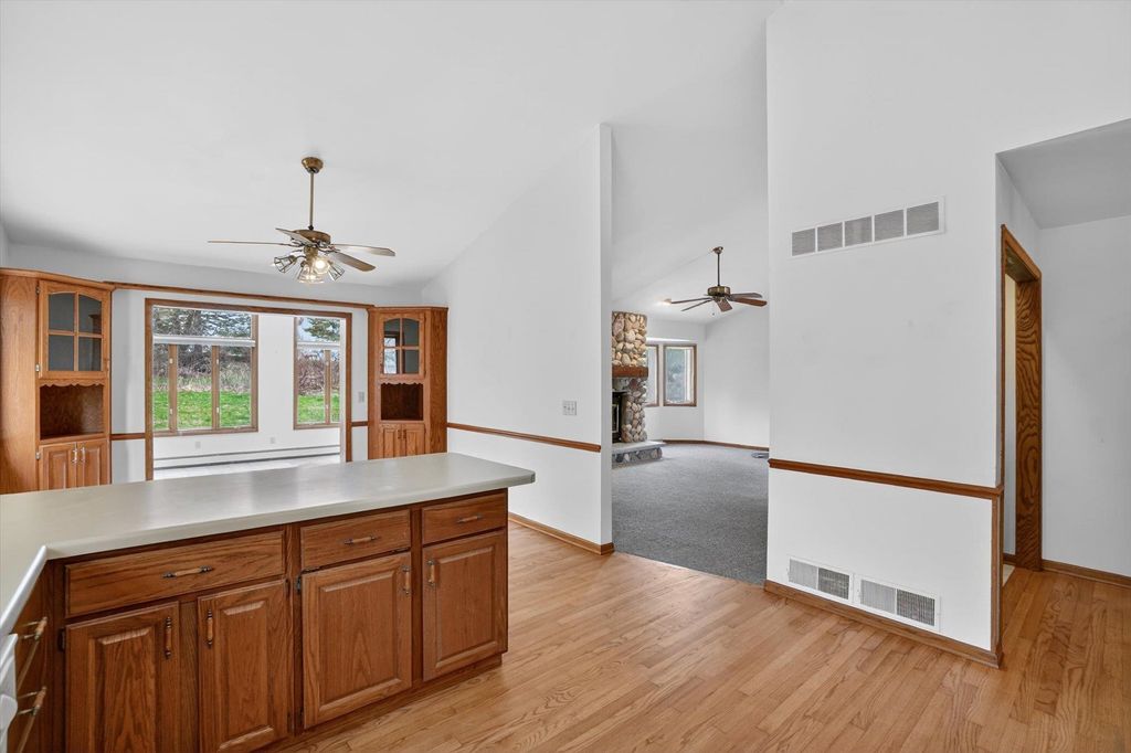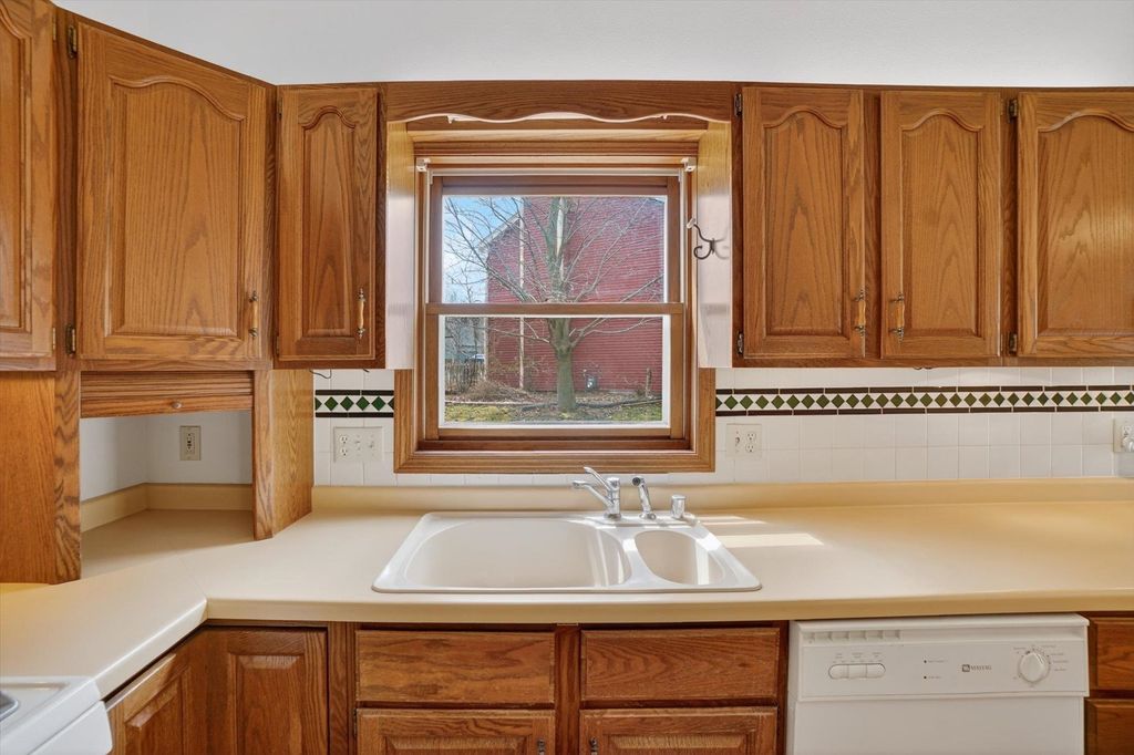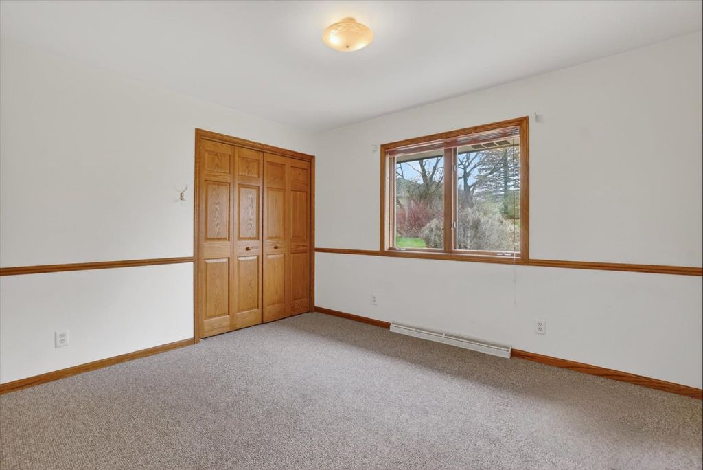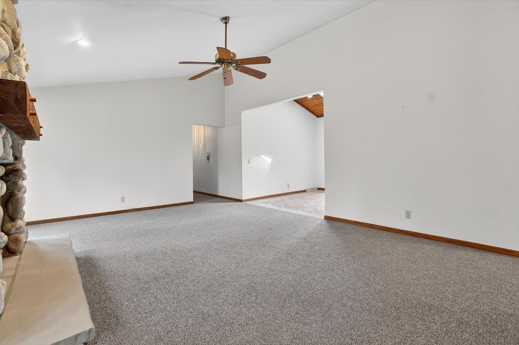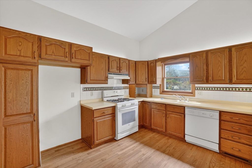 OPEN HOUSE CANCELLED. Is there a 3-bed home in West Bend under $500K that offers main-floor living, nature access, & unique design features? This home's living room features vaulted ceilings & a striking fieldstone gas fireplace, creating a warm, open gathering space. Hardwood floors run through the kitchen & dining areas, adding durability & timeless appeal. ML bedrooms, full bath, & laundry provide convenience for long-term living options. Primary suite showcases a large three-pane window with half-moon accent, plus private entry to a screened-in porch for morning/evening relaxing. It also includes a walk-in closet & ensuite bath with jetted tub & separate shower. A bright sunroom extends living space with backyard access. The partially finished lower level offers room for recreation, hobbies, or storage. Located near the Ice Age Trail, parks, & scenic outdoor spaces, this home combines comfort & character with convenience to some of West Bend's best amenities.
