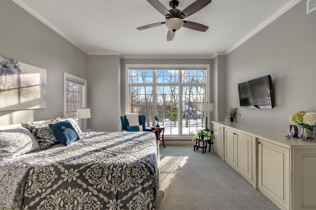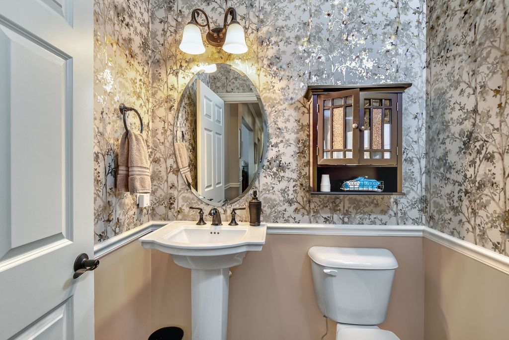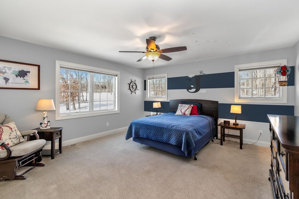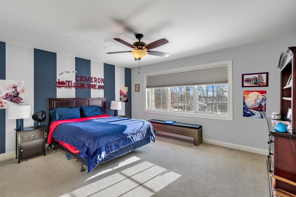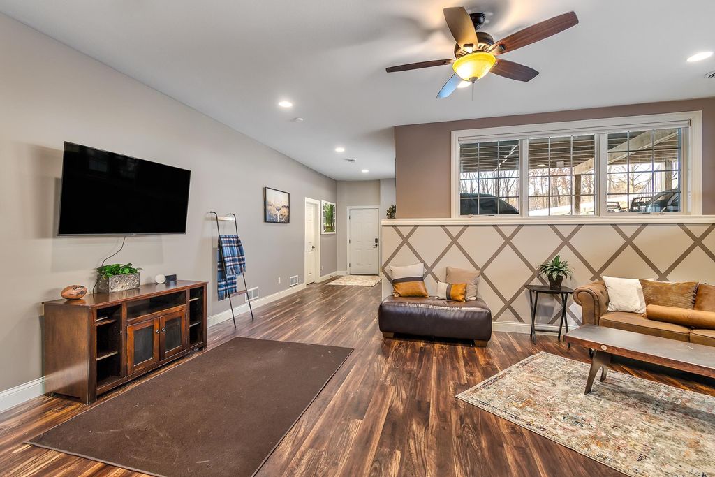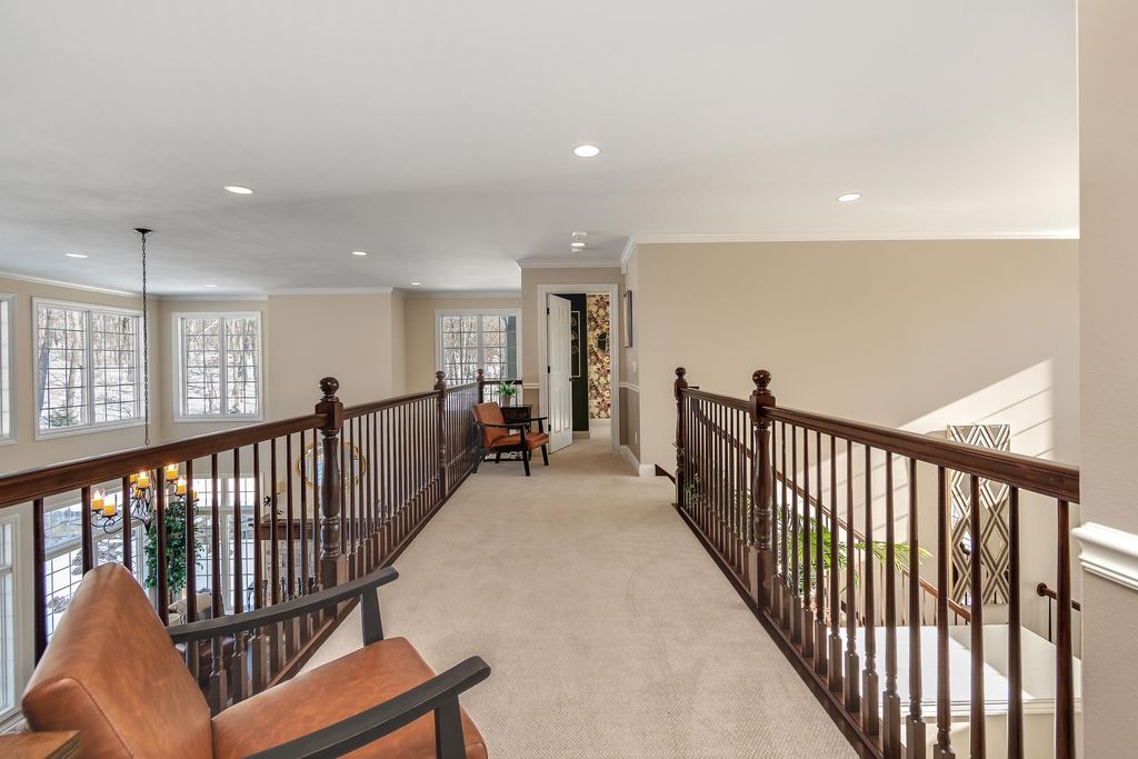 Set on over 2 acres in a peaceful rural cul-de-sac, this grand yet inviting home offers the perfect blend of elegance and everyday comfort. Featuring 5 bedrooms and 4.5 baths, the thoughtfully designed layout includes a stunning 2-story great room, formal dining, and a chef's dream kitchen complete with a separate "dirty kitchen" for added functionality. Main level also offers a private guest suite with full bath, along with a spacious mudroom and laundry. Upstairs, the luxurious primary suite boasts a spa-like bath and expansive walk-in closet, while additional bedrooms are generously sized with convenient second-floor laundry. The finished lower level is an entertainer's dream with a theater room, wet bar and lounge area, office, exercise room, and even a hidden secret room, plus abundant storage. Enjoy serene wooded views from the large screened porch. Complete with a heated 5-car garage with hot water and dog bath. This exceptional home delivers space, privacy, and refined living.