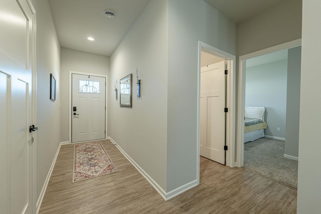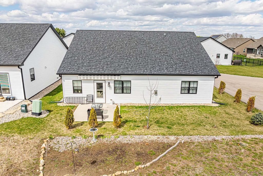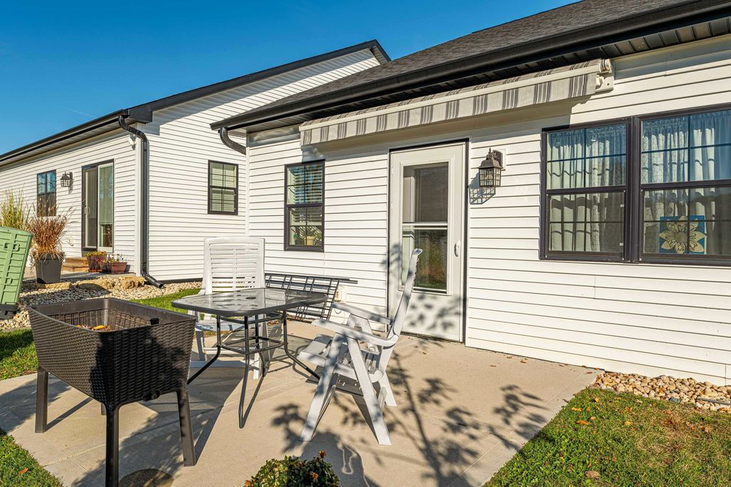 Enjoy effortless, low-maintenance living in this better-than-new 55+ home in the growing community of Belleville"”conveniently located just a short drive to Madison, Verona & New Glarus. Thoughtfully designed and impeccably maintained, this lightly lived-in home offers a bright, open-concept layout ideal for everyday living and entertaining. A welcoming foyer leads to the spacious living room featuring a cozy fireplace and patio access with a bonus awning perfect for relaxing outdoors. The kitchen shines with a large island, quartz countertops, pantry, and smart functional design. The primary suite offers a generous bedroom, oversized walk-in closet, and private bath with double vanity and walk-in shower. A second bedroom and full bath provide comfortable space for guests. Enjoy the ease of main-level laundry, zoned in-floor heat throughout including the zero-entry garage, and heated sidewalks and driveway for low maintenance winters.