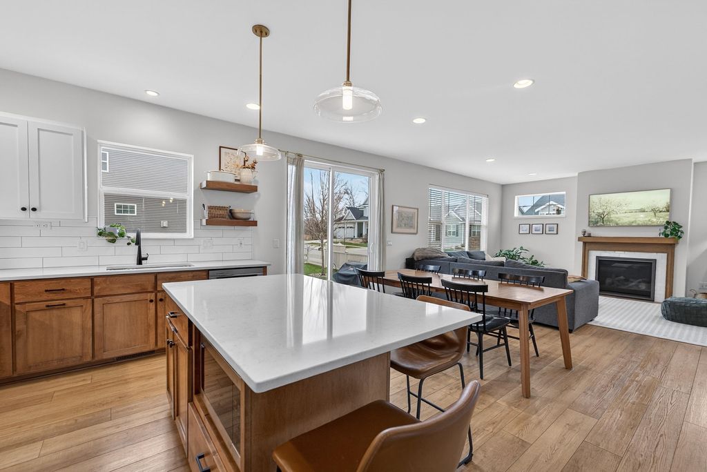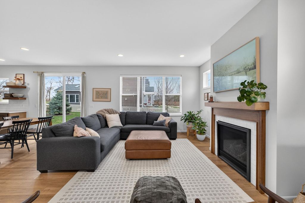 Show 4/10. Beautifully maintained home offering style, function, and modern updates throughout! The main level features a bright living room with gas fireplace, a versatile den/office, half bath, and mudroom with laundry. The kitchen shines with stainless steel appliances, quartz countertops, tile backsplash, pantry, and a large island with breakfast bar. The owner's suite includes tray ceilings, a walk-in closet, and a private ensuite with dual sinks and walk-in shower. The partially exposed lower level adds 566 sq ft with a spacious family room, office, and full bath. Enjoy the extended patio, fenced yard, and upgraded landscaping, plus a Ring doorbell and camera system. Attached 2-car garage is EV-capable. Updates include dishwasher, washer/dryer, and garage springs (2025).