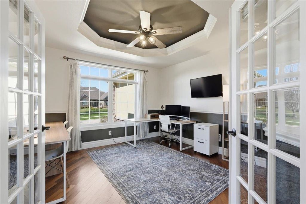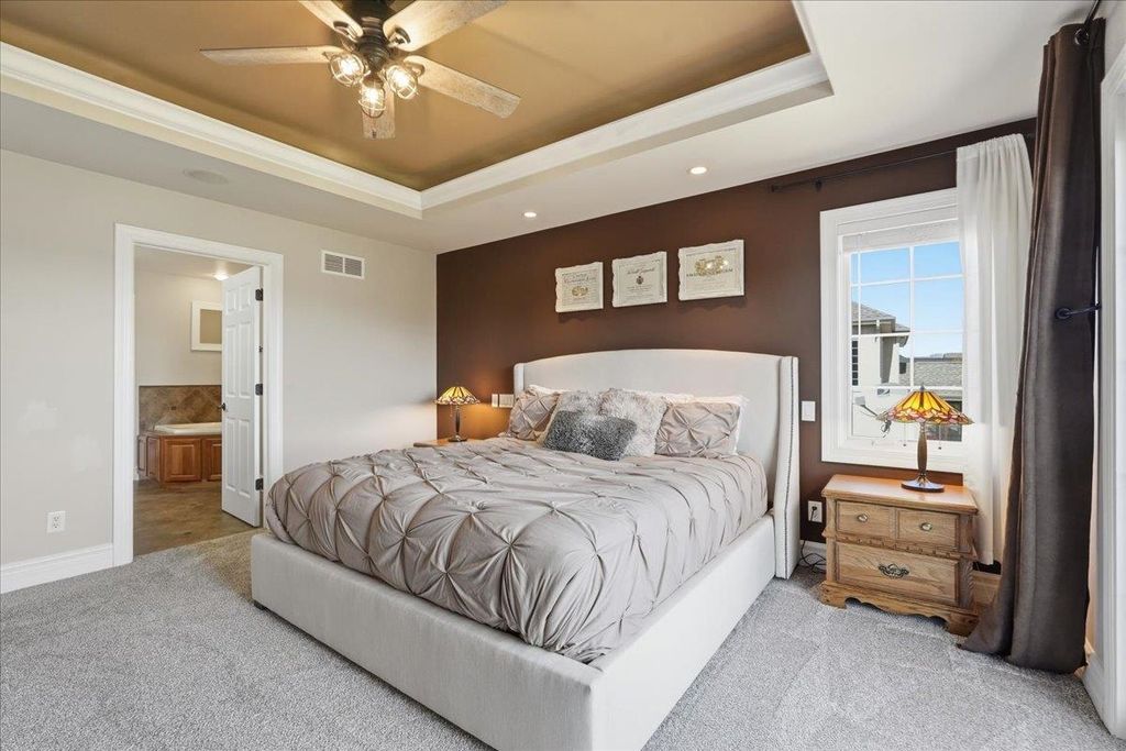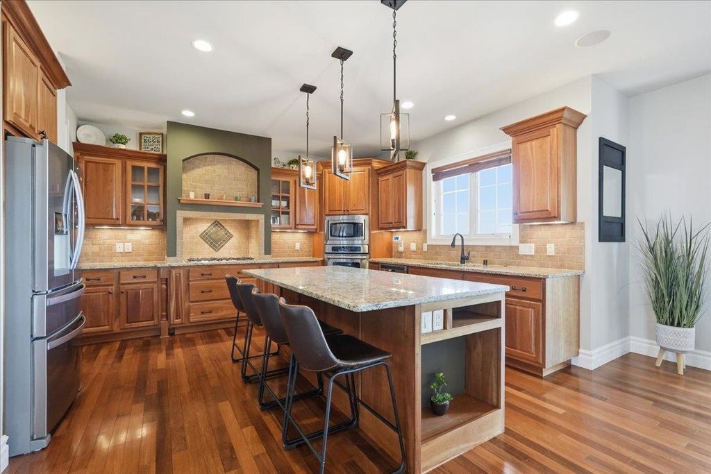 Step inside your new home in The Legend at Bergamont, a premier gated community. This exquisite 2-story 4 bedrooms & 3.5 bath home offers 3,745 sq ft w/an open-concept & an abundance of natural light throughout. Gourmet kitchen features granite counters, stainless appliances w/gas range, walk-in pantry & large island w/breakfast bar. Inviting living rm w/gas fireplace & built-ins overlooks the backyard, while a stunning sunroom w/fireplace opens to a spacious deck. Main level is completed by a private office, mudroom & pristine 3-car garage. Owner's suite features its own balcony, spa-like bath w/jetted soaking tub, custom tile shower, dual vanities & walk-in closet. A convenient second-floor laundry enhances everyday living. Stunning lower level impresses w/a custom butcher block island extending from a granite bar, feature wall w/wine storage & recreation space w/walkout access to a beautifully landscaped yard. Fitness room w/sauna & full bath complete this wonderful home.
