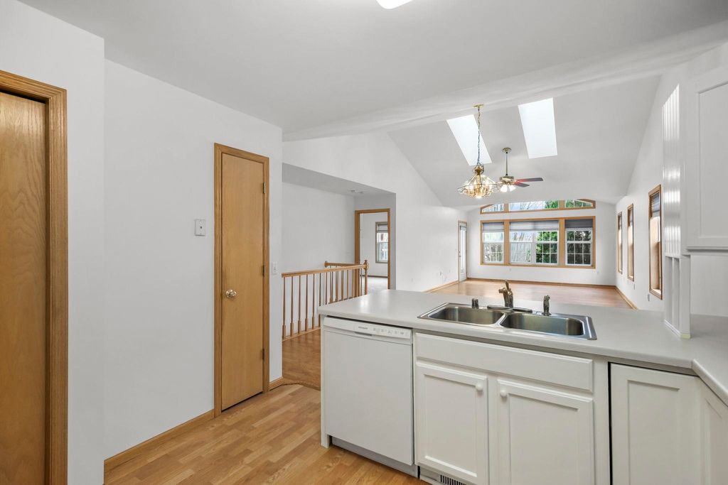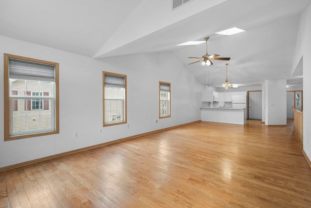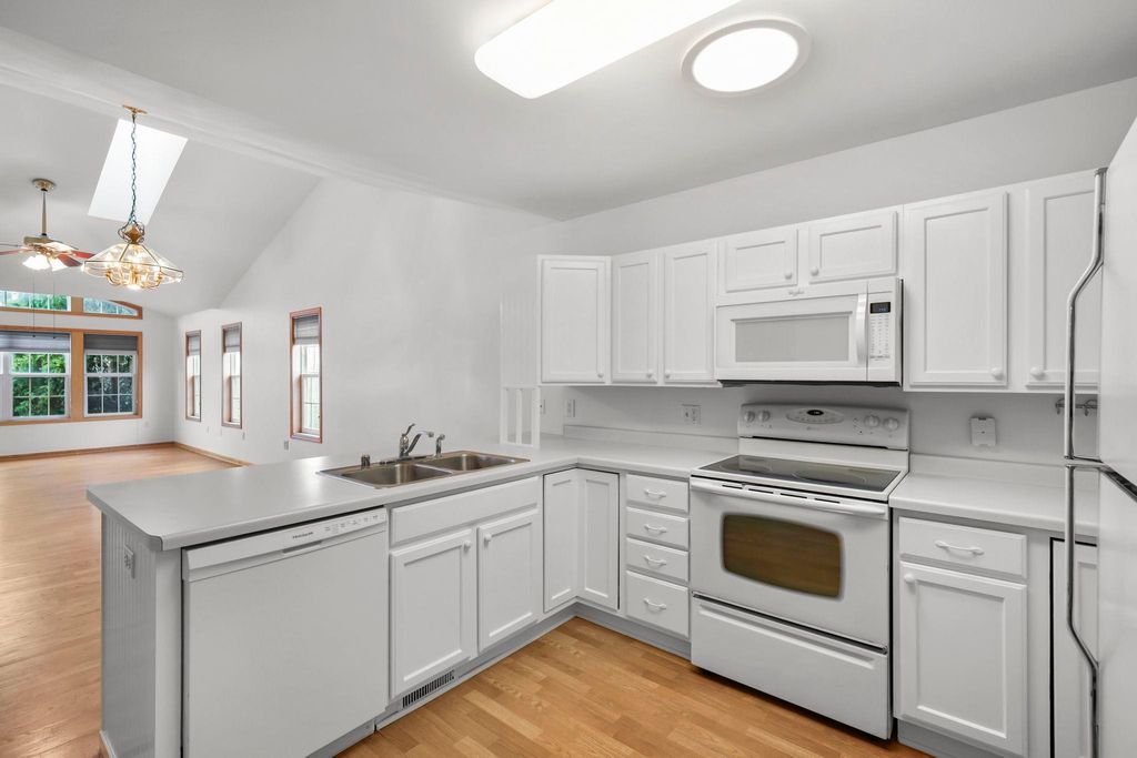 Show 4/16/2026. This bright and spacious 3 Bedroom, 3 Bath ranch-style condo boasts an inviting open concept design with vaulted ceilings and an abundance of natural light enhanced by skylights. Kitchen opens to great dining space and large living room perfect for everyday living and entertaining. Primary suite with large walk-in closet & private bath. Upper-level deck with southern exposure off living room. Lower level offers large family room with fireplace, 3rd Bedroom, full bath, walkout patio, and plenty of storage space. Hardwood oak floors in LR & Dining. Laundry hook-ups in K closet, enabling one floor living.