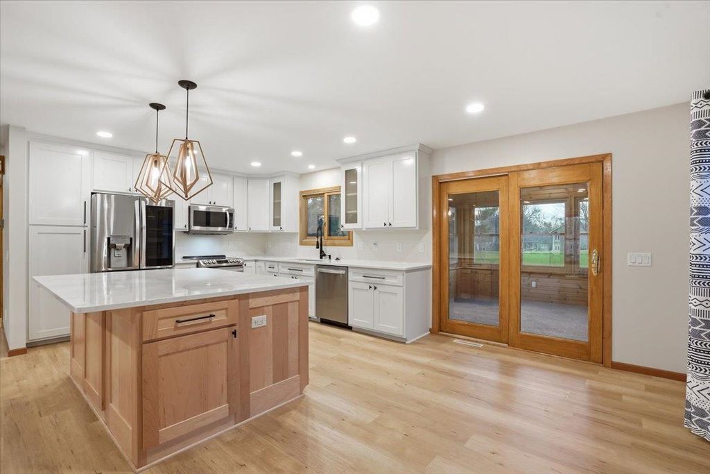 Welcome to this beautifully updated home in a peaceful Waunakee setting, offering space, comfort, and style throughout. The main level shines with a fully remodeled kitchen featuring Amish-built cabinetry, soft-close features, a large island, and modern finishes, all opening to a spacious living area filled with natural light. A cozy sunroom surrounded by windows creates the perfect spot to relax and enjoy views of the expansive yard. The remodeled lower level offers additional living space with a warm, inviting feel and great flexibility. Enjoy an extra-large garage, abundant storage throughout, and a backyard complete with a shed, composite deck, and firepit"”ideal for everyday living and entertaining. Ideally located near parks, trails, and Waunakee schools with low Westport taxes.