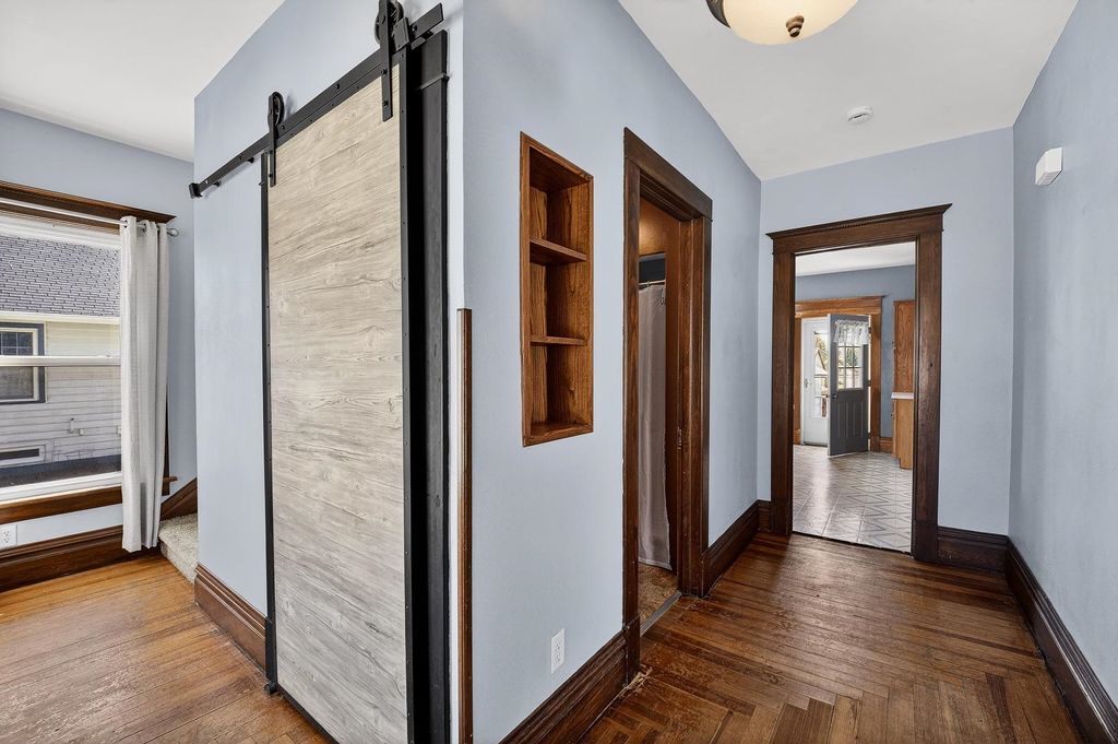 Charming 3-bedroom, 2-bath home ideally located between Monroe's fairgrounds and downtown square. This property blends classic character with modern updates, featuring hardwood floors, original trim, and a spacious kitchen perfect for everyday living or entertaining. Convenient second-floor laundry plus additional hookups in the basement offer flexibility. Enjoy outdoor living on the large south-facing deck overlooking a fenced backyard. A detached 2-car garage provides ample storage. Major updates include a new roof on both the home and garage. Prime location close to shopping, dining, and community events. This move-in-ready home is a must-see!