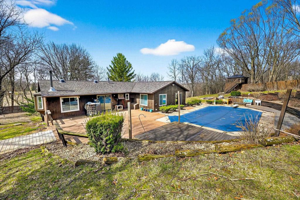 Dreaming of peaceful country living with room to spread out? Nestled on 2 scenic acres, this well-maintained 3-bedroom, 3-bath bi-level home offers the perfect blend of comfort, function, and outdoor enjoyment. Step outside & fall in love with the incredible in-ground pool, surrounded by lush perennials & a spacious composite deck"”an ideal setting for summer entertaining. Inside features a versatile layout with a welcoming LL family room complete with a wet bar. You'll also find a large flex room with a sauna, a convenient laundry area w/an additional bath. The primary suite offers a spa-like atmosphere and private patio doors leading directly to the pool area"”your own personal escape. Car enthusiasts, hobbyists, or anyone needing extra space will appreciate the impressive 30x72 heated shop, equipped w/100-amp electrical service. spacious 2-car attached garage rounds out this property. Enjoy the freedom of country living while still having all the amenities you need.