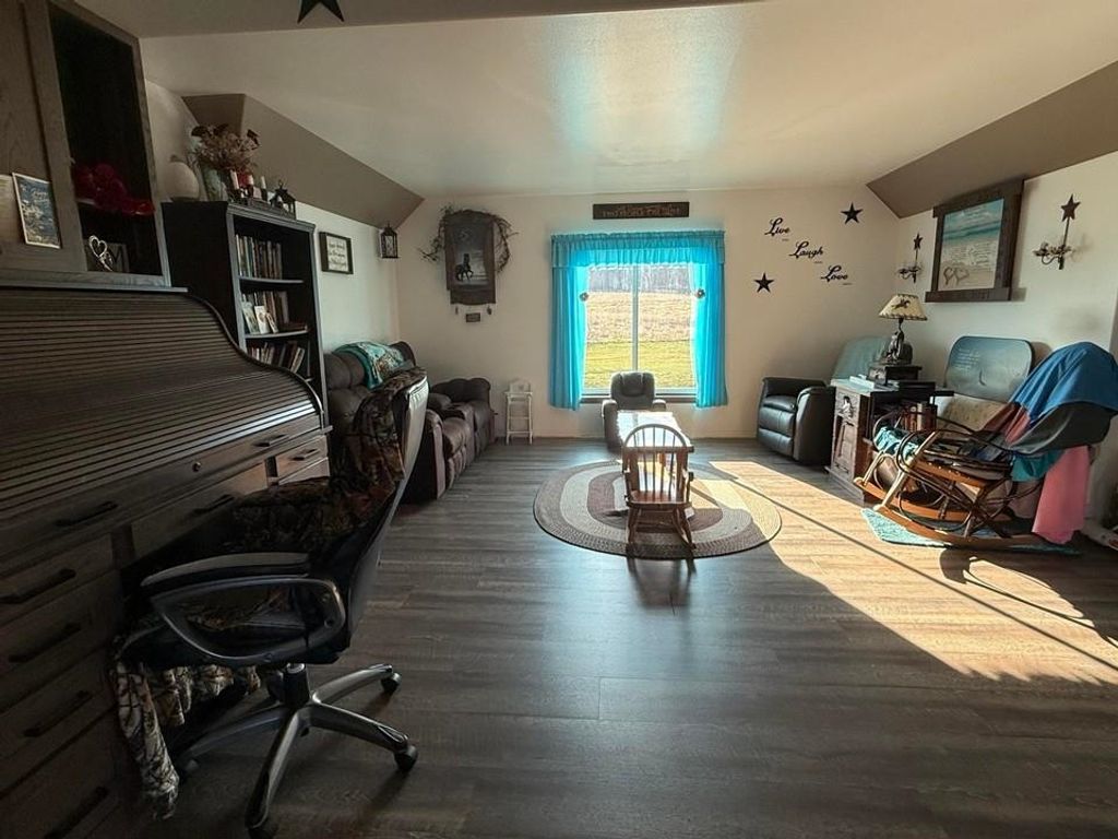Built in 2022 this unique 1 bedroom, 1 bath home is perfectly situated above a 4 car garage and is set on 29.99 acres of woods, pasture and open fields. Enjoy the peace and privacy of country living with a long driveway leading to this one of a kind property. Inside you will find comfortable infloor heating and a warm and inviting living space designed to take in the stunning surrounds. Step outside onto the upper level deck to soak in the views. Whether your looking for a full time home, weekend getaway or property to with room to roam this one offers them all. Electrical will be installed and operational with an accepted offer. (Internet will also be installed)