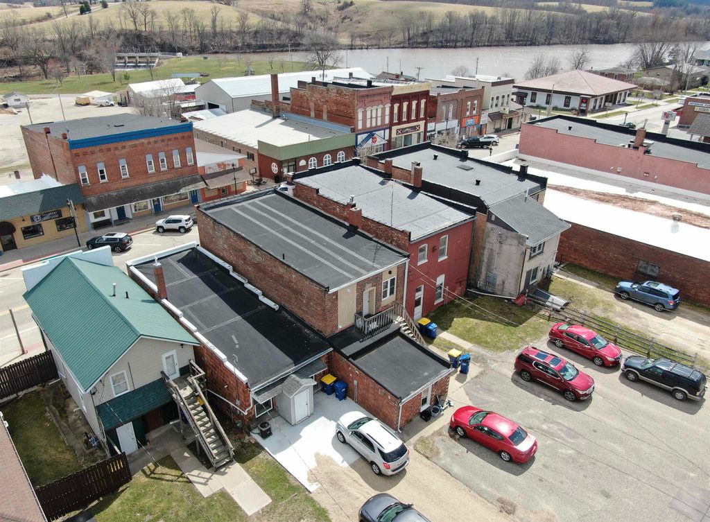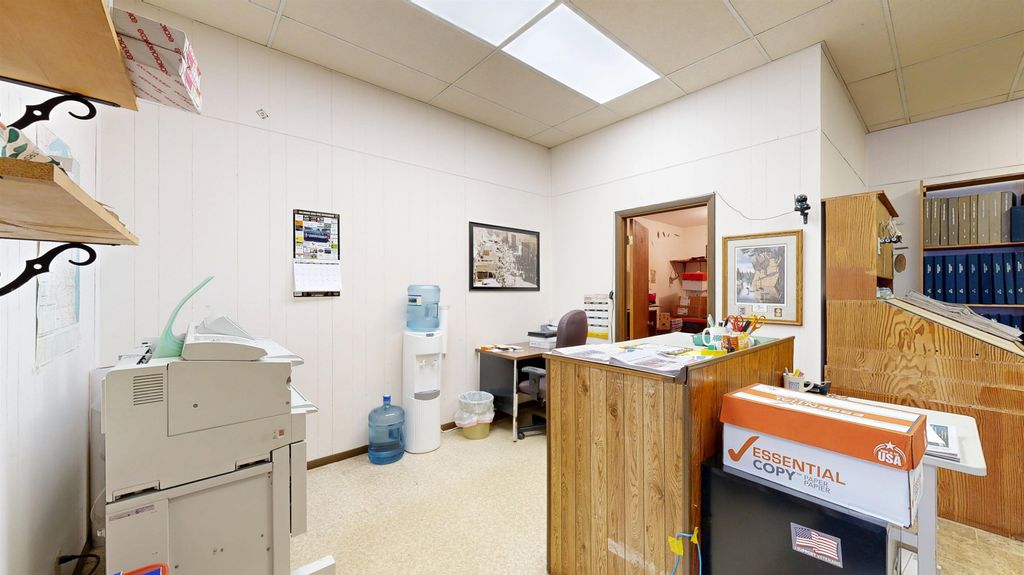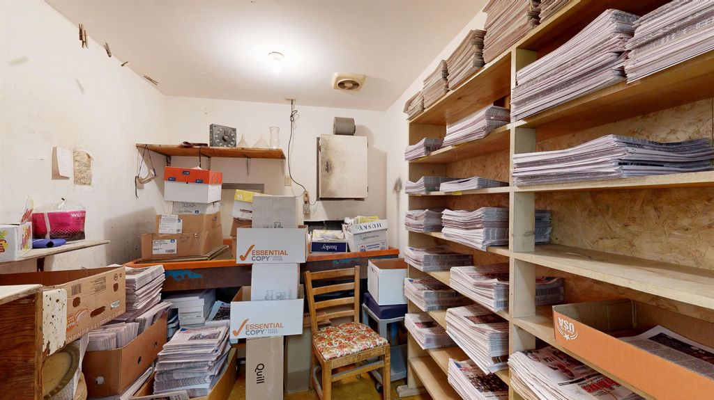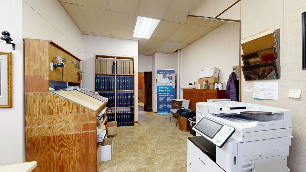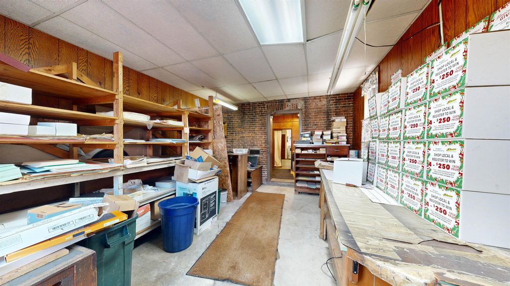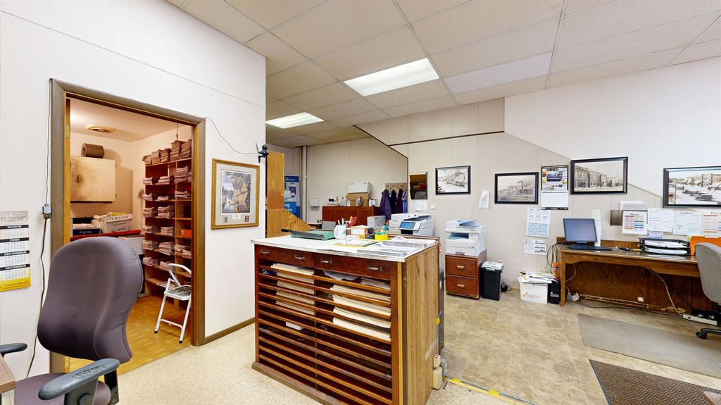 Versatile commercial opportunity! This property offers both business and residential potential under one roof. The main level is currently utilized as an office space for the local newspaper and features a functional layout including a private office, spacious main work area, large storage closet, two generously sized storage rooms, and a bathroom. An expansive unfinished basement provides excellent additional storage options. Above the commercial space, you'll find a nicely sized apartment with its own private exterior entrances, both front and rear, offering convenience and separation for tenants. The upper unit includes two bedrooms, one full bathroom, a kitchen with room for a dining table, and a dedicated laundry area. Off-street parking accessible from the rear, accommodates both tenant and employee needs. Whether you're looking to expand your business footprint, invest in rental income, or combine work and living space, this property presents flexible opportunities.