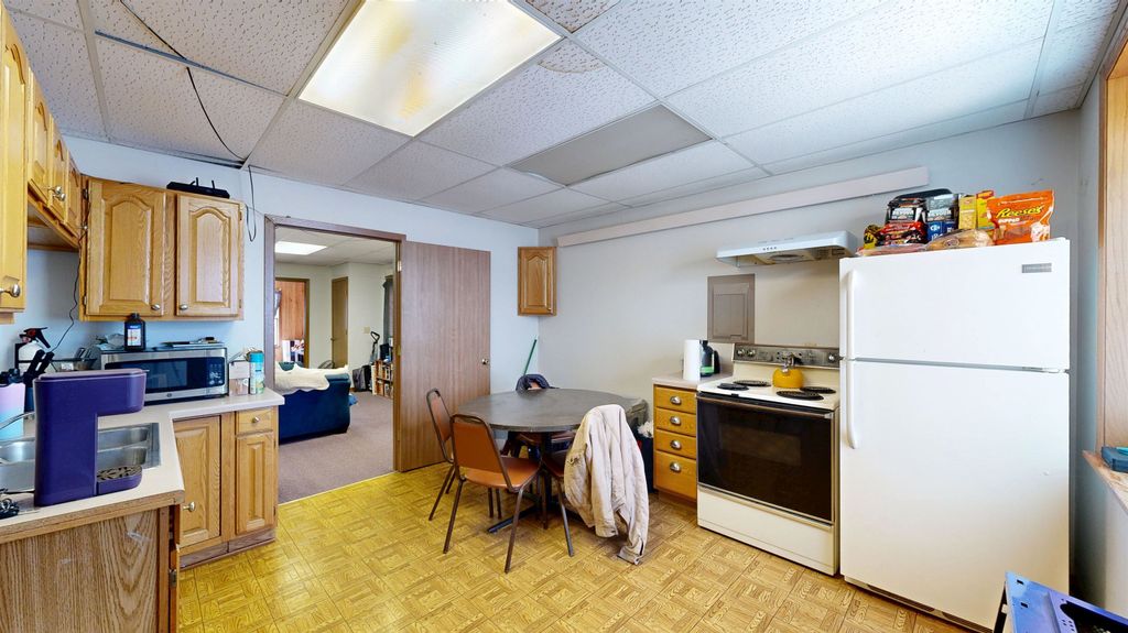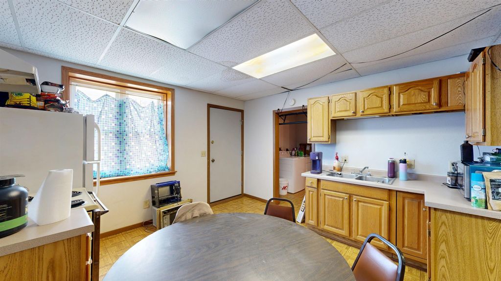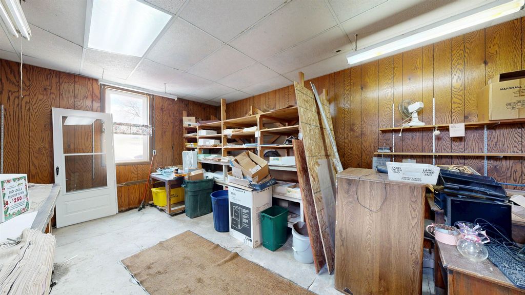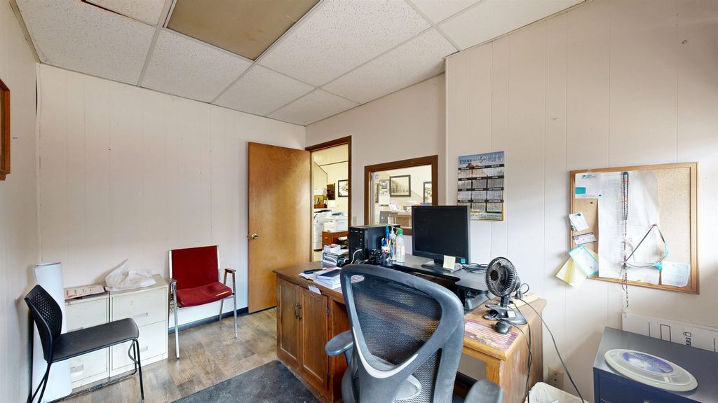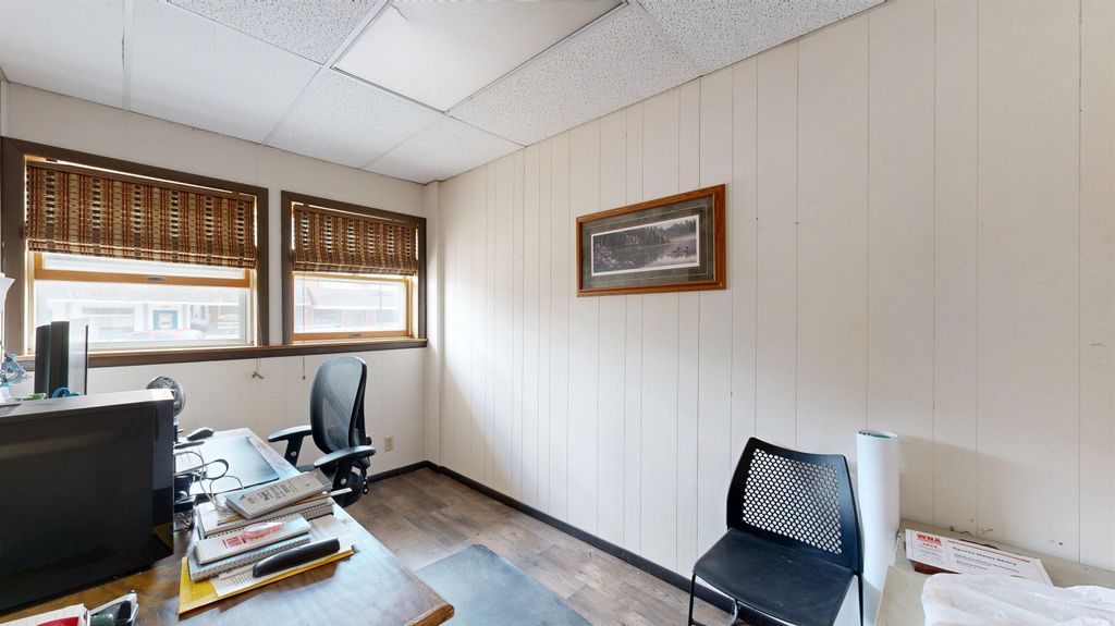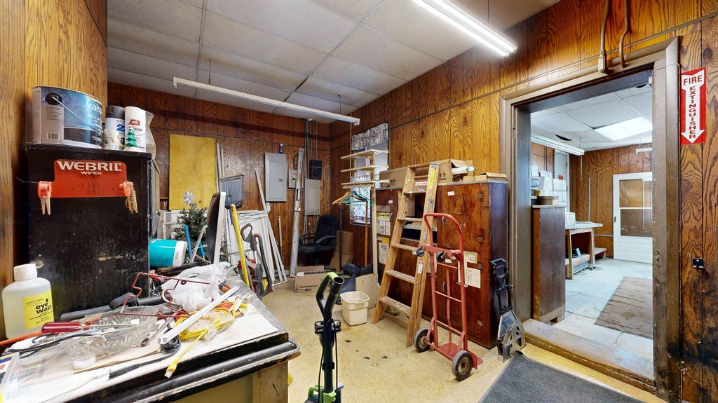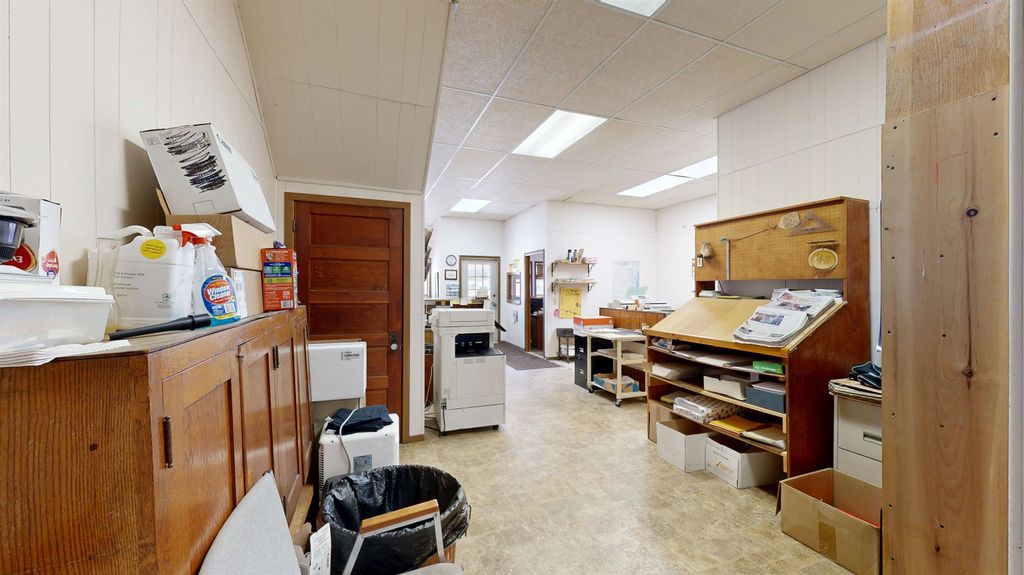 Versatile commercial opportunity! This property offers both business and residential potential under one roof. The main level is currently utilized as an office space for the local newspaper and features a functional layout including a private office, spacious main work area, large storage closet, two generously sized storage rooms, and a bathroom. An expansive unfinished basement provides excellent additional storage options. Above the commercial space, you'll find a nicely sized apartment with its own private exterior entrances, both front and rear, offering convenience and separation for tenants. The upper unit includes two bedrooms, one full bathroom, a kitchen with room for a dining table, and a dedicated laundry area. Off-street parking accessible from the rear, accommodates both tenant and employee needs. Whether you're looking to expand your business footprint, invest in rental income, or combine work and living space, this property presents flexible opportunities.