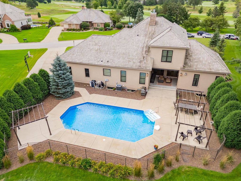 Set within the prestigious Bristlecone Pines neighborhood, this stunning custom-built home offers 6 bedrooms, 5.5 baths, and over 4,800 SF of refined, intentional living. The main level boasts 10-ft ceilings, a chef's kitchen with expansive island, stunning living room with a coffered ceilings + stone fireplace, and family room equally suited for relaxed evenings or formal dining. Luxurious owner's suite with soaking tub, shower, expansive walk in closet and main level laundry, along with a private office and mudroom complete the first floor. Upstairs features 2 ensuite bedrooms + versatile flex room while the finished lower level offers a spacious rec room, 3 additional bedrooms + 2 full baths providing ample space for everyone and versatility for work, recreation or hosting. Outside, the stunning in-ground pool and generous grounds create a private backyard retreat, while the 4-car garage provides exceptional storage and functionality. Welcome to a home built for a life well lived.