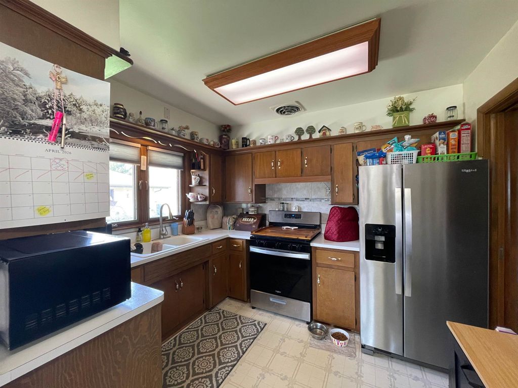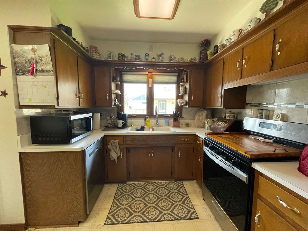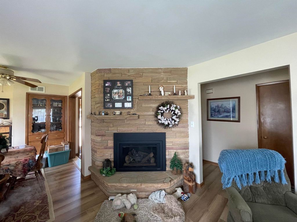 Welcome home to this beautiful, Lannon Stone exterior home, set on a large corner lot with detached two car garage. Living here is easy with everything you need on the main level. Three generous bedrooms, one bath with laundry, open dining room with bay window and functional kitchen with new appliances. Enjoy cool nights with a gas burning fireplace in the open concept living room. Roof, furnace, ac and water heater are newer. Full basement with workbench and built ins for storage and flex space. Close proximity to parks, walking trails, schools, and shopping. Don't delay, this one won't last long.