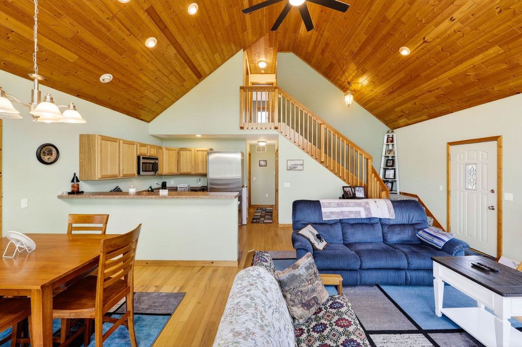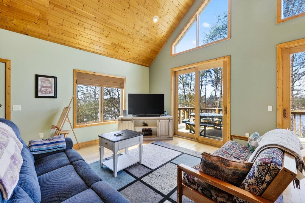 If your ideal life involves the smell of a campfire and the sight of a shimmering lake, you've found your match. This home balances comfort and style with an airy open layout and soaring ceilings that capture evey bit of natural light, while framing stunning lake views. Retreat to your main-floor suite at the end of the day, or head downstairs to your personal bar for a nightcap. From the deck to the shoreline, every inch of this property is designed for making memories.