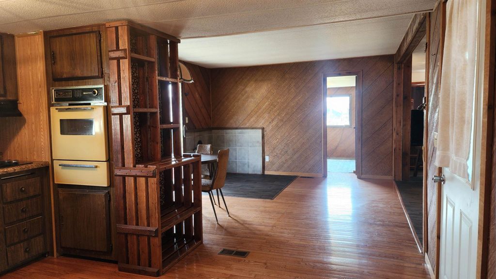 Priced at $157,500, this 5-bedroom, 1 1/2 bath manufactured home sits on 1.8 acres and offers space, flexibility, and excellent outbuildings. With approximately 1,548 square feet and a large addition, the layout provides for family, guests, or home office needs. Interior features include wood or simulated wood flooring and comfortable living areas. The property includes two detached 26x30 garages and a workshop, ideal for storage, vehicles, or projects. Enjoy the privacy and potential of the spacious lot along with a private well and septic system. Great opportunity for buyers seeking space, utility, and value!