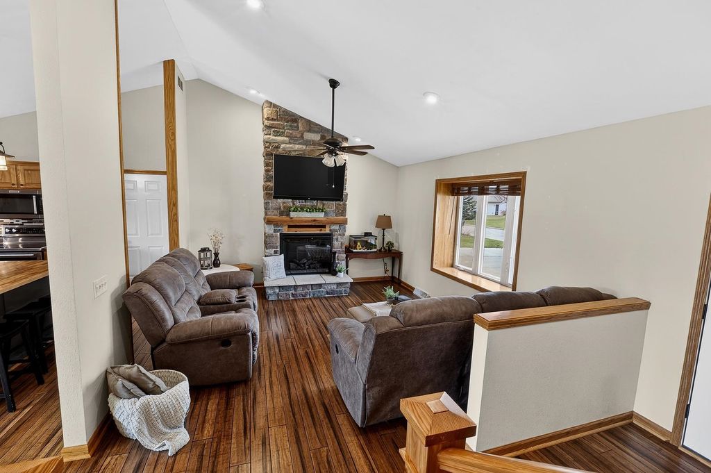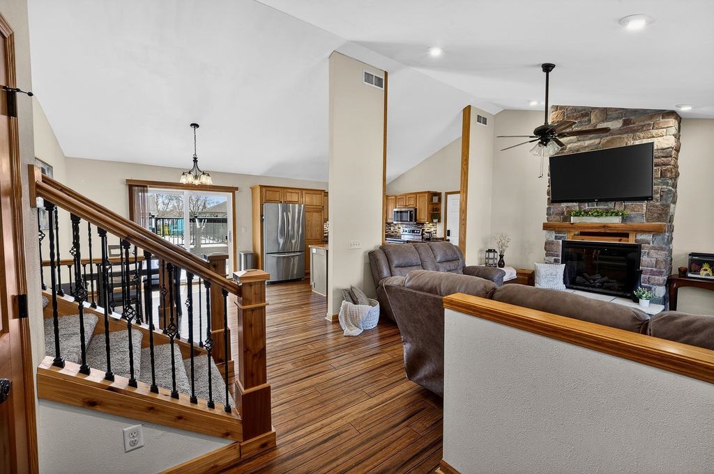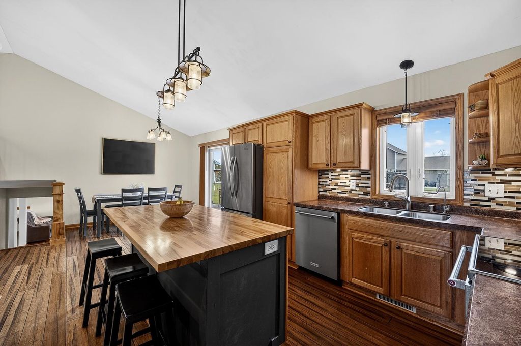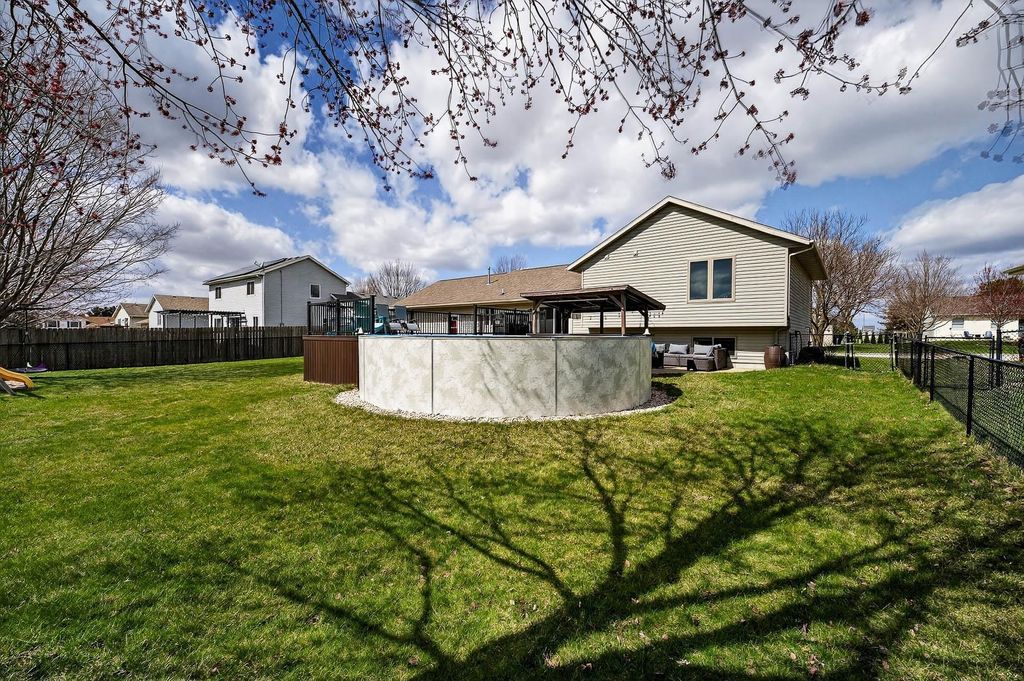Beautifully maintained tri-level on a quiet cul-de-sac in Belleville. This 3-bedroom, 2.5 bath home features bamboo hardwood floors throughout, vaulted ceilings, and a bright, open main living area. The lower level with a wet bar and a partially finished basement offers great potential to make the space your own. Enjoy the convenience of a heated 2-car garage with epoxy floors and a drain. Outside, the fully fenced backyard includes an above-ground pool and garden, perfect for outdoor living. Move-in ready and full of possibilities. Sq. ft. and room DIMS are approximate; buyer to verify if important.