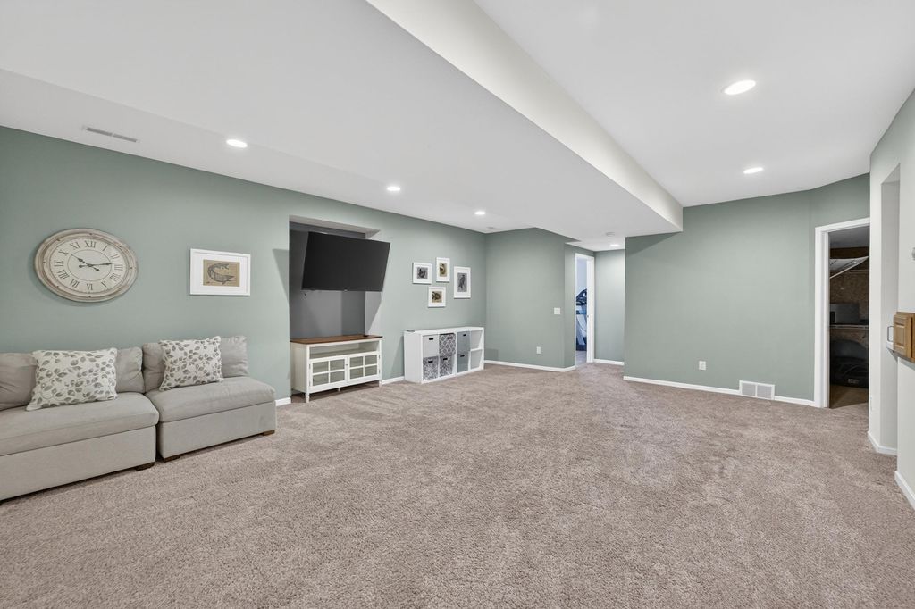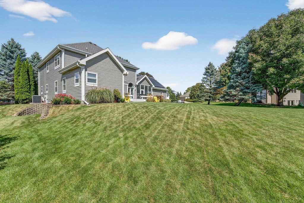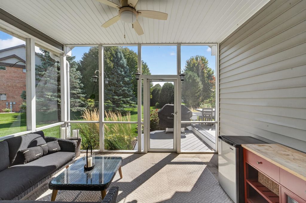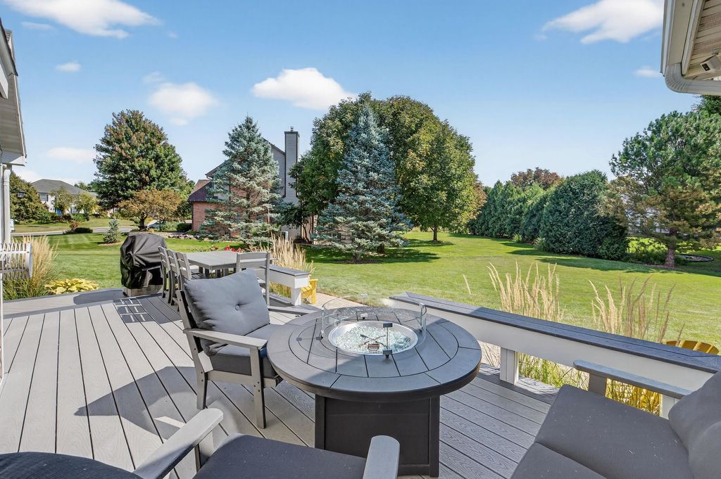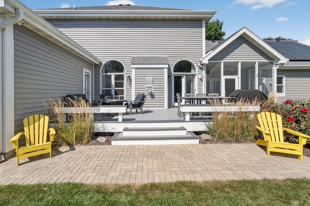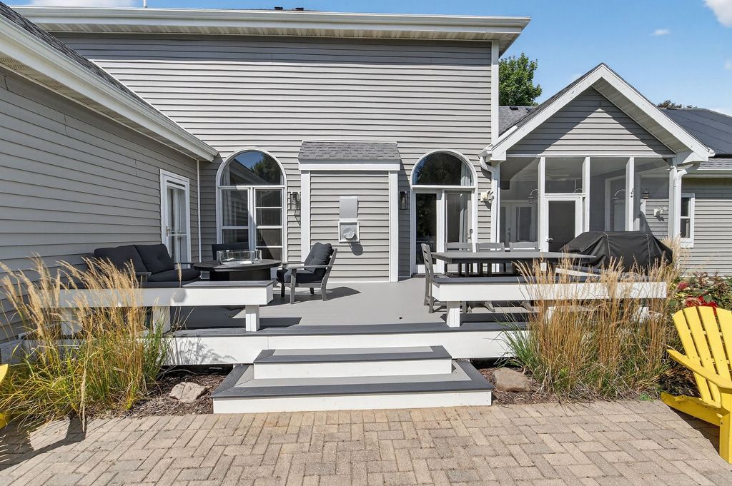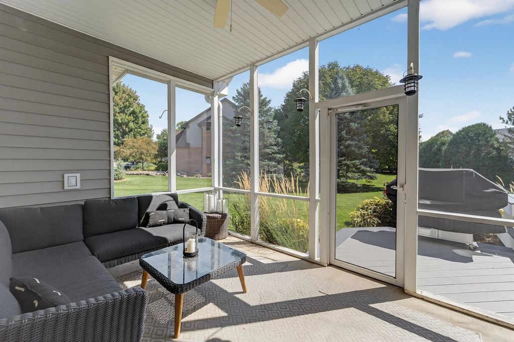 Spacious and inviting home with great living and entertaining spaces! The main level features a bright living room with vaulted ceilings and gas fireplace, formal dining room, and a kitchen with black stainless steel appliances, quartz countertops, and an island with breakfast bar. Two bedrooms on the main level include the owner's suite with walk-in closet and private ensuite with dual sinks, jetted tub, and walk-in shower. The exposed lower level offers a family room, rec room, exercise space, cedar closet, and full bath. Enjoy the screened porch and Trex deck, plus a backyard with basketball hoop, Ring doorbell, and security cameras. Attached 3-car garage with lower-level access.