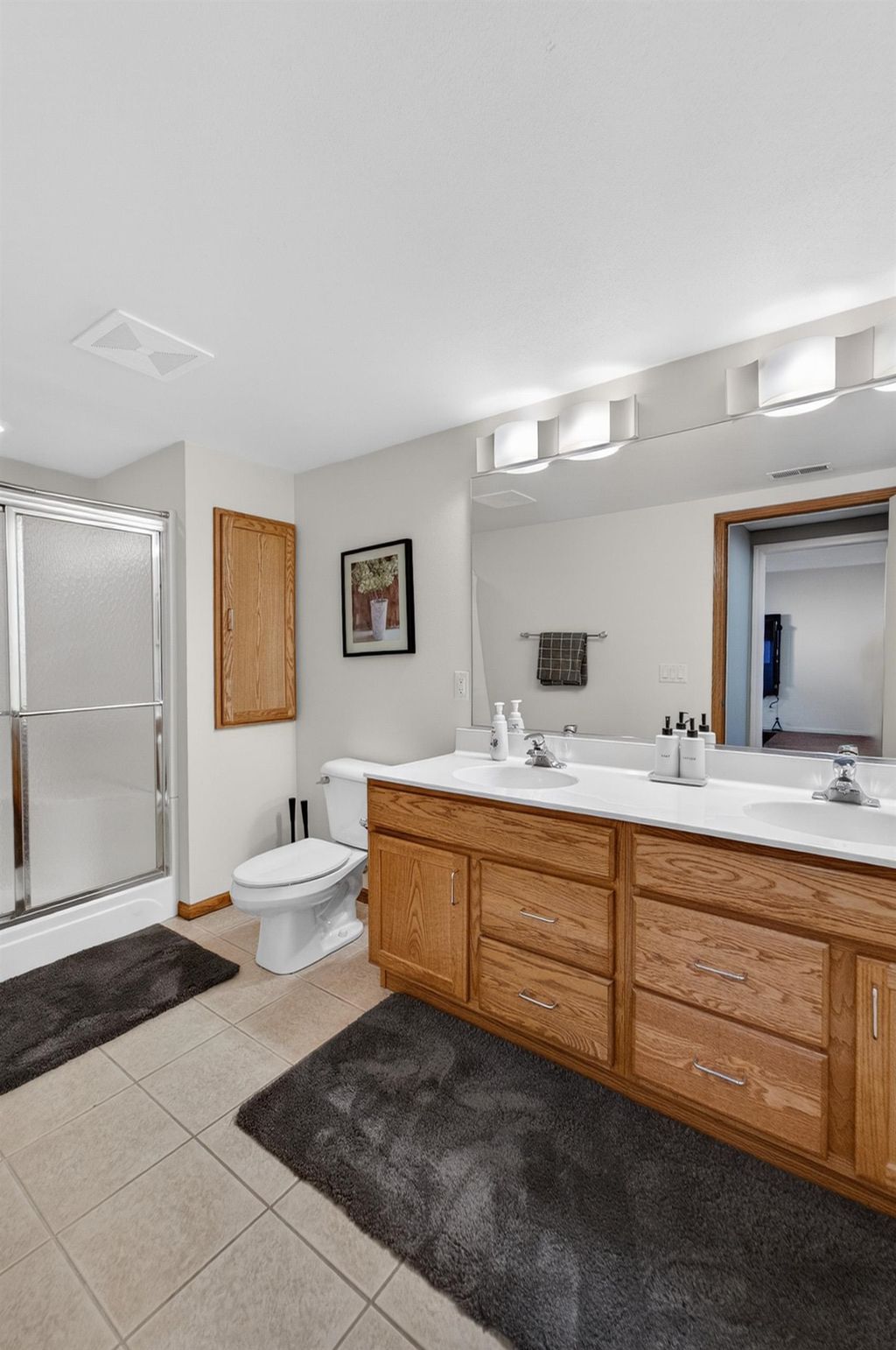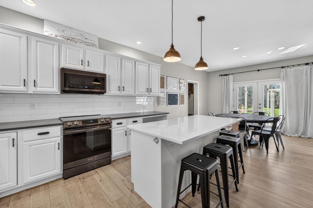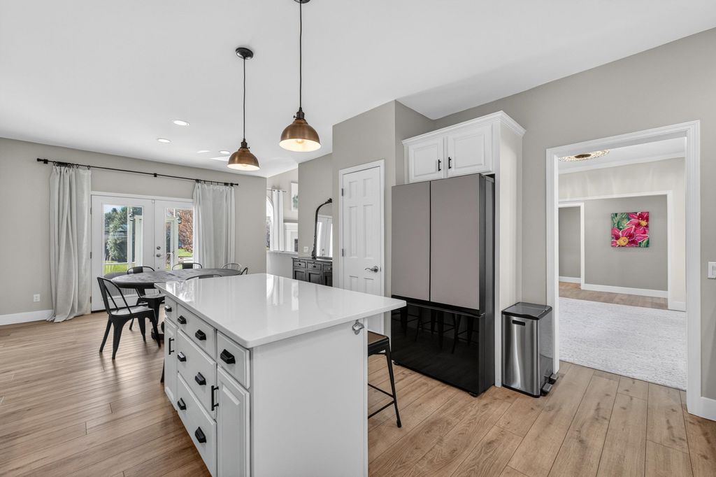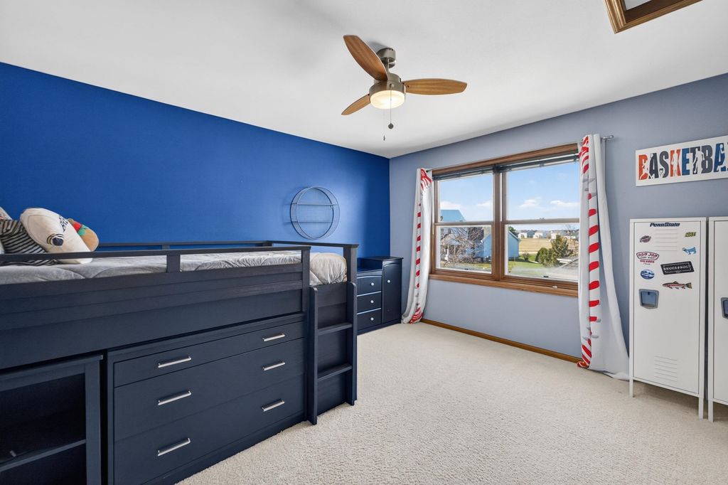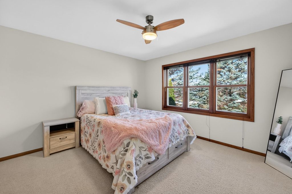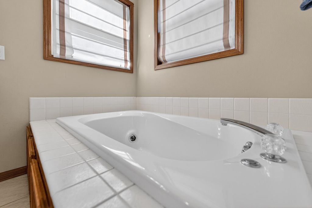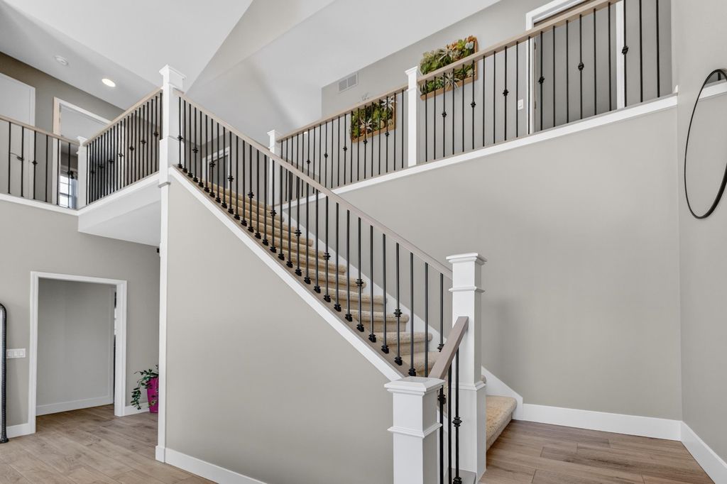 Spacious and inviting home with great living and entertaining spaces! The main level features a bright living room with vaulted ceilings and gas fireplace, formal dining room, and a kitchen with black stainless steel appliances, quartz countertops, and an island with breakfast bar. Two bedrooms on the main level include the owner's suite with walk-in closet and private ensuite with dual sinks, jetted tub, and walk-in shower. The exposed lower level offers a family room, rec room, exercise space, cedar closet, and full bath. Enjoy the screened porch and Trex deck, plus a backyard with basketball hoop, Ring doorbell, and security cameras. Attached 3-car garage with lower-level access.