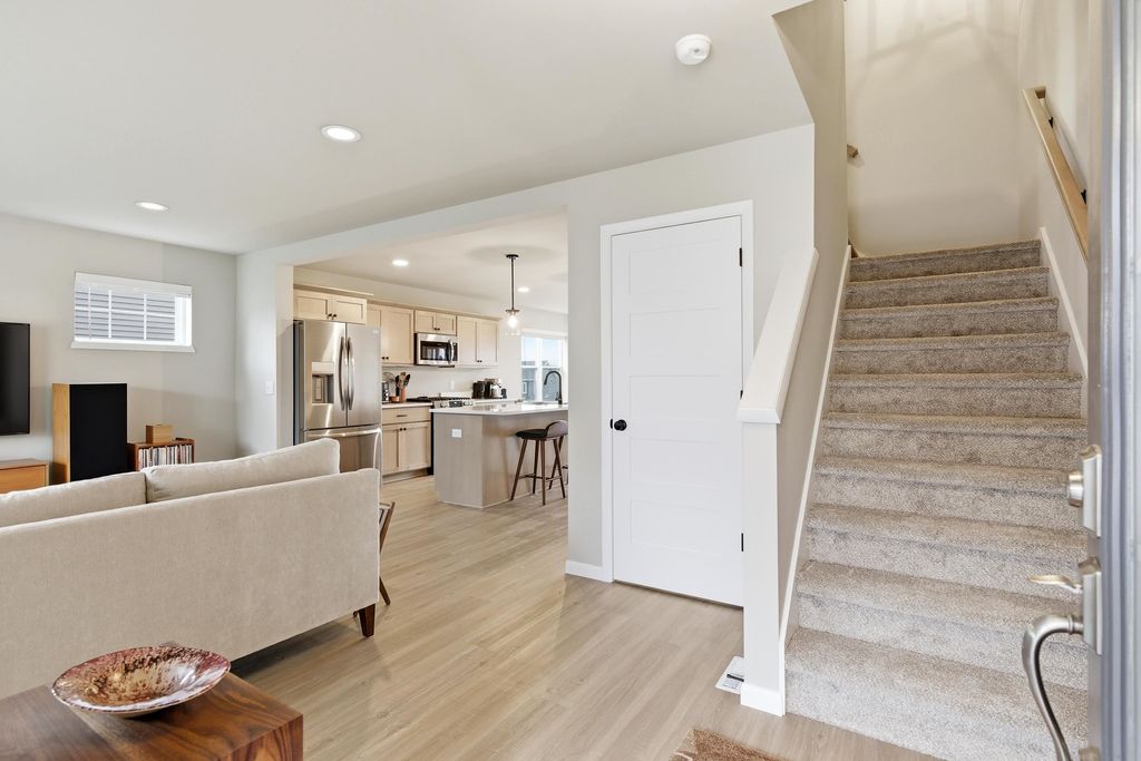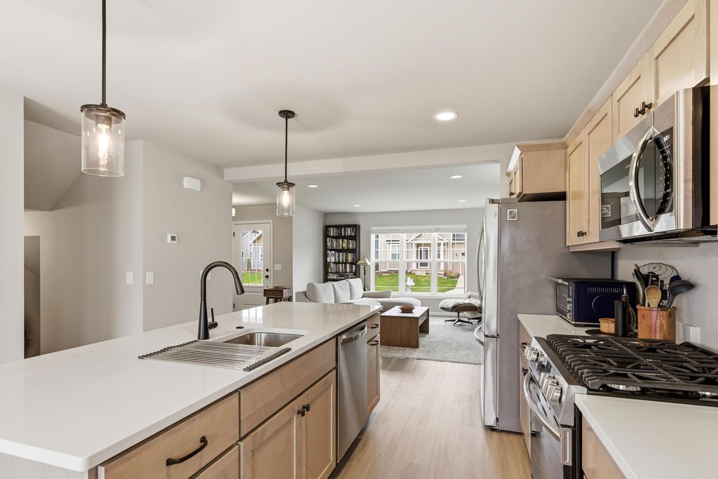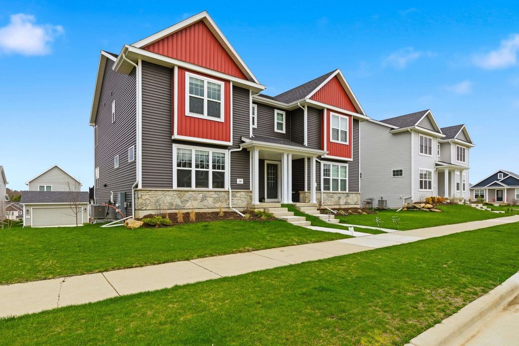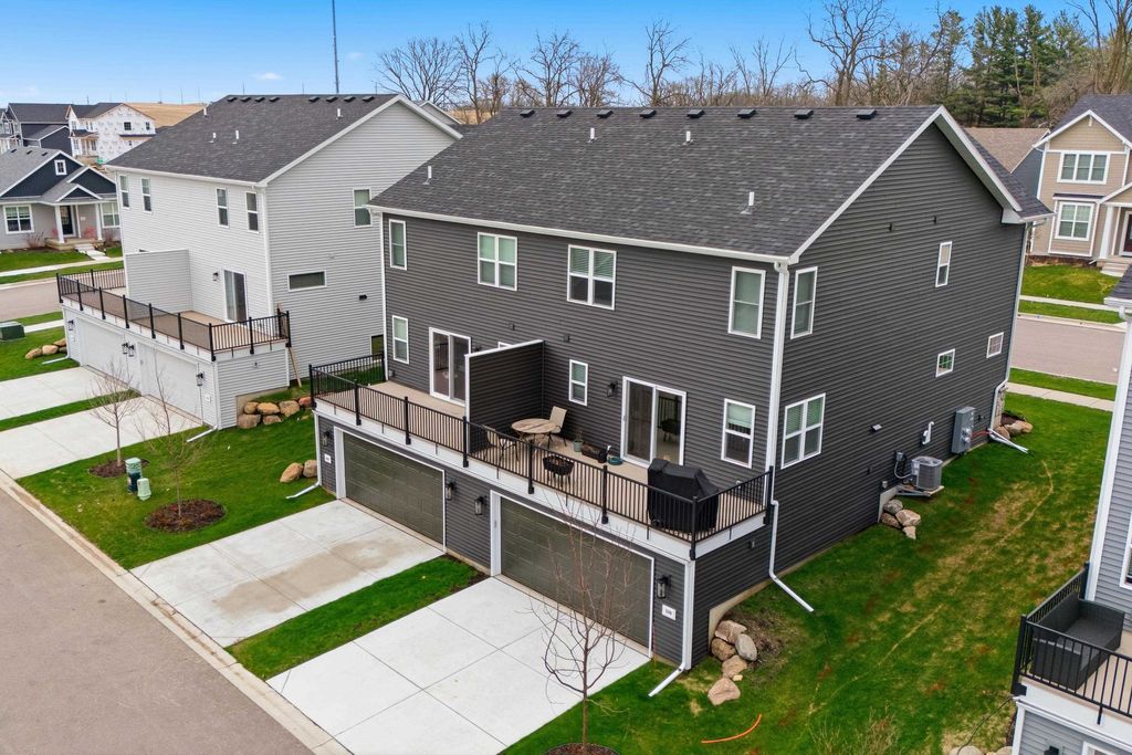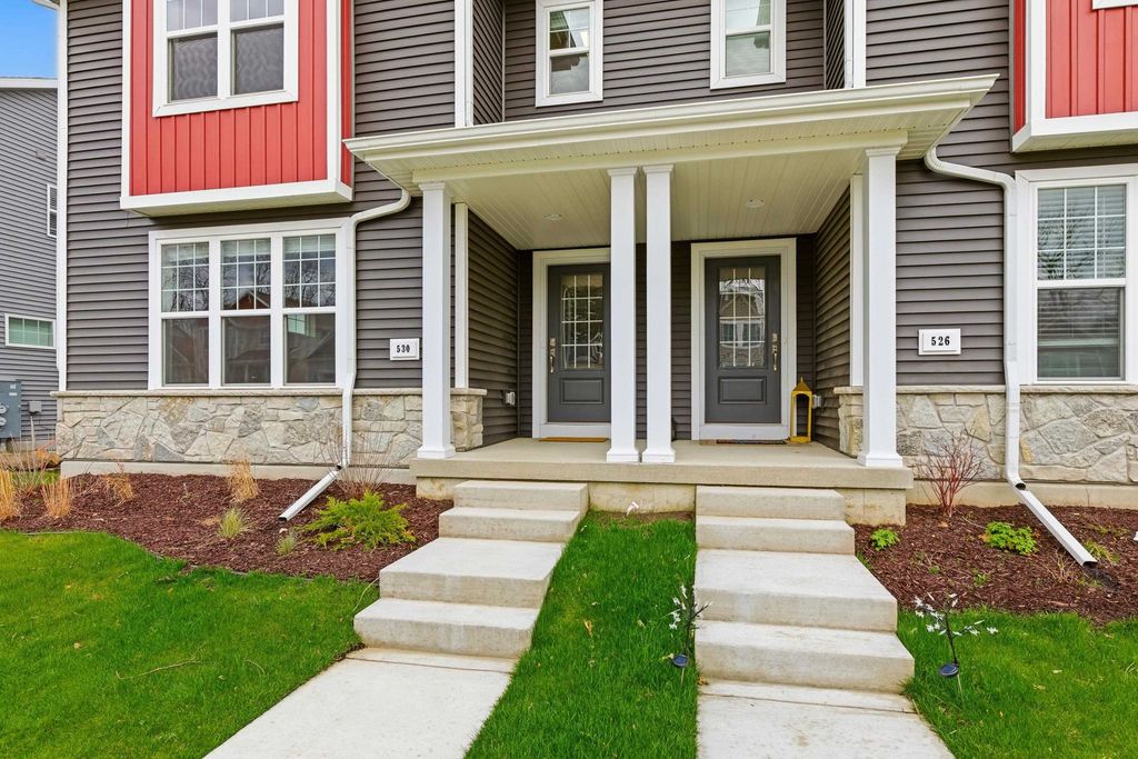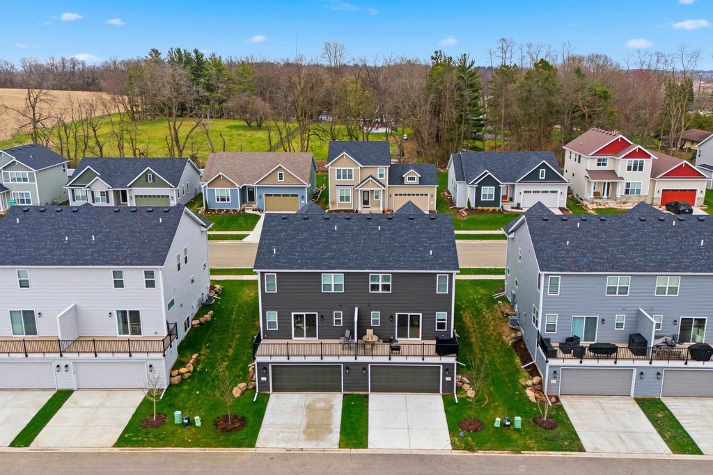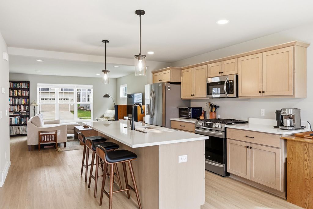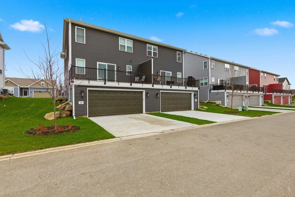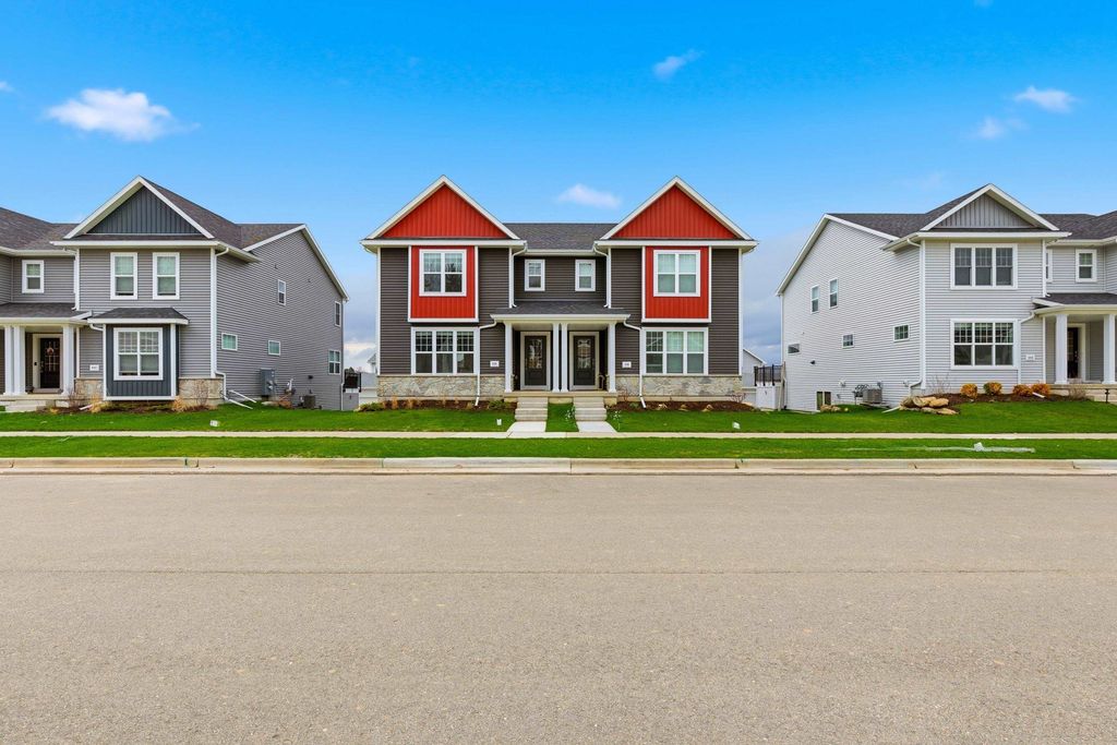 Showings start 4/16. Newly completed construction with a thoughtfully designed open-concept layout offering 3 bedrooms and 2.5 baths. Seller's change of plans creates a rare opportunity to own one of the last remaining twin homes in the neighborhood at a great price! The main level features a bright kitchen with center island, quartz countertops, custom locally crafted cabinetry, and seamless flow into dining and living spaces. Main-level laundry and half bath add everyday ease. All bedrooms are upstairs, including a spacious primary suite with walk-in closet and private bath, plus two additional bedrooms and full bath. The unfinished lower level is stubbed for a future bath and offers great potential for added living space. Enjoy a maintenance-free deck, smart home lighting, and a 2-car garage. Kitchen is equipped for both gas and electric range options. Near parks, bus line, and west side amenities. Builder warranty transfers.
