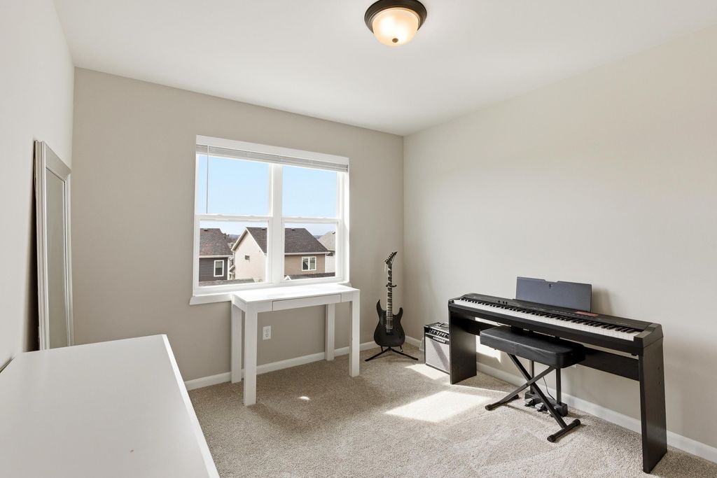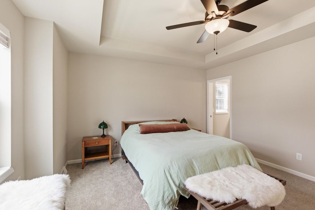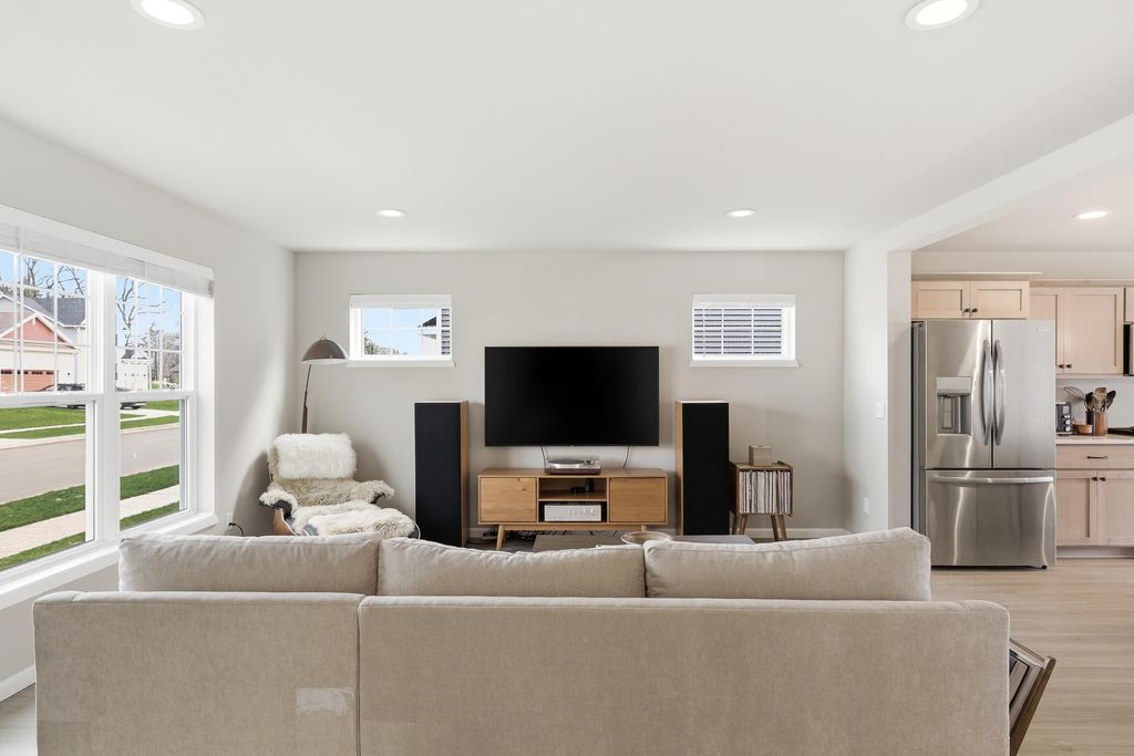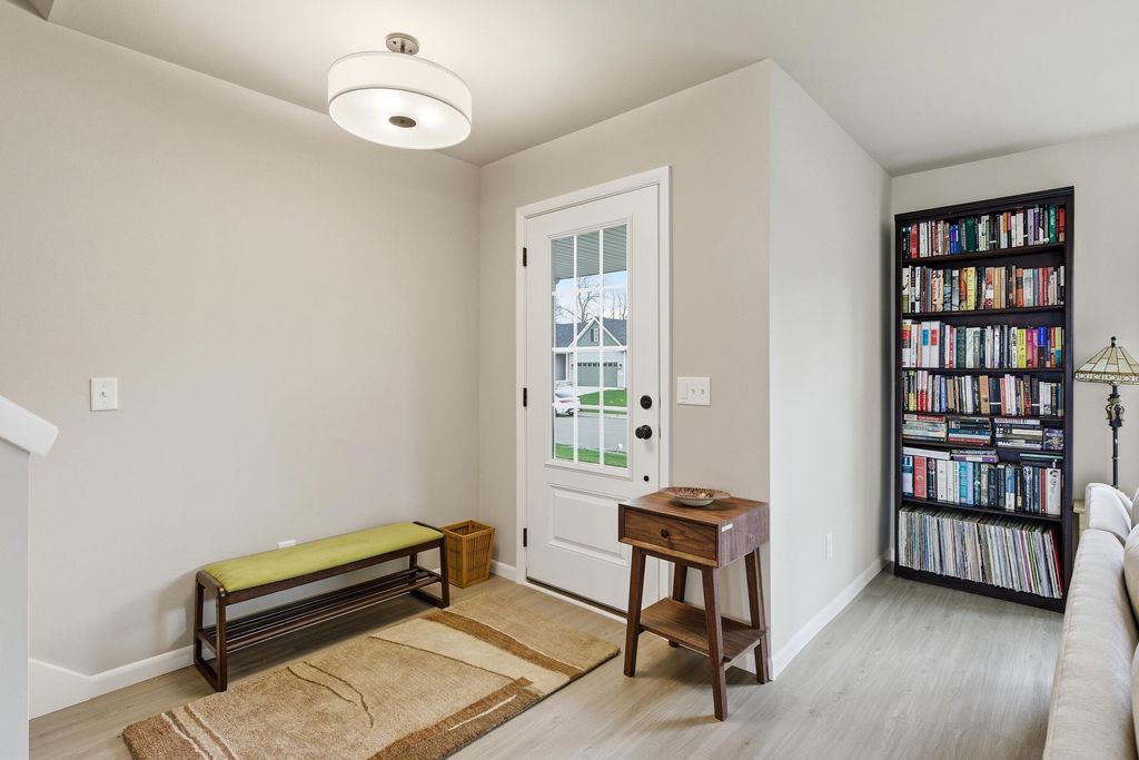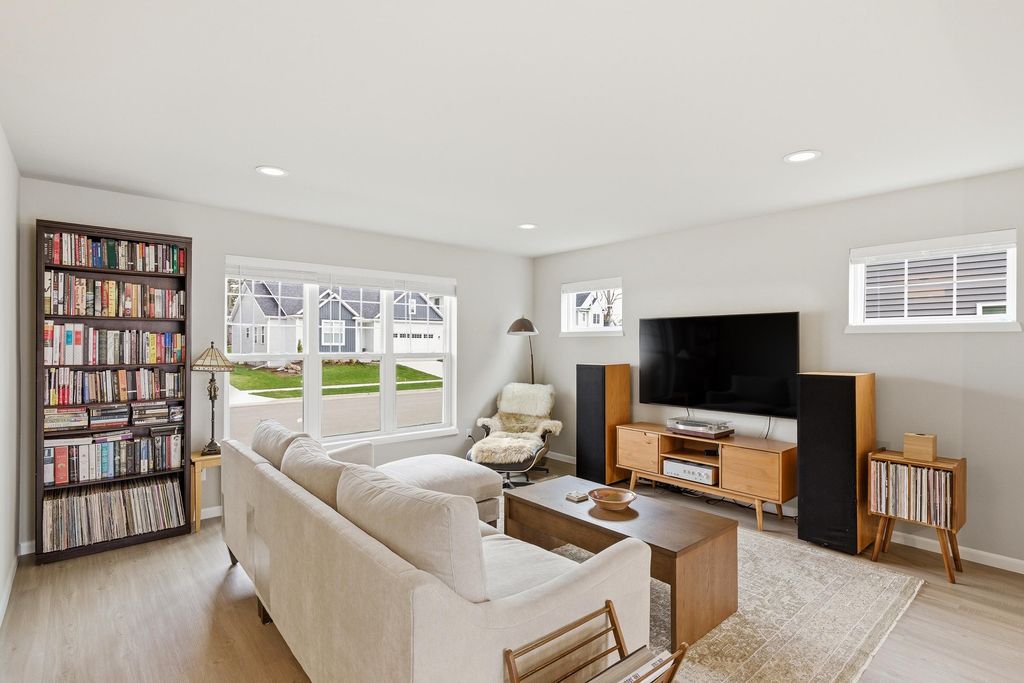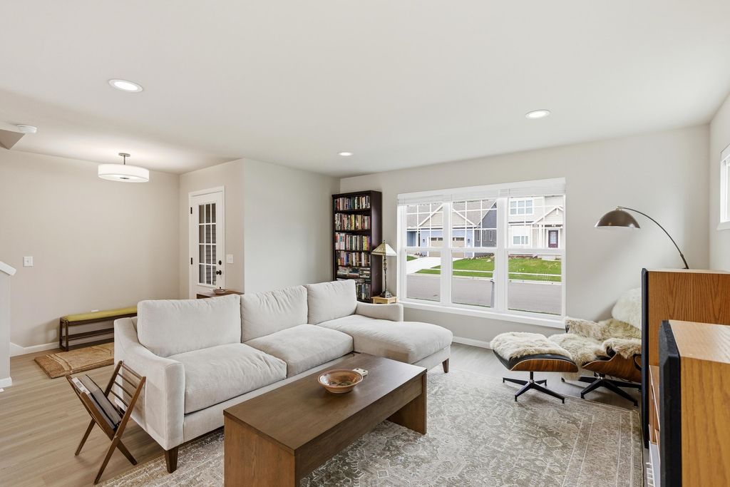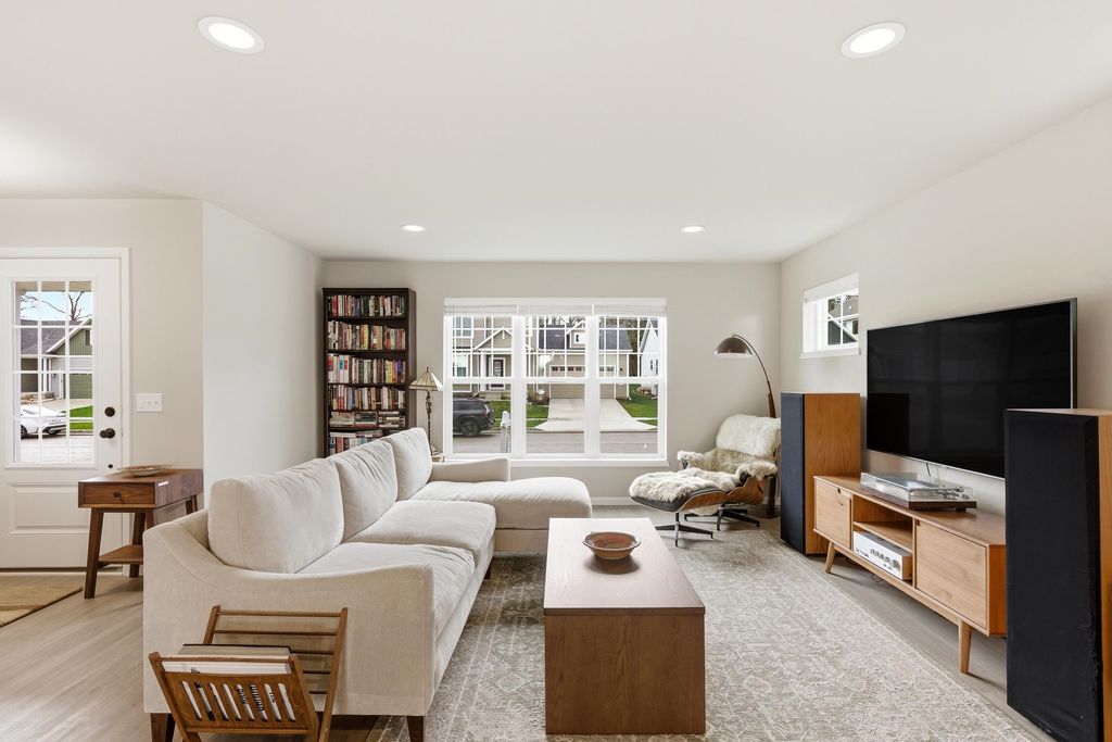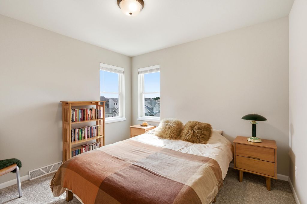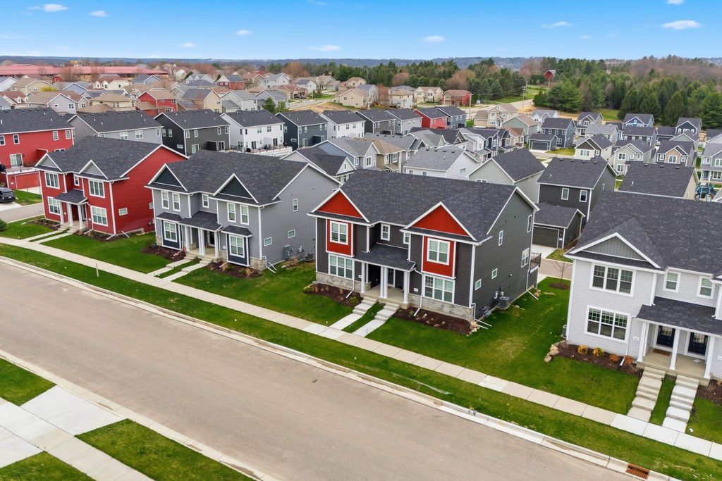 Showings start 4/16. Newly completed construction with a thoughtfully designed open-concept layout offering 3 bedrooms and 2.5 baths. Seller's change of plans creates a rare opportunity to own one of the last remaining twin homes in the neighborhood at a great price! The main level features a bright kitchen with center island, quartz countertops, custom locally crafted cabinetry, and seamless flow into dining and living spaces. Main-level laundry and half bath add everyday ease. All bedrooms are upstairs, including a spacious primary suite with walk-in closet and private bath, plus two additional bedrooms and full bath. The unfinished lower level is stubbed for a future bath and offers great potential for added living space. Enjoy a maintenance-free deck, smart home lighting, and a 2-car garage. Kitchen is equipped for both gas and electric range options. Near parks, bus line, and west side amenities. Builder warranty transfers.