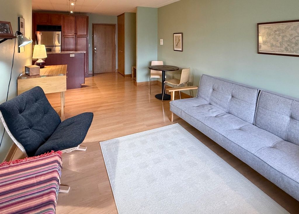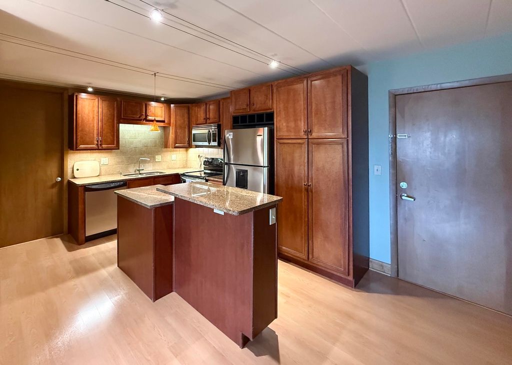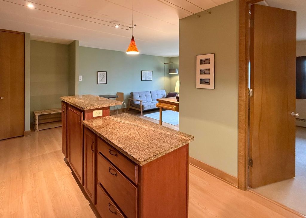 NO SHOWINGS UNTIL OPEN HOUSE FRIDAY 4/17/26 at 5:00pm. Rare opportunity to own an impeccable Marshall Park Condominium! An entry foyer with coat closet welcomes you. The open floor plan offers a large living area, space for your dining table and a beautifully upgraded kitchen. The chef will appreciate the granite counters and island, cherry stained cabinets and stainless steel double sink. The bedroom has a wall of closets with abundant storage. Bathroom with tile floor and tiled tub/shower. In-unit washer dryer for ultimate convenience. There is a dedicated storage unit down the hall and convenient access to the underground parking garage is just around the corner. Step outside and enjoy Marshall Park and access to Lake Mendota right next door. Fabulous location on a bus route and just minutes from shopping, dining and recreation. Don't delay!