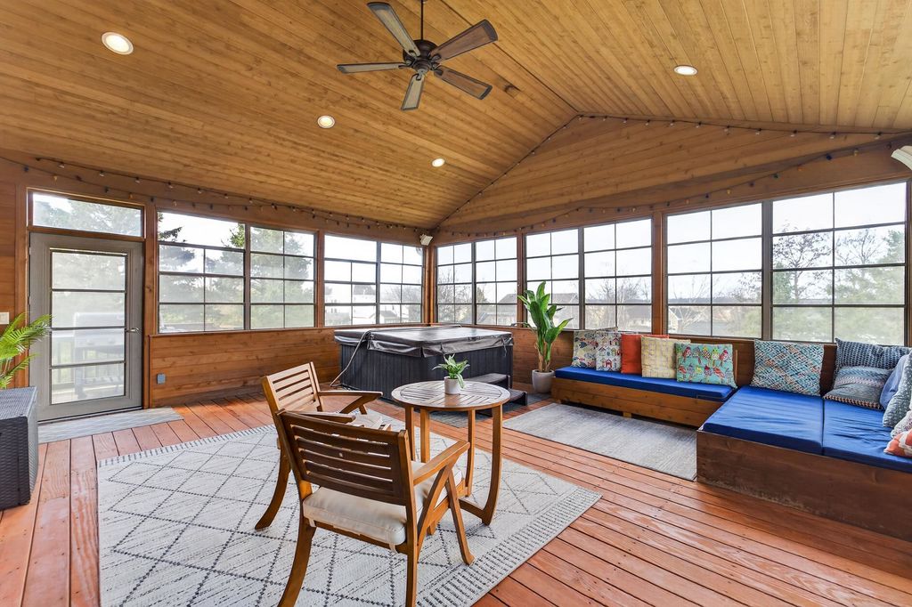 Tucked into the sought-after Hawks Landing neighborhood, this spacious five-bedroom home offers an opportunity for buyers looking to add their personal touch in one of Madison's most desirable communities. Large windows fill the main living area with natural light, and the well-designed layout gives you the flexibility to make each space your own. The primary suite provides a comfortable retreat with a walk-in closet and an ensuite bath, while two additional full baths serve the remaining four bedrooms with ease. A walk-in pantry and dedicated laundry mud room keep daily life running smoothly, and ample storage throughout means there's a place for everything. The fully finished walk-out basement opens to a stamped concrete patio with a fire pit; a fantastic backdrop for outdoor gatherings no matter the season. Upstairs, a screened porch complete with a hot tub offers a private escape you'll use year-round. Spacious, well-located, and full of potential; Hawks Landing, opportunities like