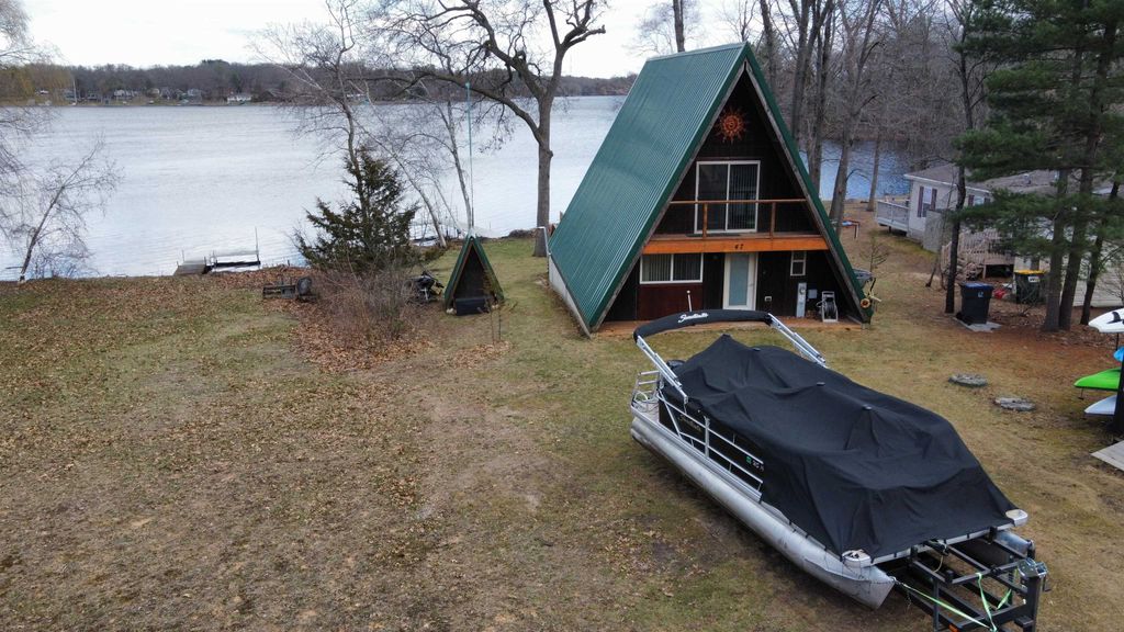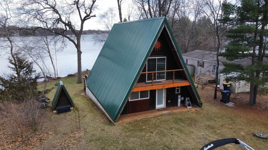 Embrace lake life in this move-in-ready A-frame cottage, perfectly positioned on the shores of Montello Lake. Built in 2012, this 1100 sq. ft. home is designed for both relaxation and effortless summer entertaining. Sold fully furnished, all you have to do is turn the key and retreat to your new haven. Features a cozy interior with 2 bedrooms, 1 bath, new pellet stove, laundry in unit, new tankless water heater w/ in floor radiant heat and deck overlooking the lake. Storage shed included for storage of your outdoor items. Just bring your fishing poles! Located on a very quiet road, yet only a very short drive to all of the local establishments and shopping. Whether you're looking for a peaceful weekend getaway or a permanent lakeside residence, this cottage offers the perfect blend of modern comfort and classic Wisconsin charm. Room sizes are approximate, buyer to verify if important.