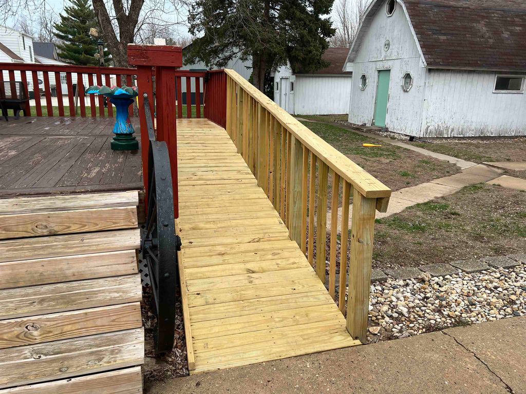 Selling "AS IS". ONE LEVEL LIVING. Everything is on the main floor of this well-maintained home in the middle if Muscoda. Two bedrooms, 1 1/2 baths, laundry, large living and dining rooms, galley kitchen, front porch, back deck with ramp for easy access, huge 2-car detached garage with upper loft for storage or she shed/man cave. There are also 2 additional storage sheds for yard equipment and toys. The buildings are situated to the south side of the lot leaving plenty of yard area for playing football with the kids, soccer, volleyball, whatever your pleasure.