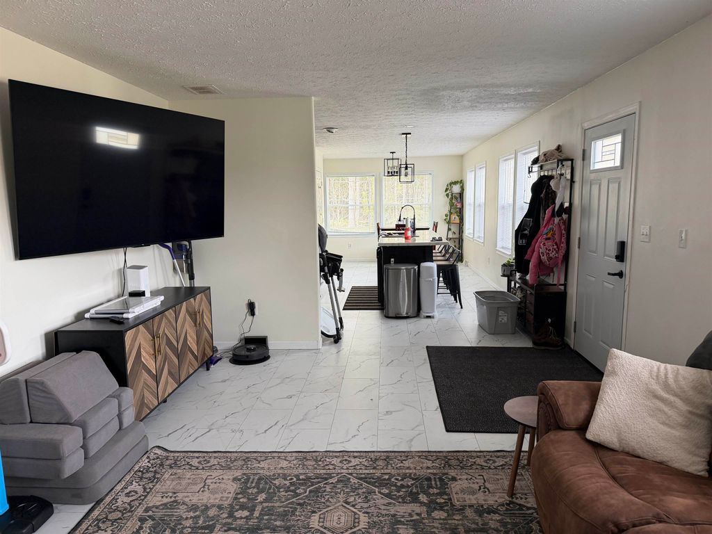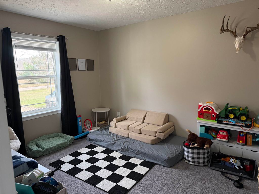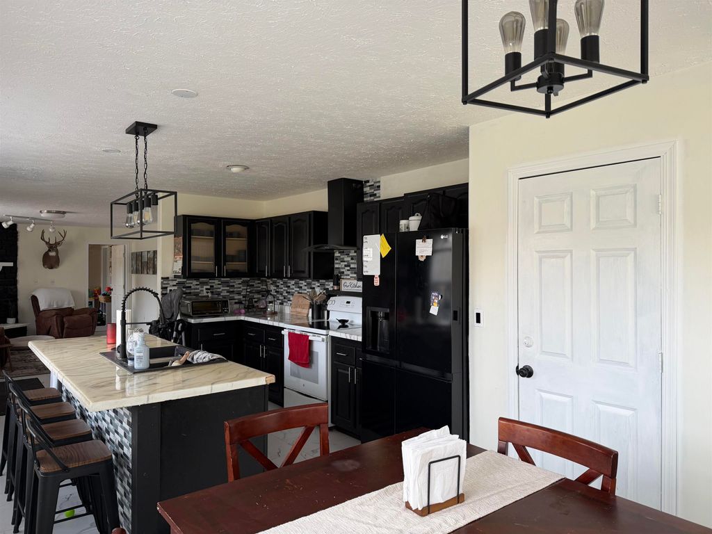 Nice 3 bedroom, 3 bath home in a quiet rural subdivision. Open concept living with a gas fireplace. Lots of natural light from all the large windows in living room, kitchen and throughout the dining room. There is an 870 square foot deck for all your entertaining needs. Large kitchen with island and plenty of seating. Large primary bedroom with walk in closet. Primary bath with separate tub. All bedrooms have walk in closets. Basement has walk out to the back yard. Pole building has plenty of room for parking and storage. Home has new furnace in 2025 with added ductwork in basement.