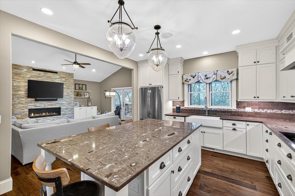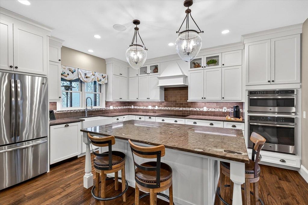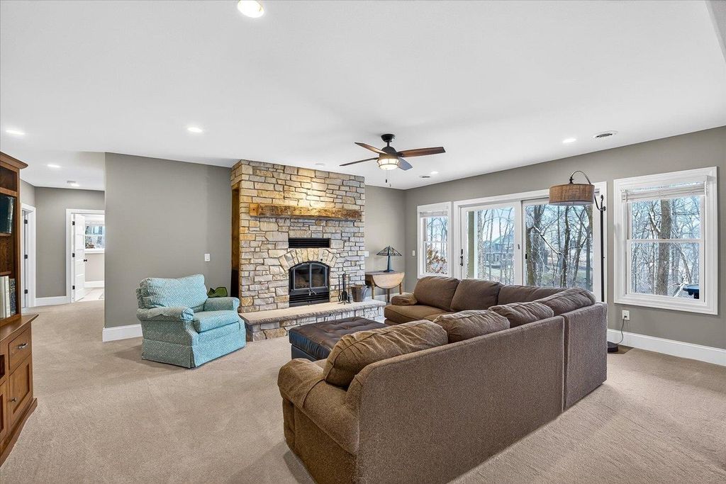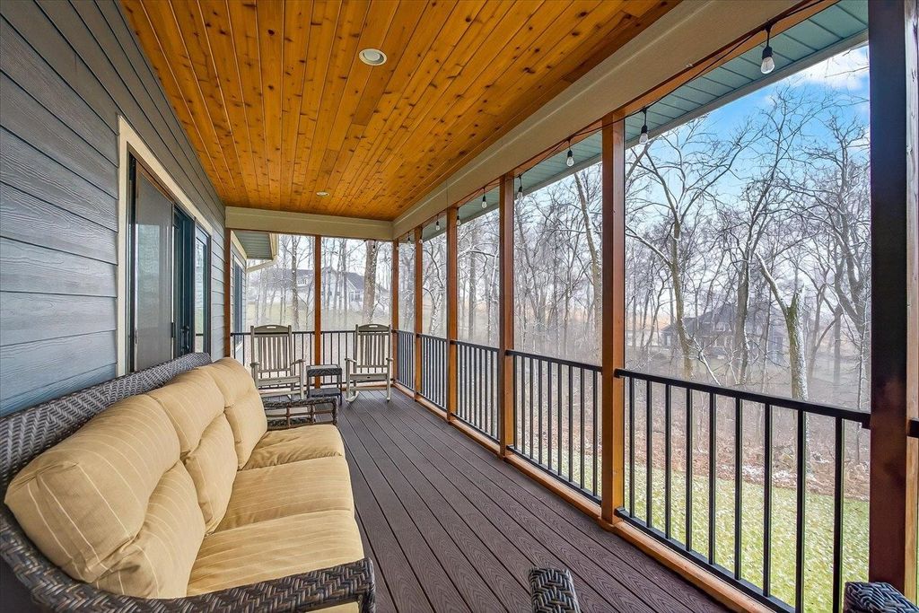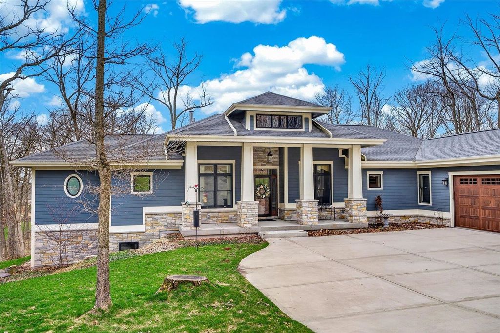 Private, spacious 5 bedroom retreat in The Woods at Watch Hill. This distinctive custom build is as beautiful as it is functional. Main level features a pleasant, sunny primary, vaulted great room, impressive chef's kitchen, intimate dining room, home office, additional bedroom, full bath, and roomy laundry and mudrooms. A generous screen porch runs along the rear of the house facing the lightly wooded 2+ acre lot. Lower level is a home in its own. Two to three bedrooms - plenty of room for an office or exercise room, and a large family room with fireplace and walkout to backyard. Great unfinished space for storage. Private cul du sac, Verona schools, 25 min to hospitals, campus.