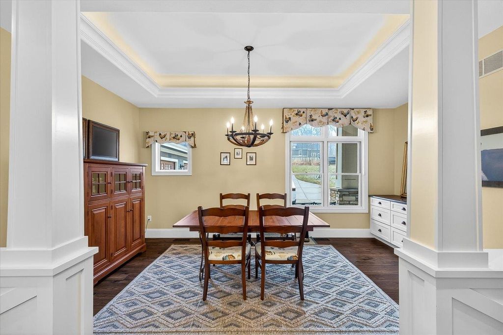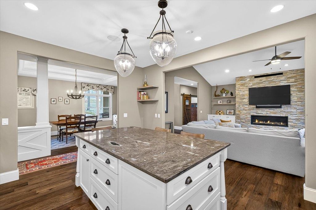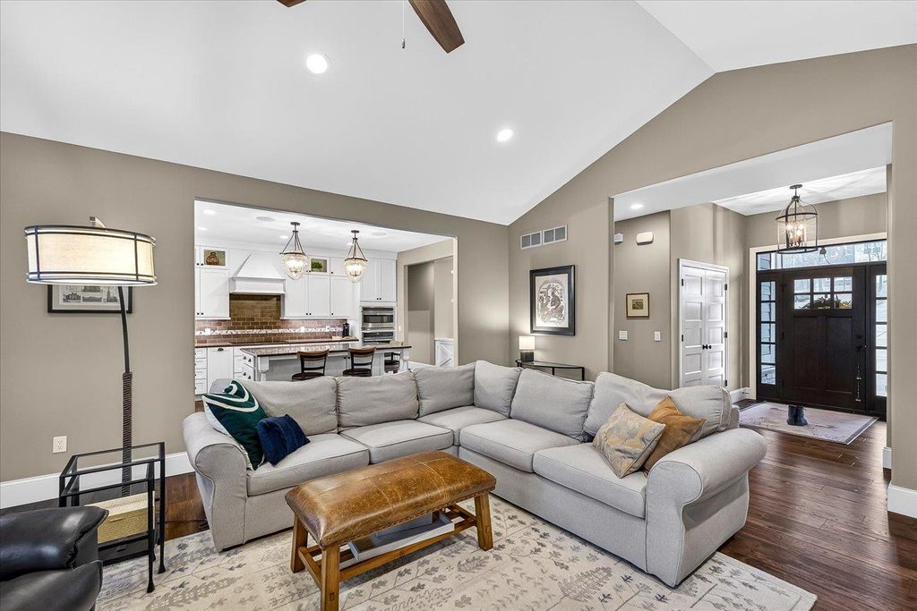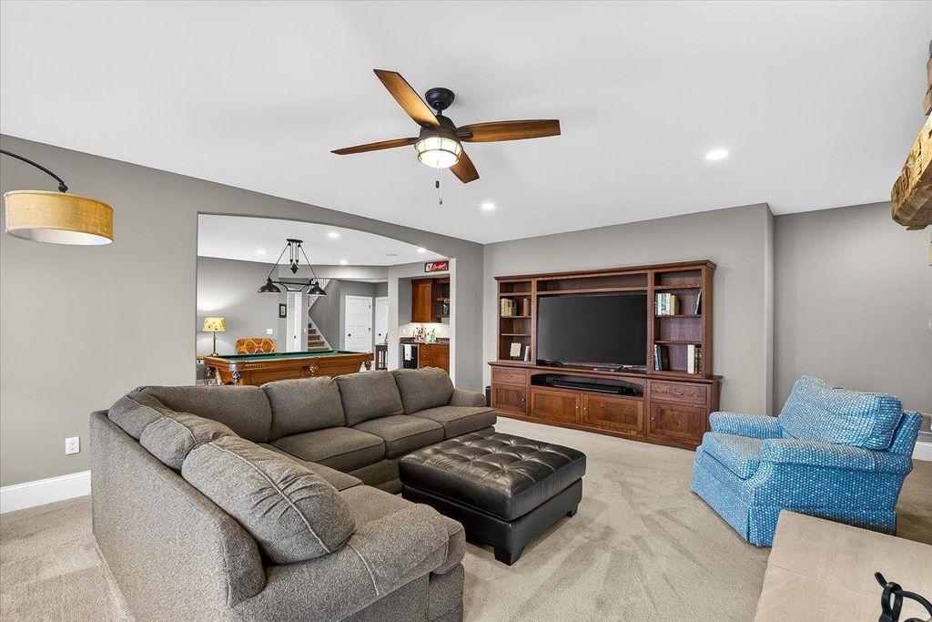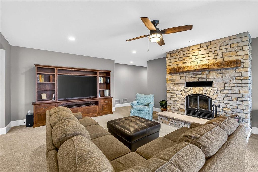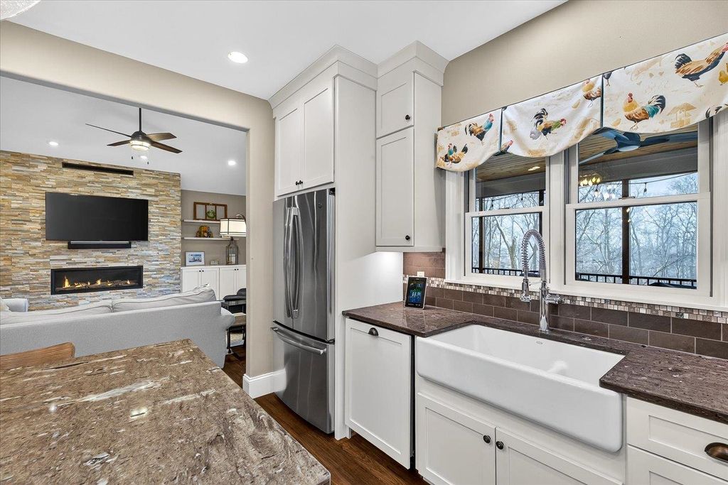 Private, spacious 5 bedroom retreat in The Woods at Watch Hill. This distinctive custom build is as beautiful as it is functional. Main level features a pleasant, sunny primary, vaulted great room, impressive chef's kitchen, intimate dining room, home office, additional bedroom, full bath, and roomy laundry and mudrooms. A generous screen porch runs along the rear of the house facing the lightly wooded 2+ acre lot. Lower level is a home in its own. Two to three bedrooms - plenty of room for an office or exercise room, and a large family room with fireplace and walkout to backyard. Great unfinished space for storage. Private cul du sac, Verona schools, 25 min to hospitals, campus.