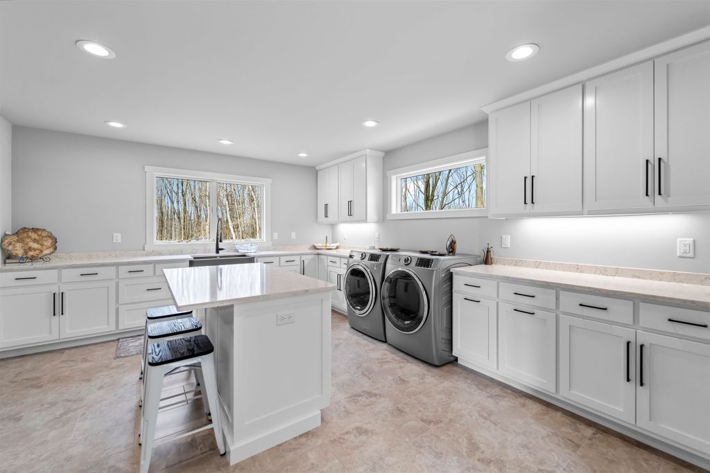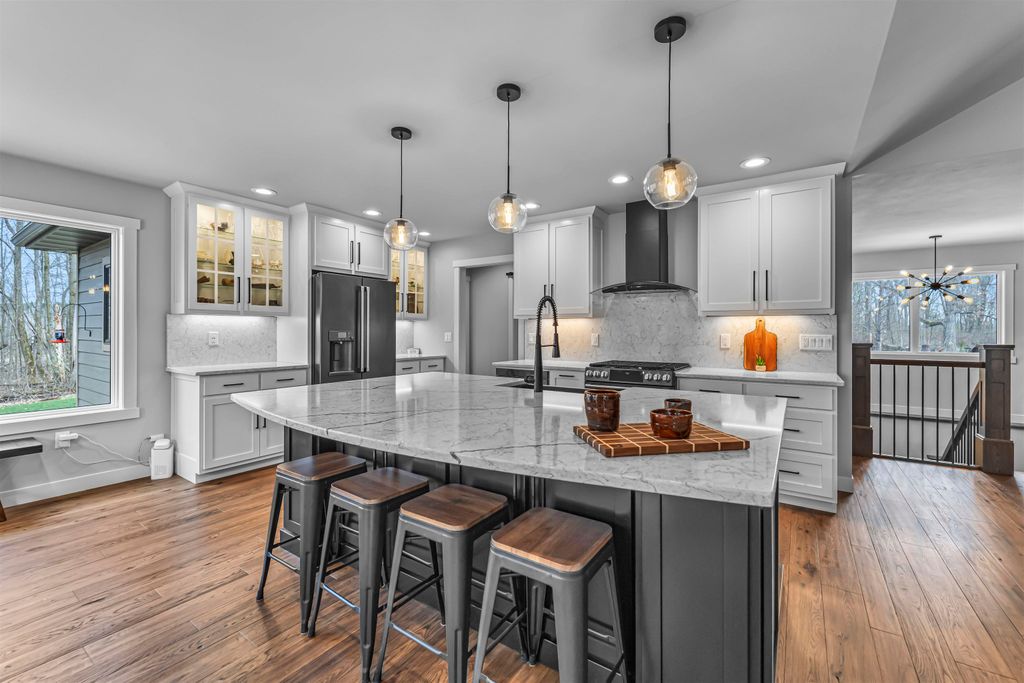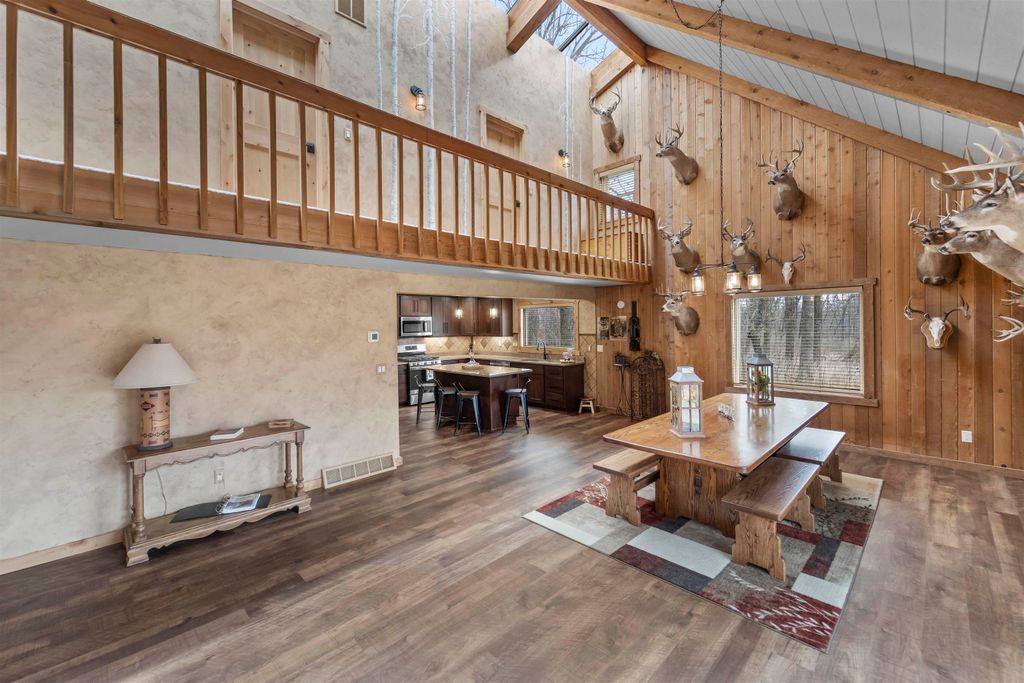 Welcome to your own private paradise w/ this stunning 2022-built ranch, nestled on 120 acres of pristine wooded land! Perfect for nature lovers & sportsmen alike, this expansive property boasts a serene pond w/ trout, abundant wildlife, numerous outbuildings & a private hunting lodge. Discover sophistication blended w/ modern comfort in all of the 5,000+ sq ft of finished, bright living space; including Hickory hardwood floors, GE Cafe Series SS apps, countless quartz counters & a massive ML laundry/mudroom. An impressive wood burning fireplace w/ floor-to-ceiling stone & hearth serves as an elegant centerpiece. Completely remodeled original cabin offers short term rental possibility! See Associated Docs for more specific details & data.
