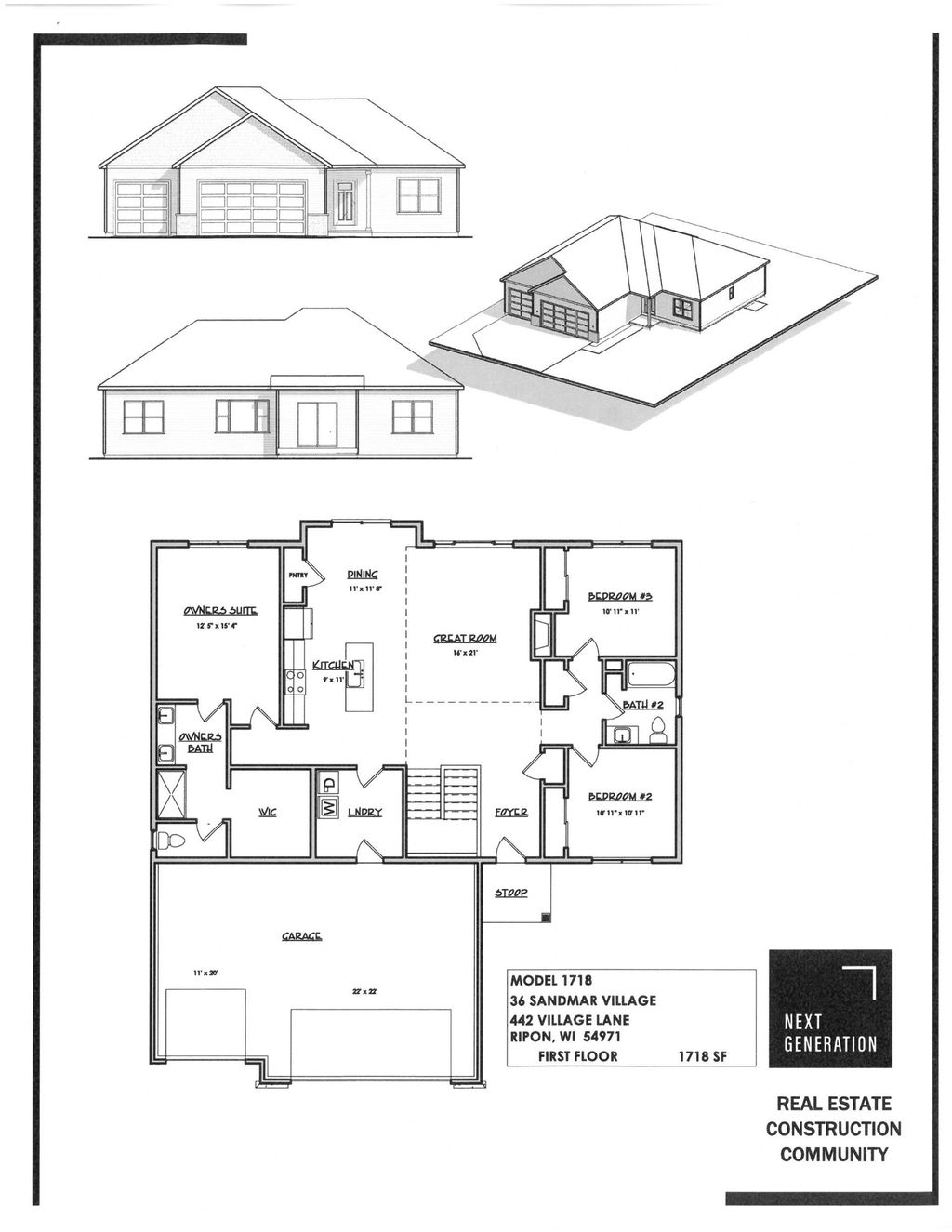 Estimated completion July 2026. Striking 3-bedroom, 2-bath split-bedroom ranch by Next Generation Construction in Sandmar Village. Thoughtfully laid out with an open main living area, vaulted Great Room, and gas fireplace that flows into the kitchen and dining space. Kitchen features a center island with quartz countertops, corner pantry, stainless appliances, and soft-close cabinetry with a defined dining area nearby. Main level laundry and mudroom are conveniently located off the oversized 3-car attached garage. Primary suite is set apart with a private bath including double vanity, walk-in shower, and walk-in closet. Lower level is studded, insulated, and roughed for a future bath, with an egress window already in place for a potential 4th bedroom or expanded living space. Well-planned design, great location. Lot #36 **PHOTOS OF SIMILAR MODEL-ASK AGENT FOR DETAILS**