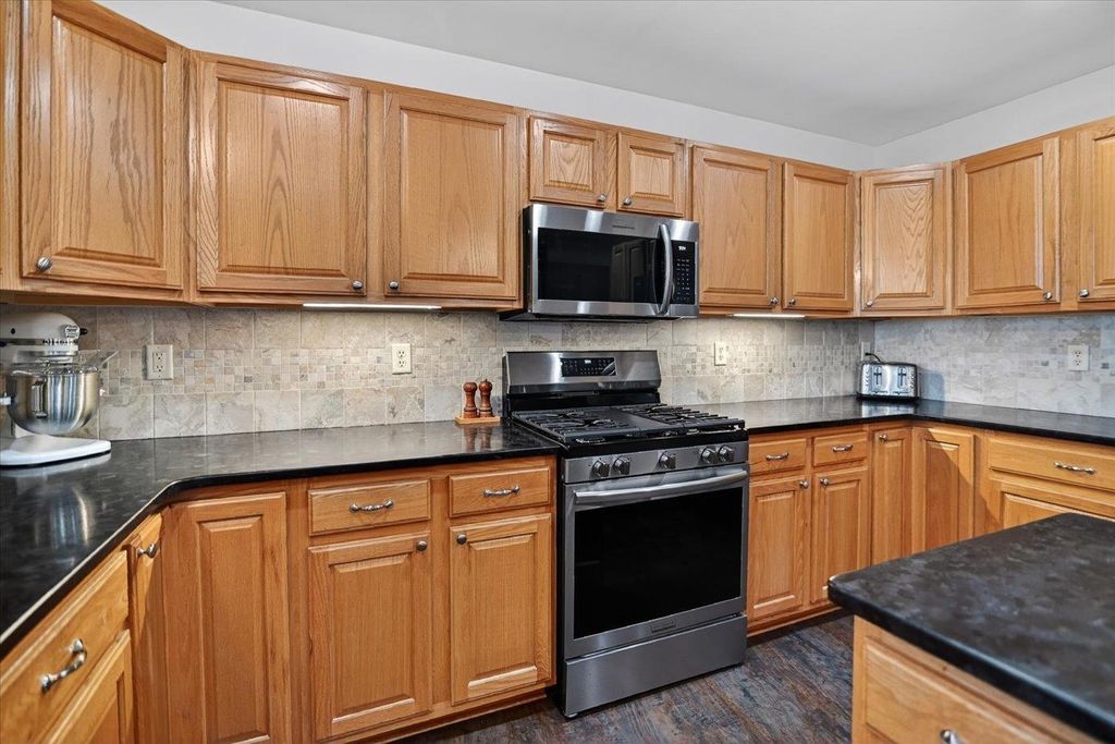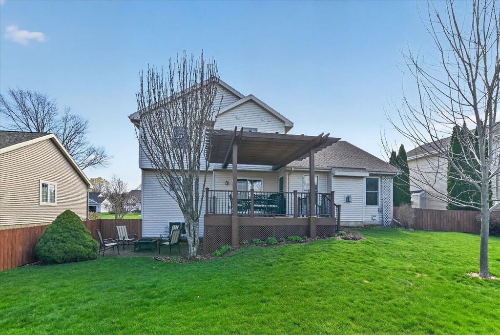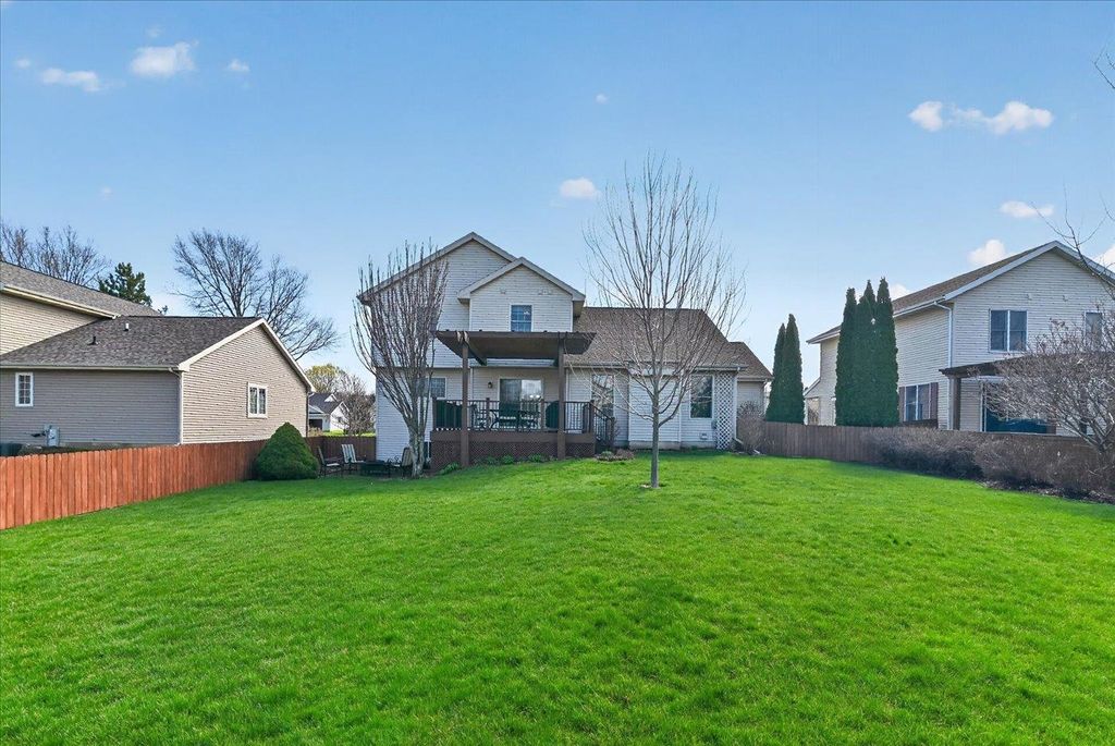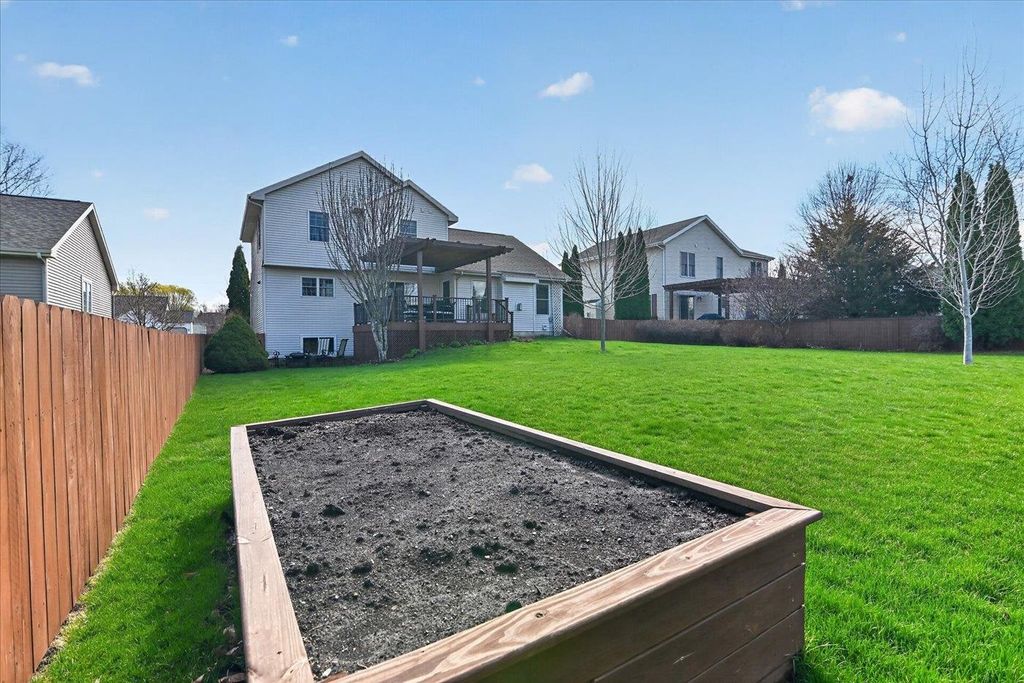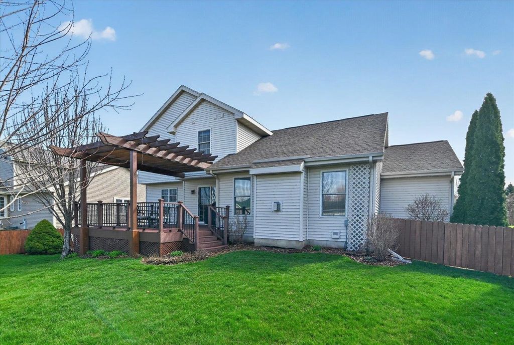 What a home! You will love this 2 story Colonial containing a great floor plan with many features & updates. Vaulted ceiling in the family room with hardwood flooring & gas fireplace, open to the dining & spacious kitchen with center island, updated granite countertops, backsplash, flooring, lighting & appliances. Front flex room with hardwood flooring. Upper level includes primary suite with vaulted ceilings, full bath & double closets along with 2nd & 3rd bedrooms, main bath & laundry. Exposed lower level with high ceilings, 3 windows, finished with a game/rec room, full bath & cedar closet. Large composite deck with pergola for shaded days & enjoying evening sunsets. Step down to the fenced rear yard with raised garden beds and patio area perfect for a campfire. 3 car garage is a BONUS