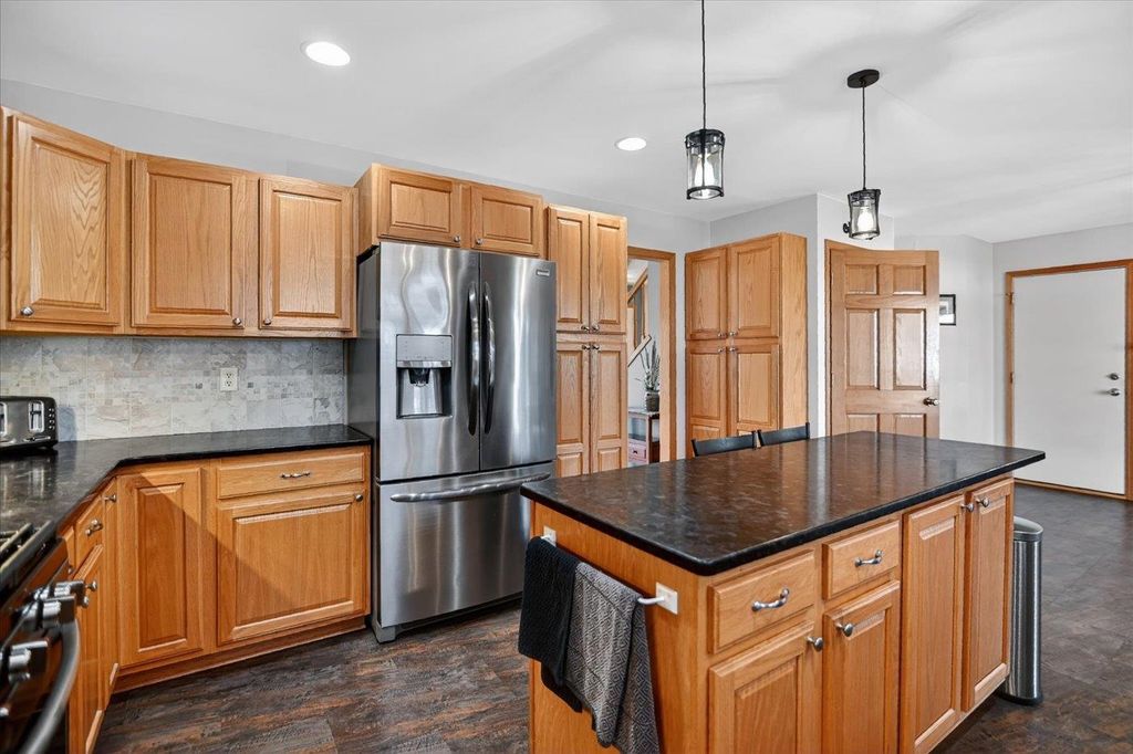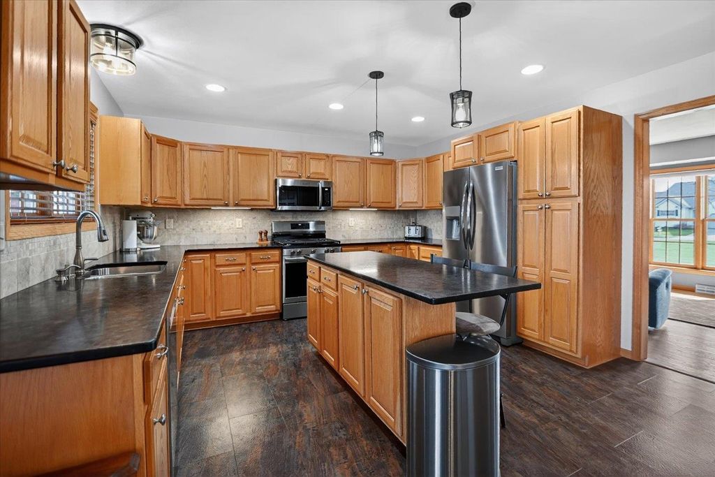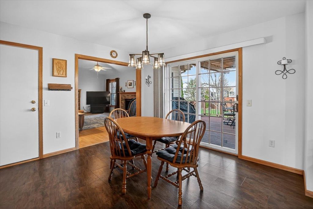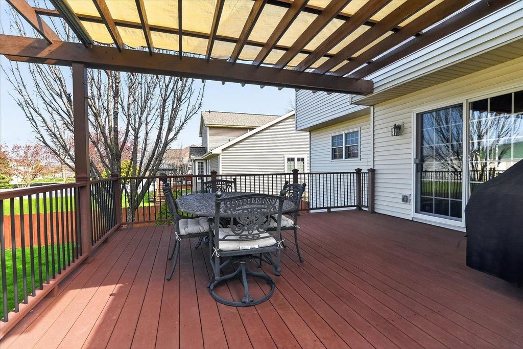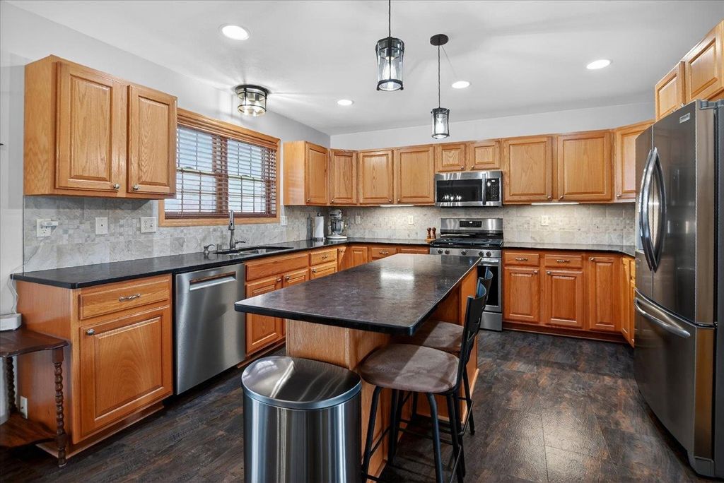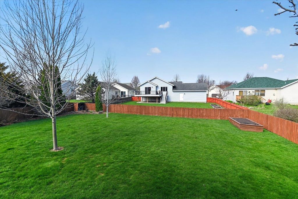 What a home! You will love this 2 story Colonial containing a great floor plan with many features & updates. Vaulted ceiling in the family room with hardwood flooring & gas fireplace, open to the dining & spacious kitchen with center island, updated granite countertops, backsplash, flooring, lighting & appliances. Front flex room with hardwood flooring. Upper level includes primary suite with vaulted ceilings, full bath & double closets along with 2nd & 3rd bedrooms, main bath & laundry. Exposed lower level with high ceilings, 3 windows, finished with a game/rec room, full bath & cedar closet. Large composite deck with pergola for shaded days & enjoying evening sunsets. Step down to the fenced rear yard with raised garden beds and patio area perfect for a campfire. 3 car garage is a BONUS