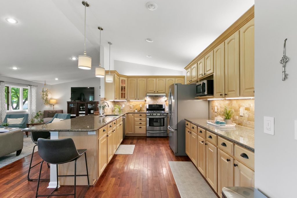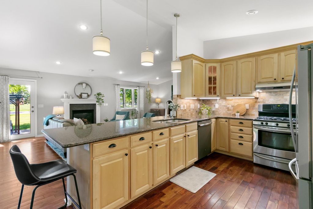 Crazy Low Taxes, only $2650! Beautifully updated and maintained stand alone condo with 4-bedrooms, 3.5-baths w/ high-end finishes throughout. The spacious living room features vaulted ceilings & gas fireplace, open to the gourmet kitchen. Golden Acacia hardwood floors, solid surface countertops, tile backsplash, breakfast bar and a huge walk-in pantry is great for entertaining. Enjoy a custom-tiled shower, tile floors and a stunning walk-in closet in the master suite. The lower level offers a massive family room with plenty of space to spread out. Outside, relax on the large concrete patio w/ pergola, fire pit & spacious lawn. Rest easy with a metal roof. The home includes a large 2 car heated garage. Dues cover snow removal, Water, Trash/recycle pick up. Slip your boat for a fee on Swan Lake. Listing Agent is the Seller.