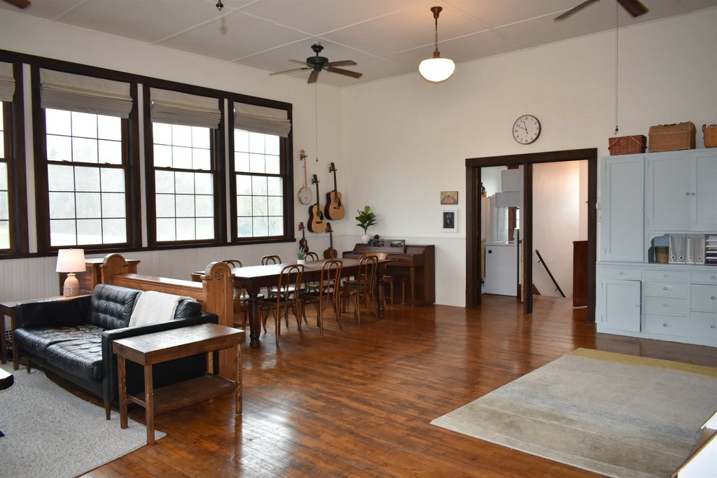 Heres a chance to own a piece of Wisconsin History! This former School House/Town of Lyndon Town Hall is now a spacious and bright home. This unique property boasts extremely tall ceilings w/amazing views. Abundant light floods the livingroom from the wrap around 7ft windows.This large main room also includes two built-in bookshelves with sliding doors and even the original working water bubbler! The schoolhouse charm has been retained with the full wall slate chalkboard and schoolhouse light fixtures. Two bedrooms added to the lower level along with a newly renovated bathroom. A 1/4 bath was added to the main level and there is also another toilet in the lower laundry area. Check out the insulated walk up attic. It is just waiting for your ideas and could be an amazing primary suite, art studio or whatever you can dream up! This 1 acre lot has plenty of green space and substantial parking, along with a 10x20 shed for all your outdoor storage needs.