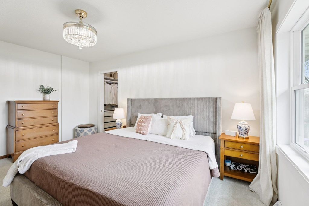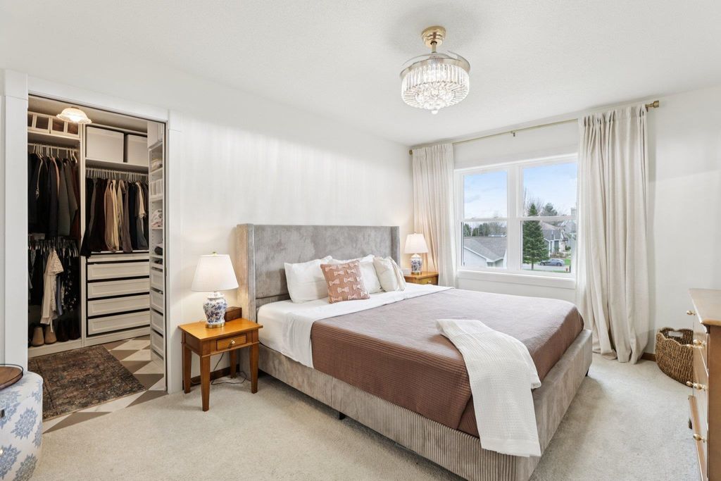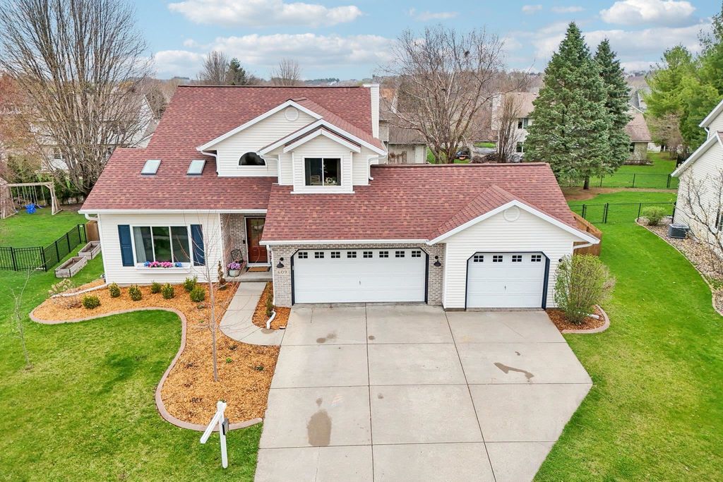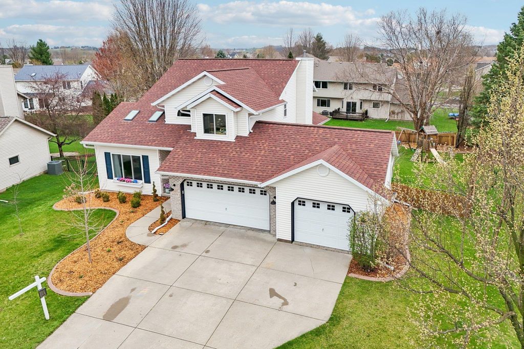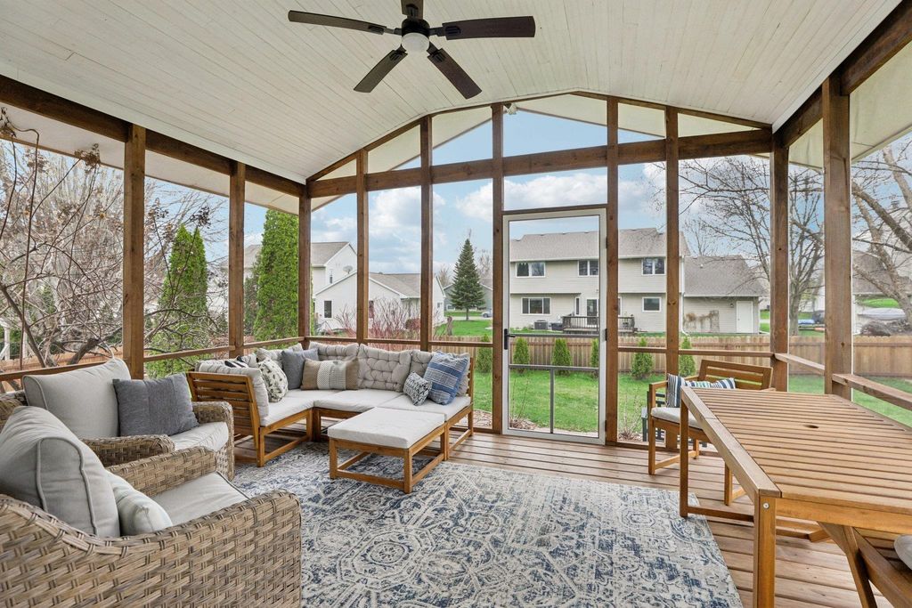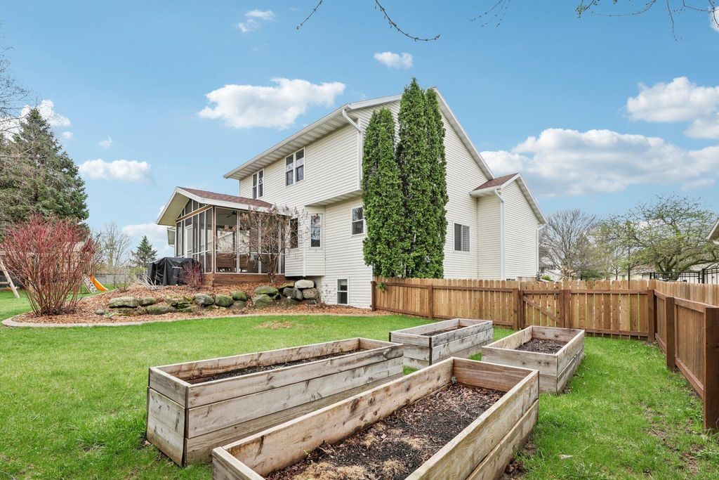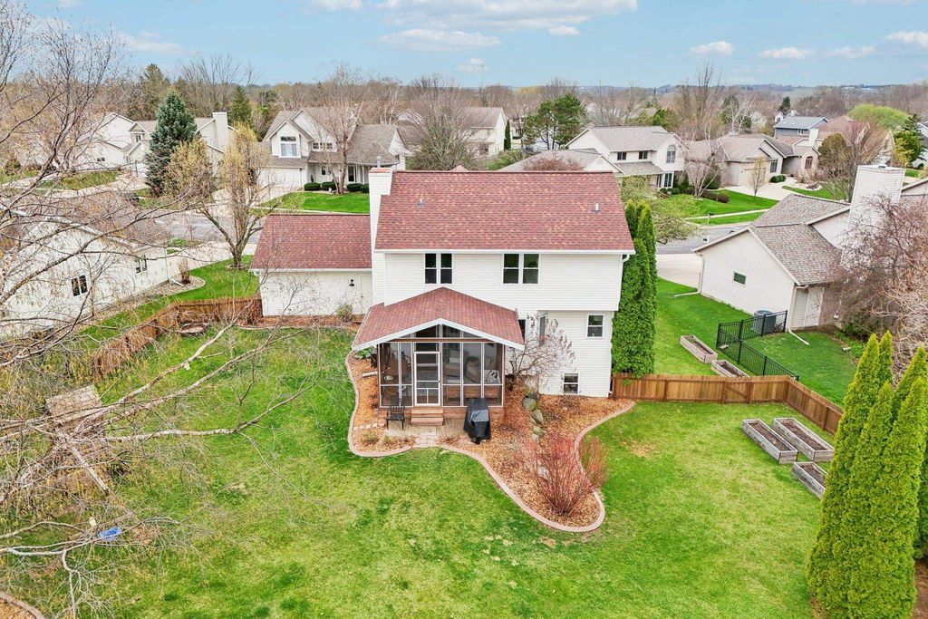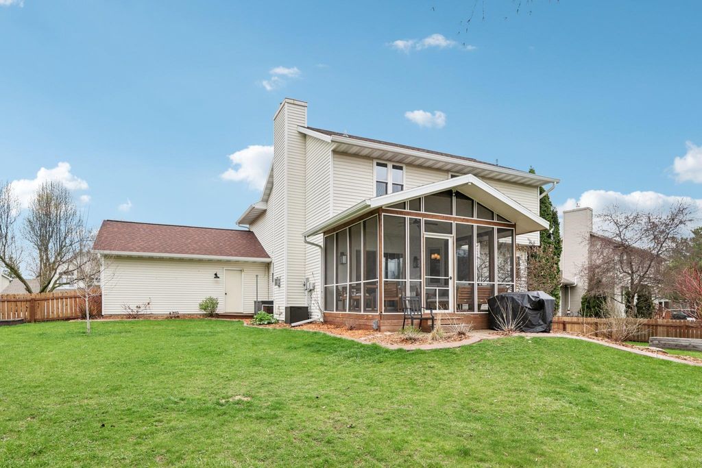 Open House Friday 4/17 3-5pm. Beautifully updated two-story home in the desirable Six Mile Creek neighborhood. Offering 2,600+ sqft, this well-maintained updated property features 4 bedrooms, 3.5 bathrooms, and 1 block from Prairie Elementary. Fresh paint throughout, fully remodeled bathrooms and laundry room w/subway and herringbone tile, updated appliances, quartz countertops, and new fixtures & hardware. Completely remodeled primary suite features a stunning bathroom with a walk-through closet. Hardwood flooring spans the main level, adding warmth and style. Spacious lower level with rec room, bedroom and updated bathrm. Recent exterior updates include a brand new roof and skylight, plus new windows, shutters & gutters (2025). Stunning 3 season room addition (2025), fully fenced (2022), landscaped yard is perfect for relaxing or entertaining. Additional updates include Furnace (2023) & Water Heater (2024). Move-in ready with quality updates throughout, don't miss this one!